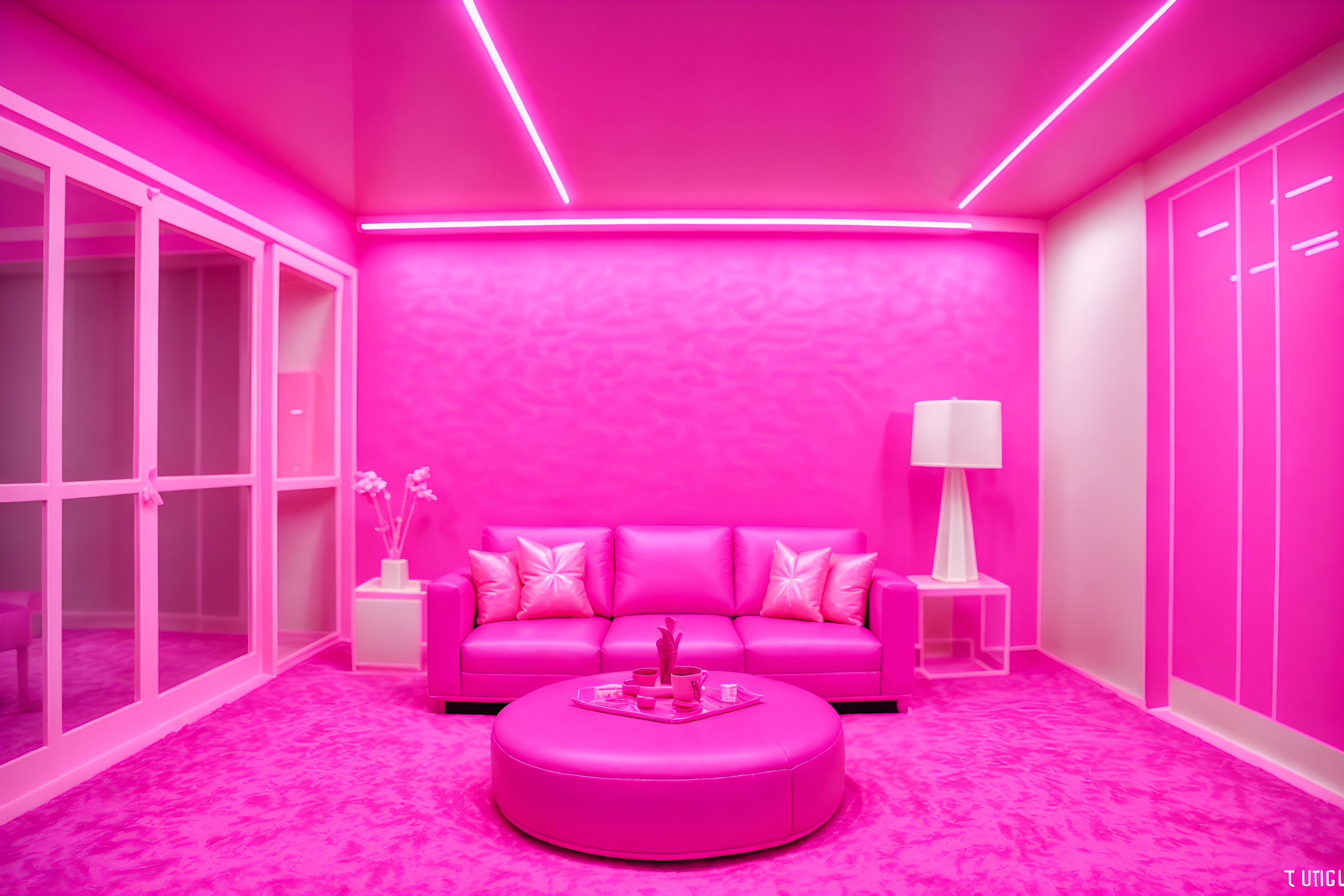 photo from pinterest of hot pink-style interior designed (exhibition space interior) . with hot pink barbie walls and barbie glitter and sparkle and hot pink barbie colors and barbie plastic interior and barbie sofa and barbie closet and barbie style interior and barbie bold rosy hues like fuchsia and magenta. . cinematic photo, highly detailed, cinematic lighting, ultra-detailed, ultrarealistic, photorealism, 8k. trending on pinterest. hot pink interior design style. masterpiece, cinematic light, ultrarealistic+, photorealistic+, 8k, raw photo, realistic, sharp focus on eyes, (symmetrical eyes), (intact eyes), hyperrealistic, highest quality, best quality, , highly detailed, masterpiece, best quality, extremely detailed 8k wallpaper, masterpiece, best quality, ultra-detailed, best shadow, detailed background, detailed face, detailed eyes, high contrast, best illumination, detailed face, dulux, caustic, dynamic angle, detailed glow. dramatic lighting. highly detailed, insanely detailed hair, symmetrical, intricate details, professionally retouched, 8k high definition. strong bokeh. award winning photo.
