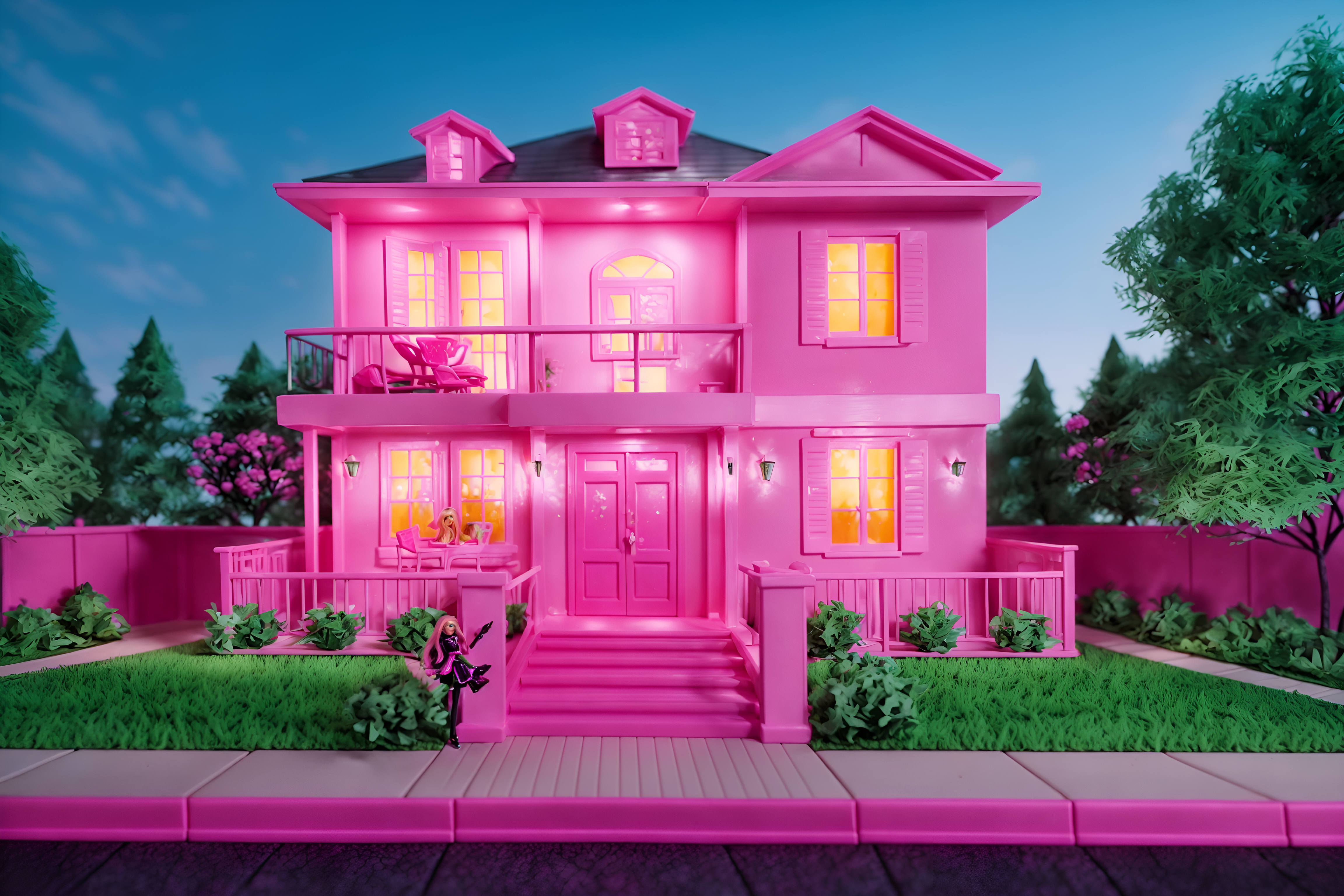 photo from pinterest of hot pink-style exterior designed (house exterior exterior) . with barbie closet and barbie glitter and sparkle and barbie plastic exterior and barbie bold rosy hues like fuchsia and magenta and hot pink barbie colors and barbie sofa and barbie chairs and hot pink barbie walls. . cinematic photo, highly detailed, cinematic lighting, ultra-detailed, ultrarealistic, photorealism, 8k. trending on pinterest. hot pink exterior design style. masterpiece, cinematic light, ultrarealistic+, photorealistic+, 8k, raw photo, realistic, sharp focus on eyes, (symmetrical eyes), (intact eyes), hyperrealistic, highest quality, best quality, , highly detailed, masterpiece, best quality, extremely detailed 8k wallpaper, masterpiece, best quality, ultra-detailed, best shadow, detailed background, detailed face, detailed eyes, high contrast, best illumination, detailed face, dulux, caustic, dynamic angle, detailed glow. dramatic lighting. highly detailed, insanely detailed hair, symmetrical, intricate details, professionally retouched, 8k high definition. strong bokeh. award winning photo.