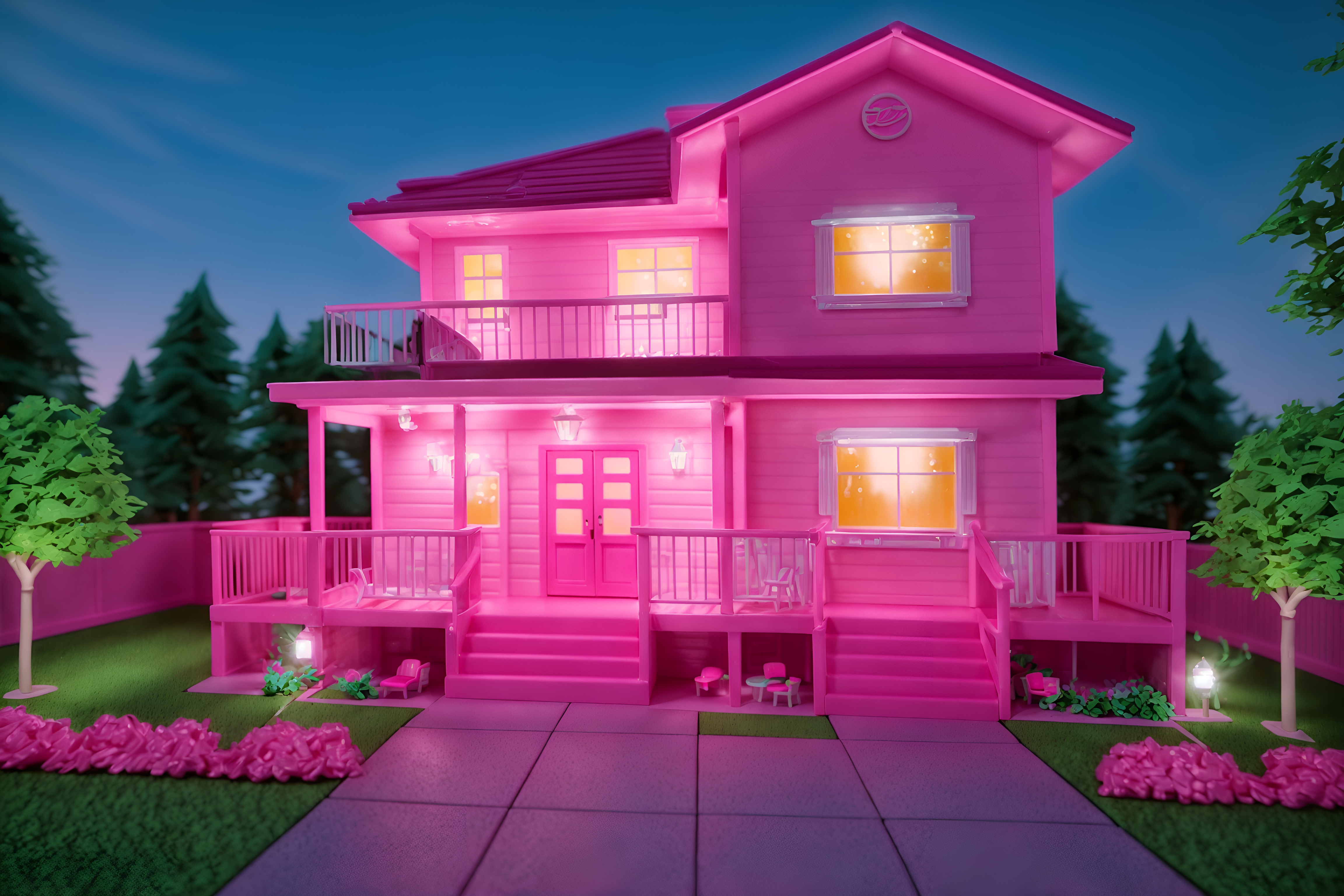 photo from pinterest of hot pink-style exterior designed (house exterior exterior) . with barbie closet and barbie glitter and sparkle and barbie plastic exterior and barbie bold rosy hues like fuchsia and magenta and hot pink barbie colors and barbie sofa and barbie chairs and hot pink barbie walls. . cinematic photo, highly detailed, cinematic lighting, ultra-detailed, ultrarealistic, photorealism, 8k. trending on pinterest. hot pink exterior design style. masterpiece, cinematic light, ultrarealistic+, photorealistic+, 8k, raw photo, realistic, sharp focus on eyes, (symmetrical eyes), (intact eyes), hyperrealistic, highest quality, best quality, , highly detailed, masterpiece, best quality, extremely detailed 8k wallpaper, masterpiece, best quality, ultra-detailed, best shadow, detailed background, detailed face, detailed eyes, high contrast, best illumination, detailed face, dulux, caustic, dynamic angle, detailed glow. dramatic lighting. highly detailed, insanely detailed hair, symmetrical, intricate details, professionally retouched, 8k high definition. strong bokeh. award winning photo.