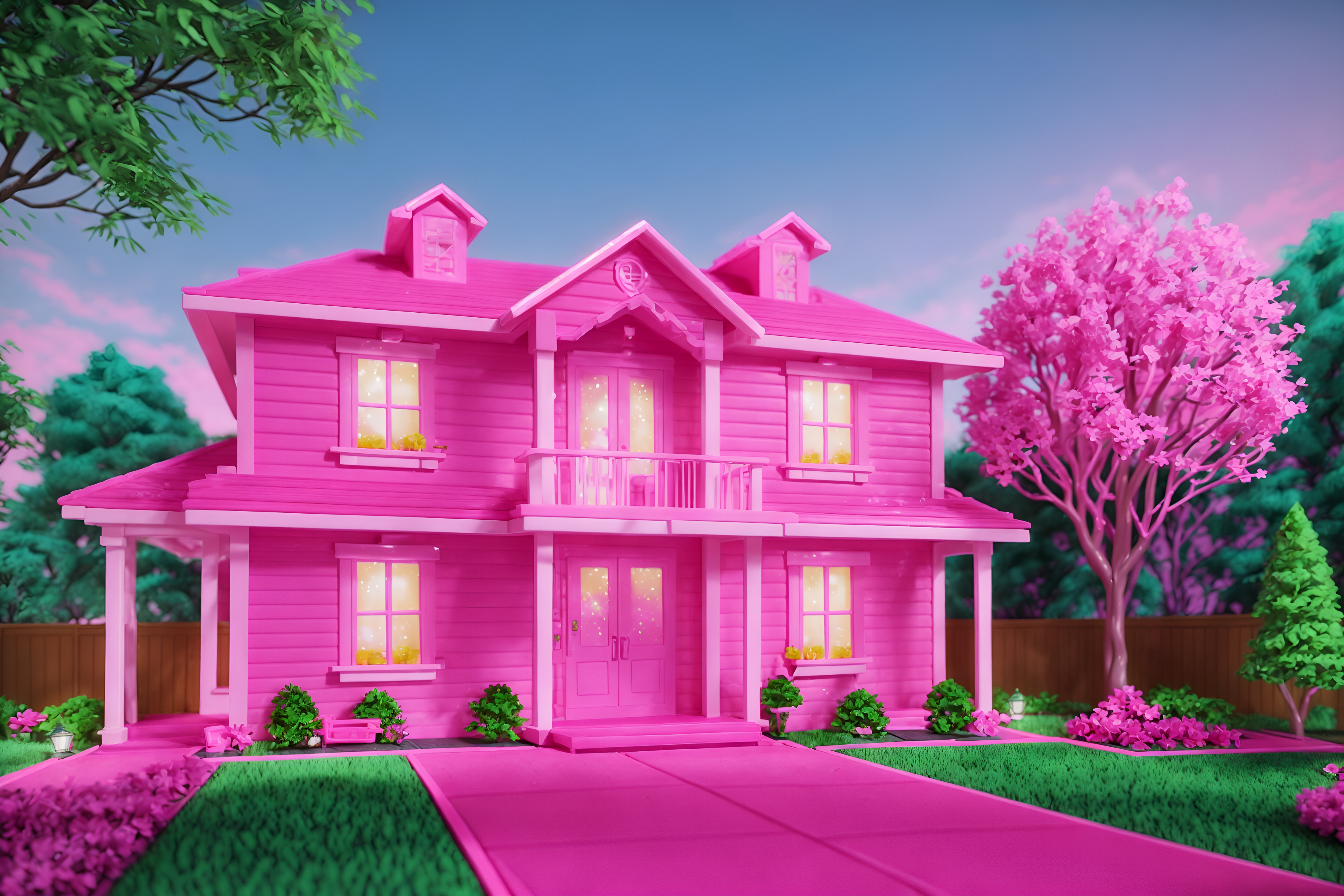 photo from pinterest of hot pink-style exterior designed (house exterior exterior) . with barbie closet and barbie glitter and sparkle and barbie plastic exterior and barbie bold rosy hues like fuchsia and magenta and hot pink barbie colors and barbie sofa and barbie chairs and hot pink barbie walls. . cinematic photo, highly detailed, cinematic lighting, ultra-detailed, ultrarealistic, photorealism, 8k. trending on pinterest. hot pink exterior design style. masterpiece, cinematic light, ultrarealistic+, photorealistic+, 8k, raw photo, realistic, sharp focus on eyes, (symmetrical eyes), (intact eyes), hyperrealistic, highest quality, best quality, , highly detailed, masterpiece, best quality, extremely detailed 8k wallpaper, masterpiece, best quality, ultra-detailed, best shadow, detailed background, detailed face, detailed eyes, high contrast, best illumination, detailed face, dulux, caustic, dynamic angle, detailed glow. dramatic lighting. highly detailed, insanely detailed hair, symmetrical, intricate details, professionally retouched, 8k high definition. strong bokeh. award winning photo.