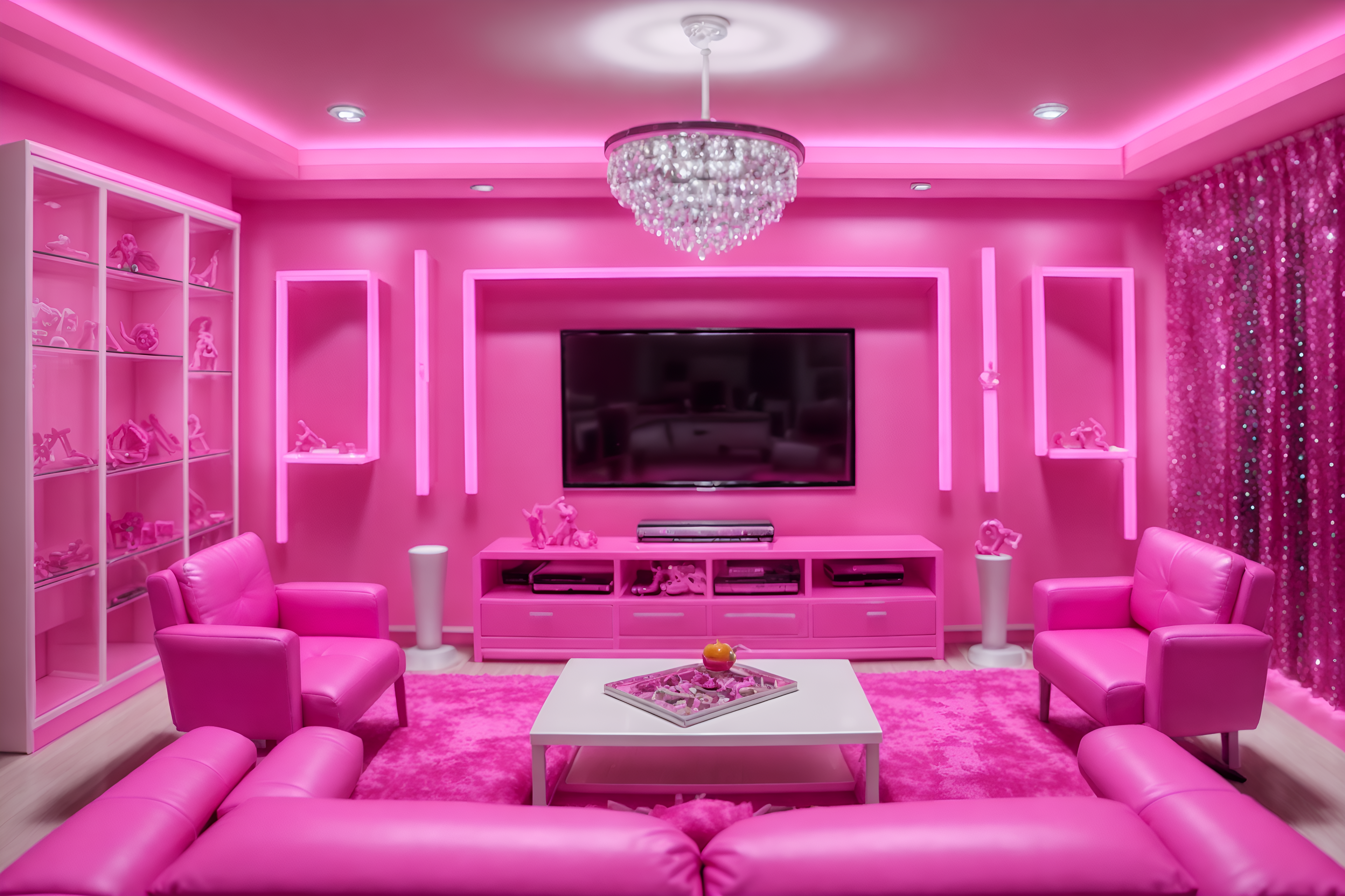 photo from pinterest of hot pink-style interior designed (gaming room interior) . with barbie glitter and sparkle and barbie bold rosy hues like fuchsia and magenta and hot pink barbie colors and barbie sofa and barbie style interior and barbie closet and barbie chairs and barbie plastic interior. . cinematic photo, highly detailed, cinematic lighting, ultra-detailed, ultrarealistic, photorealism, 8k. trending on pinterest. hot pink interior design style. masterpiece, cinematic light, ultrarealistic+, photorealistic+, 8k, raw photo, realistic, sharp focus on eyes, (symmetrical eyes), (intact eyes), hyperrealistic, highest quality, best quality, , highly detailed, masterpiece, best quality, extremely detailed 8k wallpaper, masterpiece, best quality, ultra-detailed, best shadow, detailed background, detailed face, detailed eyes, high contrast, best illumination, detailed face, dulux, caustic, dynamic angle, detailed glow. dramatic lighting. highly detailed, insanely detailed hair, symmetrical, intricate details, professionally retouched, 8k high definition. strong bokeh. award winning photo.