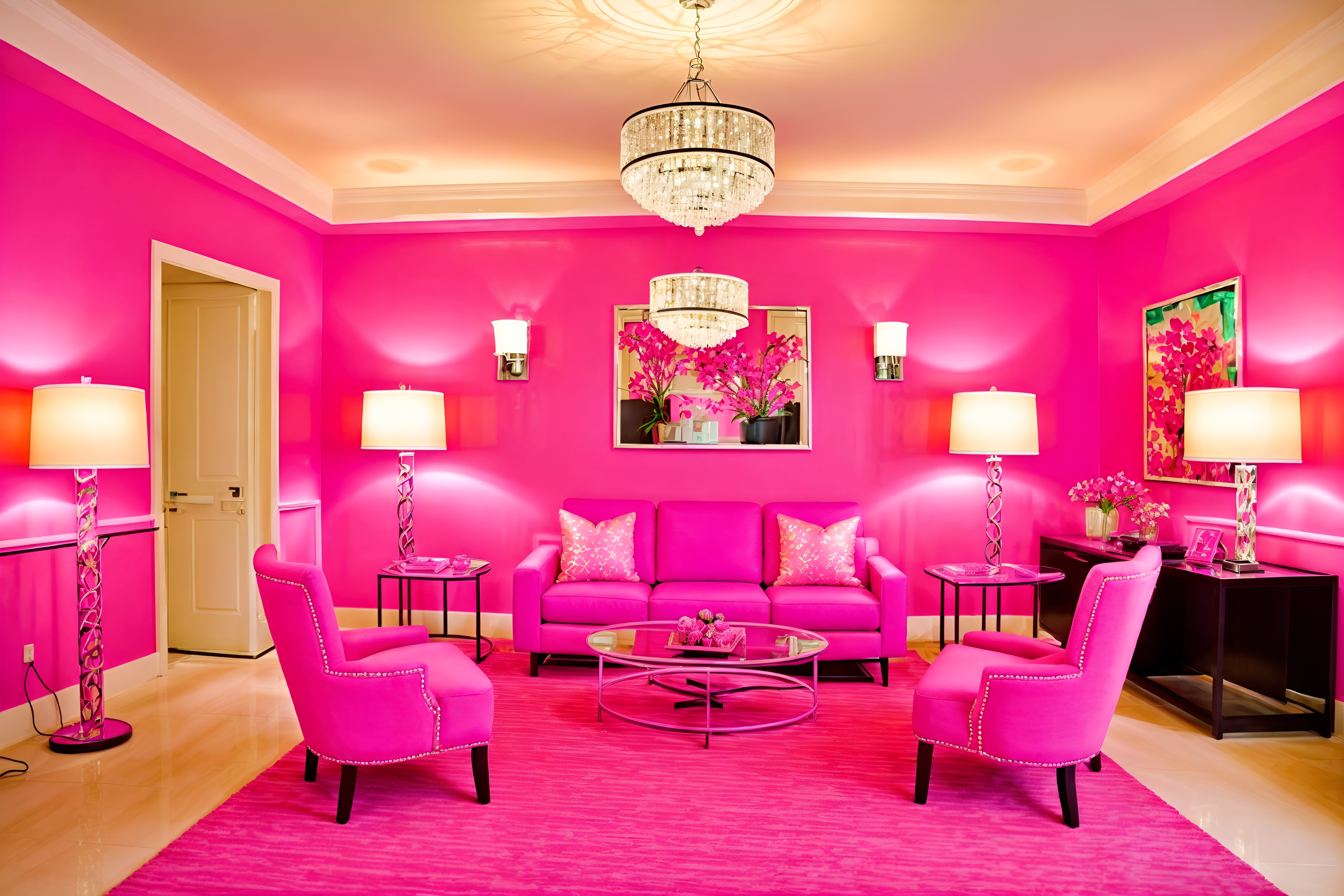 photo from pinterest of hot pink-style interior designed (hotel lobby interior) with hanging lamps and furniture and coffee tables and lounge chairs and rug and check in desk and sofas and plant. . with barbie chairs and barbie bold rosy hues like fuchsia and magenta and barbie glitter and sparkle and hot pink barbie walls and barbie plastic interior and barbie sofa and hot pink barbie colors and barbie style interior. . cinematic photo, highly detailed, cinematic lighting, ultra-detailed, ultrarealistic, photorealism, 8k. trending on pinterest. hot pink interior design style. masterpiece, cinematic light, ultrarealistic+, photorealistic+, 8k, raw photo, realistic, sharp focus on eyes, (symmetrical eyes), (intact eyes), hyperrealistic, highest quality, best quality, , highly detailed, masterpiece, best quality, extremely detailed 8k wallpaper, masterpiece, best quality, ultra-detailed, best shadow, detailed background, detailed face, detailed eyes, high contrast, best illumination, detailed face, dulux, caustic, dynamic angle, detailed glow. dramatic lighting. highly detailed, insanely detailed hair, symmetrical, intricate details, professionally retouched, 8k high definition. strong bokeh. award winning photo.