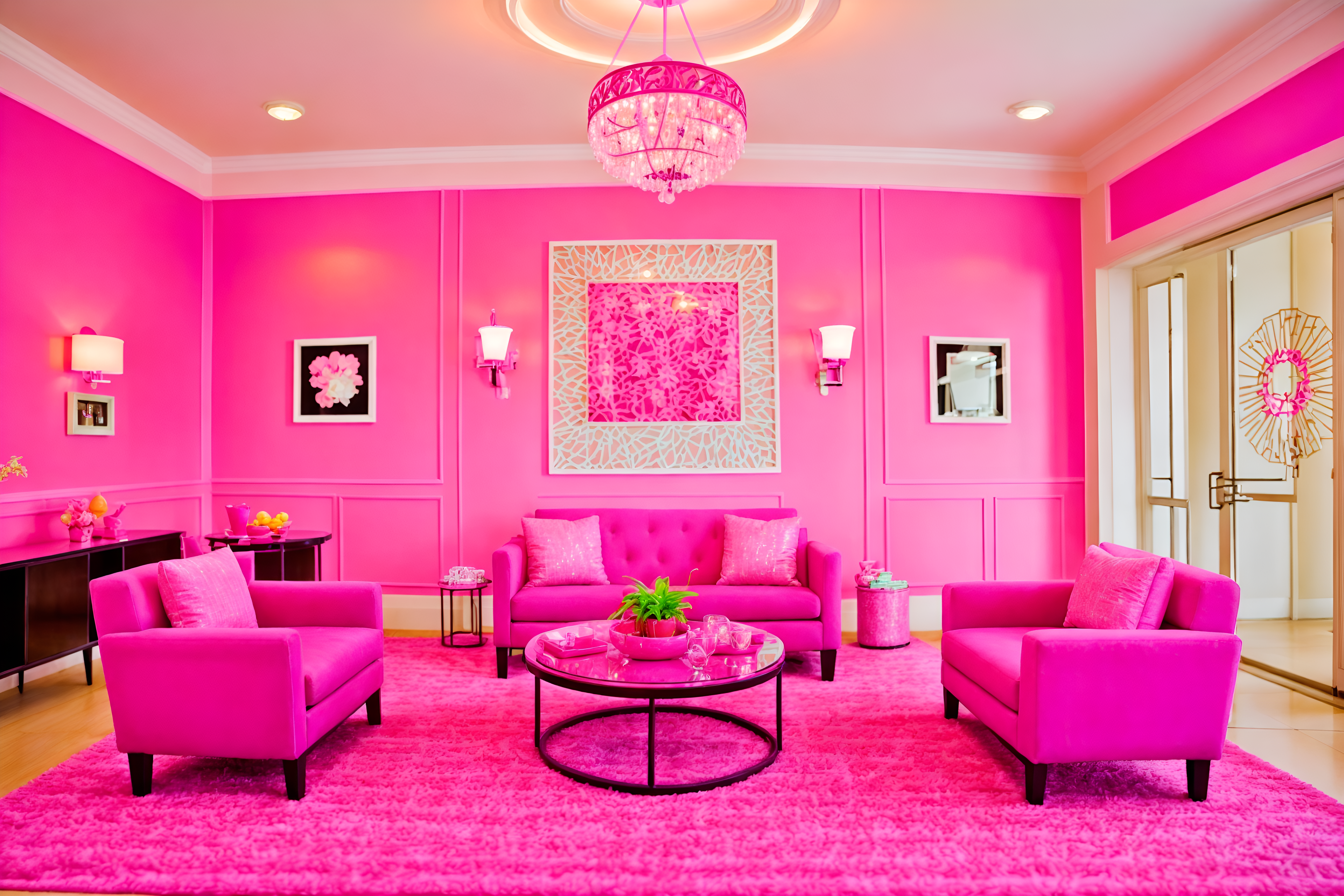 photo from pinterest of hot pink-style interior designed (hotel lobby interior) with hanging lamps and furniture and coffee tables and lounge chairs and rug and check in desk and sofas and plant. . with barbie chairs and barbie bold rosy hues like fuchsia and magenta and barbie glitter and sparkle and hot pink barbie walls and barbie plastic interior and barbie sofa and hot pink barbie colors and barbie style interior. . cinematic photo, highly detailed, cinematic lighting, ultra-detailed, ultrarealistic, photorealism, 8k. trending on pinterest. hot pink interior design style. masterpiece, cinematic light, ultrarealistic+, photorealistic+, 8k, raw photo, realistic, sharp focus on eyes, (symmetrical eyes), (intact eyes), hyperrealistic, highest quality, best quality, , highly detailed, masterpiece, best quality, extremely detailed 8k wallpaper, masterpiece, best quality, ultra-detailed, best shadow, detailed background, detailed face, detailed eyes, high contrast, best illumination, detailed face, dulux, caustic, dynamic angle, detailed glow. dramatic lighting. highly detailed, insanely detailed hair, symmetrical, intricate details, professionally retouched, 8k high definition. strong bokeh. award winning photo.