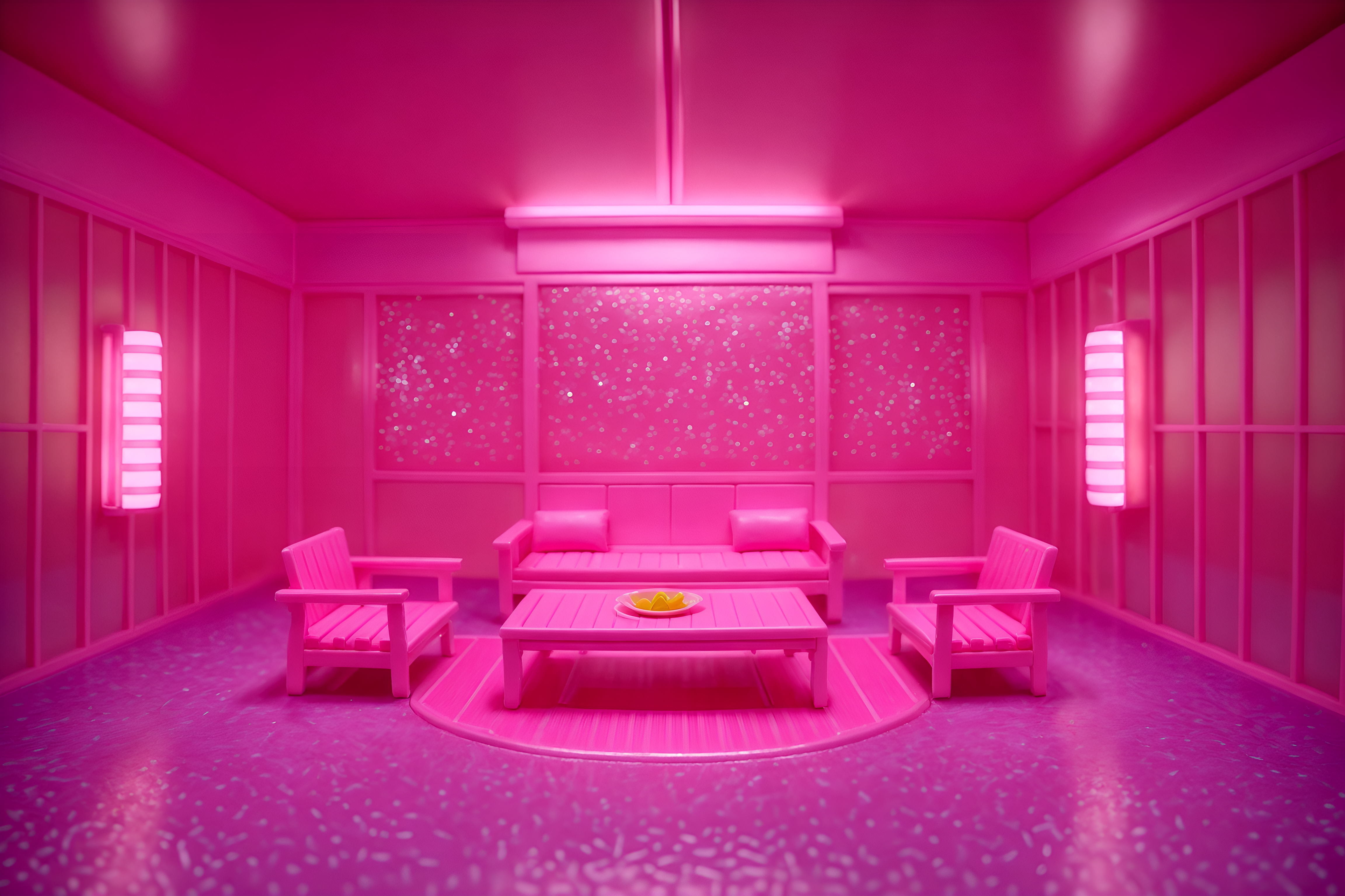 photo from pinterest of hot pink-style interior designed (onsen interior) . with barbie chairs and barbie closet and hot pink barbie colors and barbie sofa and barbie bold rosy hues like fuchsia and magenta and barbie glitter and sparkle and barbie plastic interior and hot pink barbie walls. . cinematic photo, highly detailed, cinematic lighting, ultra-detailed, ultrarealistic, photorealism, 8k. trending on pinterest. hot pink interior design style. masterpiece, cinematic light, ultrarealistic+, photorealistic+, 8k, raw photo, realistic, sharp focus on eyes, (symmetrical eyes), (intact eyes), hyperrealistic, highest quality, best quality, , highly detailed, masterpiece, best quality, extremely detailed 8k wallpaper, masterpiece, best quality, ultra-detailed, best shadow, detailed background, detailed face, detailed eyes, high contrast, best illumination, detailed face, dulux, caustic, dynamic angle, detailed glow. dramatic lighting. highly detailed, insanely detailed hair, symmetrical, intricate details, professionally retouched, 8k high definition. strong bokeh. award winning photo.