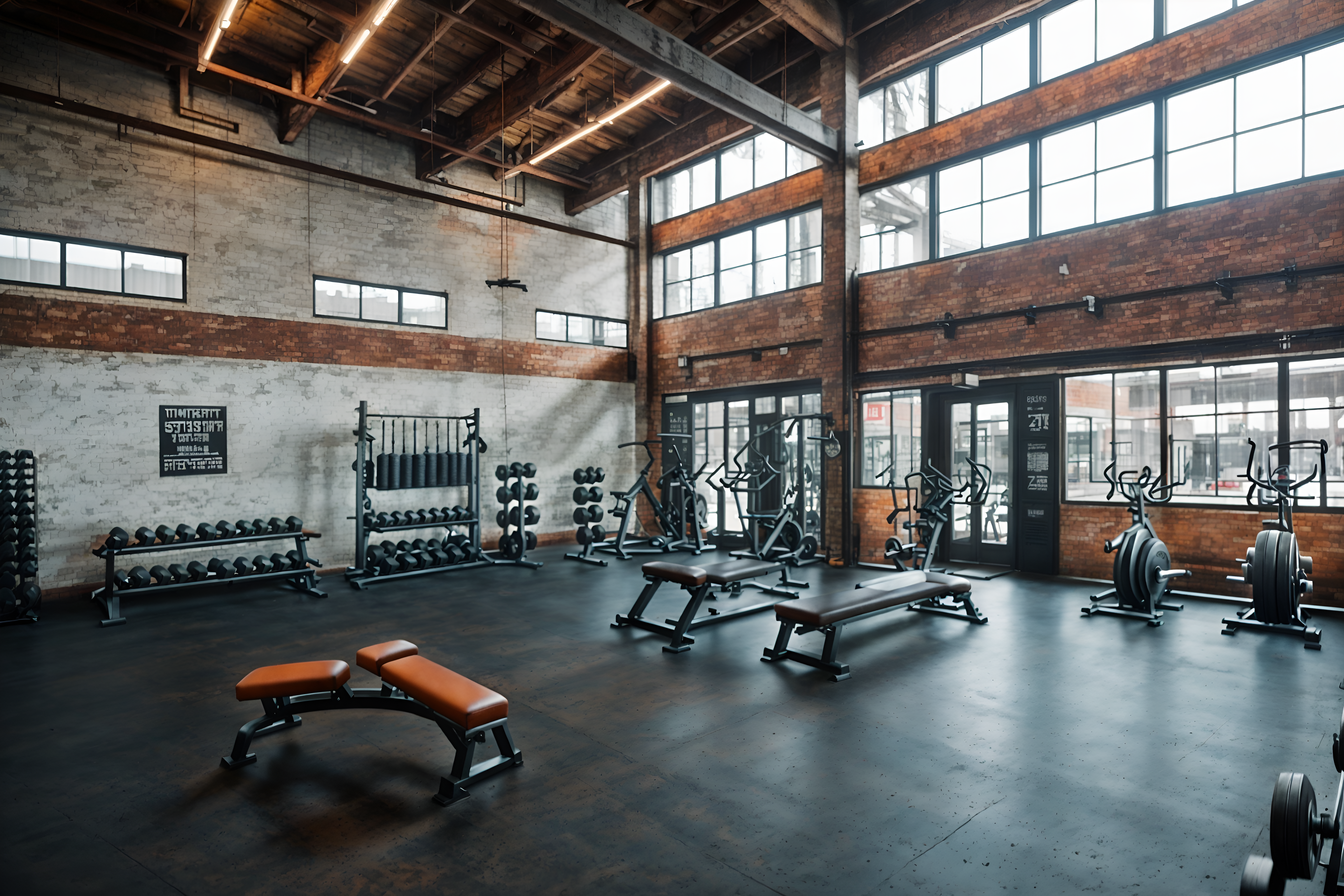 photo from pinterest of industrial-style interior designed (fitness gym interior) with exercise bicycle and dumbbell stand and squat rack and crosstrainer and bench press and exercise bicycle. . with exposed rafters and raw aesthetic and exposed brick and reclaimed wood and factory style and open floorplan and utilitarian objects and metal panels. . cinematic photo, highly detailed, cinematic lighting, ultra-detailed, ultrarealistic, photorealism, 8k. trending on pinterest. industrial interior design style. masterpiece, cinematic light, ultrarealistic+, photorealistic+, 8k, raw photo, realistic, sharp focus on eyes, (symmetrical eyes), (intact eyes), hyperrealistic, highest quality, best quality, , highly detailed, masterpiece, best quality, extremely detailed 8k wallpaper, masterpiece, best quality, ultra-detailed, best shadow, detailed background, detailed face, detailed eyes, high contrast, best illumination, detailed face, dulux, caustic, dynamic angle, detailed glow. dramatic lighting. highly detailed, insanely detailed hair, symmetrical, intricate details, professionally retouched, 8k high definition. strong bokeh. award winning photo.