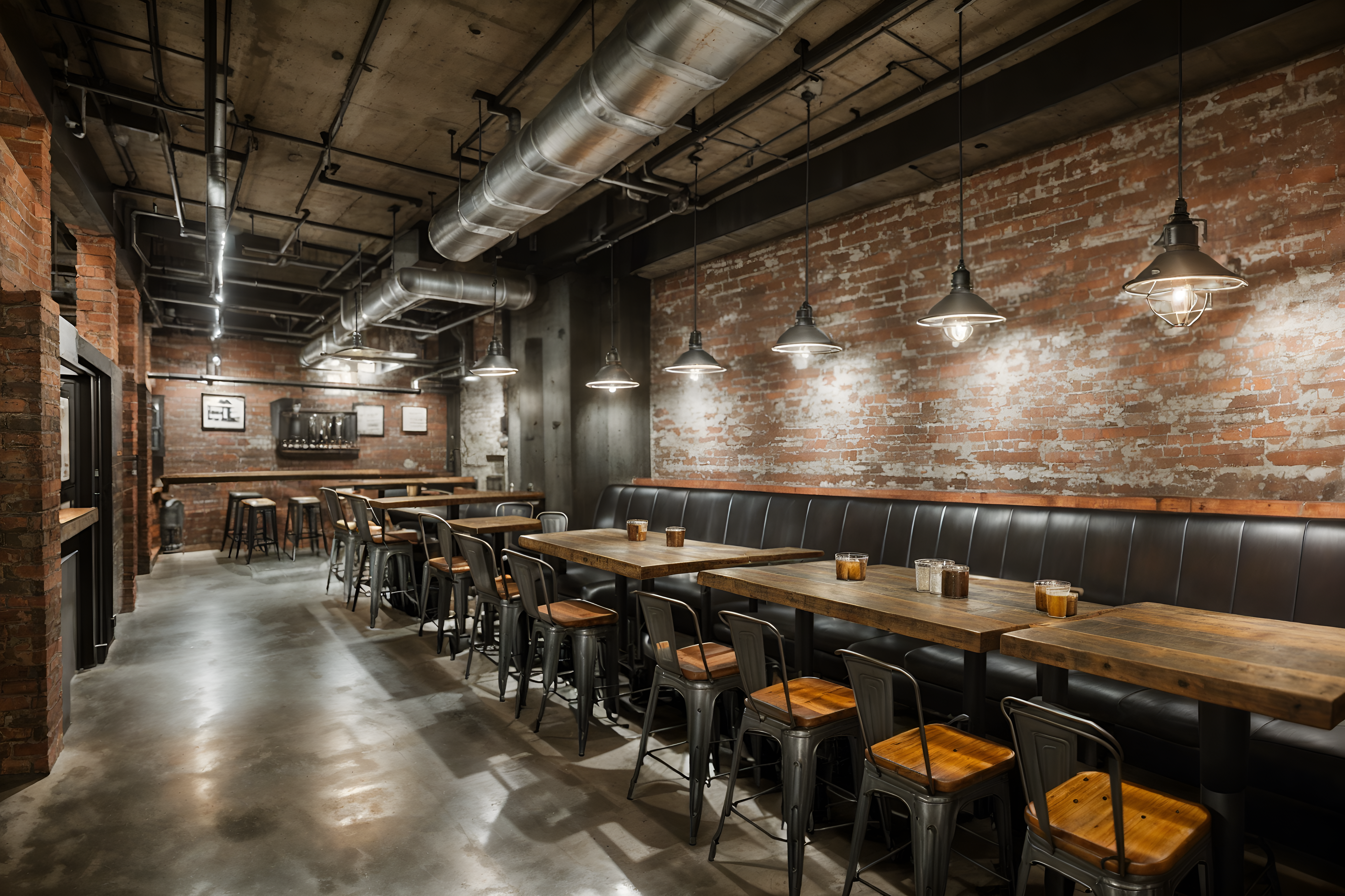 photo from pinterest of industrial-style interior designed (restaurant interior) with restaurant dining tables and restaurant bar and restaurant decor and restaurant chairs and restaurant dining tables. . with metal panels and utilitarian objects and reclaimed wood and raw aesthetic and neutral tones and exposed brick and open floorplan and exposed concrete. . cinematic photo, highly detailed, cinematic lighting, ultra-detailed, ultrarealistic, photorealism, 8k. trending on pinterest. industrial interior design style. masterpiece, cinematic light, ultrarealistic+, photorealistic+, 8k, raw photo, realistic, sharp focus on eyes, (symmetrical eyes), (intact eyes), hyperrealistic, highest quality, best quality, , highly detailed, masterpiece, best quality, extremely detailed 8k wallpaper, masterpiece, best quality, ultra-detailed, best shadow, detailed background, detailed face, detailed eyes, high contrast, best illumination, detailed face, dulux, caustic, dynamic angle, detailed glow. dramatic lighting. highly detailed, insanely detailed hair, symmetrical, intricate details, professionally retouched, 8k high definition. strong bokeh. award winning photo.