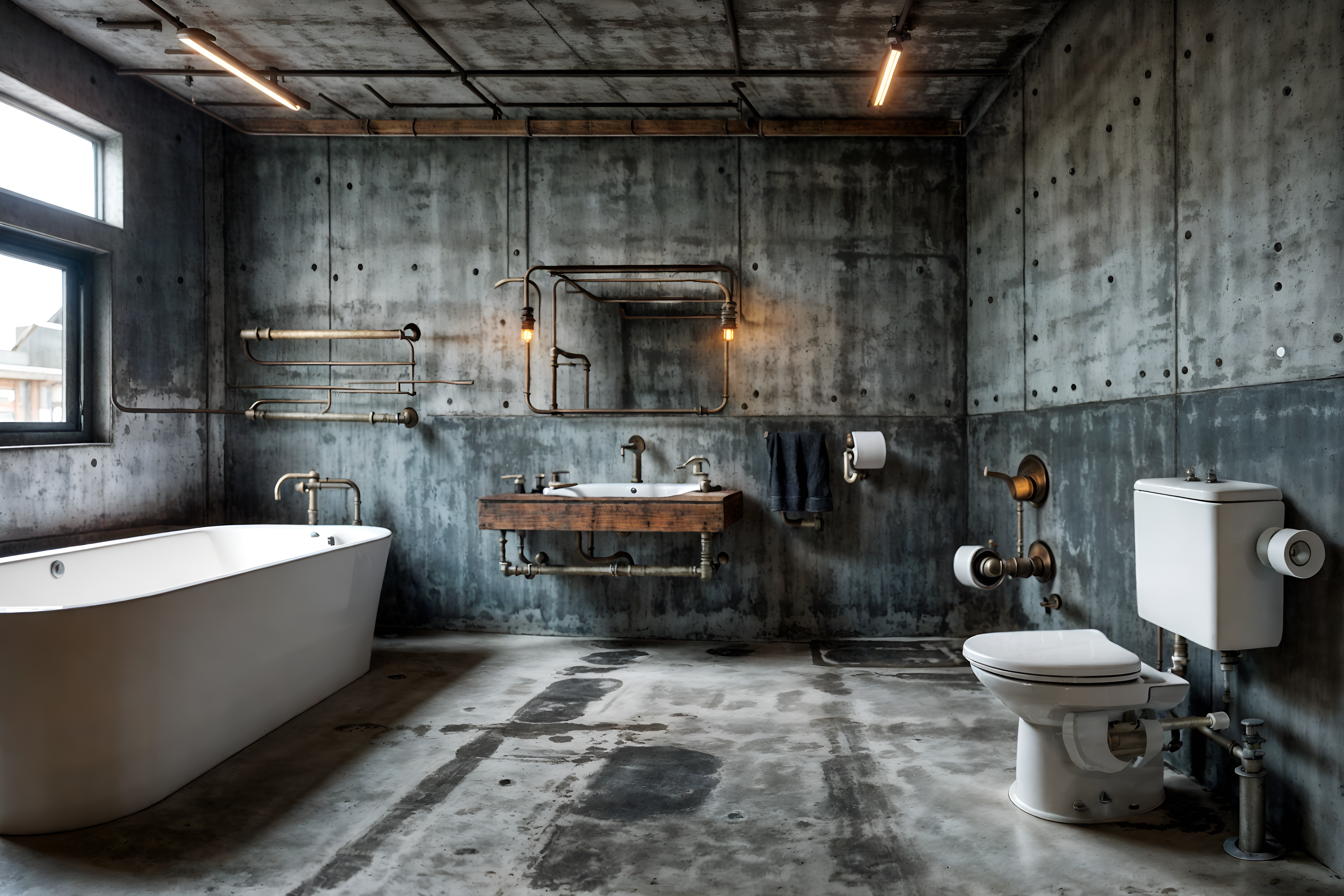 photo from pinterest of industrial-style interior designed (toilet interior) with sink with tap and toilet paper hanger and toilet with toilet seat up and sink with tap. . with neutral tones and metal panels and exposed concrete and exposed rafters and reclaimed wood and raw aesthetic and open floorplan and exposed brick. . cinematic photo, highly detailed, cinematic lighting, ultra-detailed, ultrarealistic, photorealism, 8k. trending on pinterest. industrial interior design style. masterpiece, cinematic light, ultrarealistic+, photorealistic+, 8k, raw photo, realistic, sharp focus on eyes, (symmetrical eyes), (intact eyes), hyperrealistic, highest quality, best quality, , highly detailed, masterpiece, best quality, extremely detailed 8k wallpaper, masterpiece, best quality, ultra-detailed, best shadow, detailed background, detailed face, detailed eyes, high contrast, best illumination, detailed face, dulux, caustic, dynamic angle, detailed glow. dramatic lighting. highly detailed, insanely detailed hair, symmetrical, intricate details, professionally retouched, 8k high definition. strong bokeh. award winning photo.