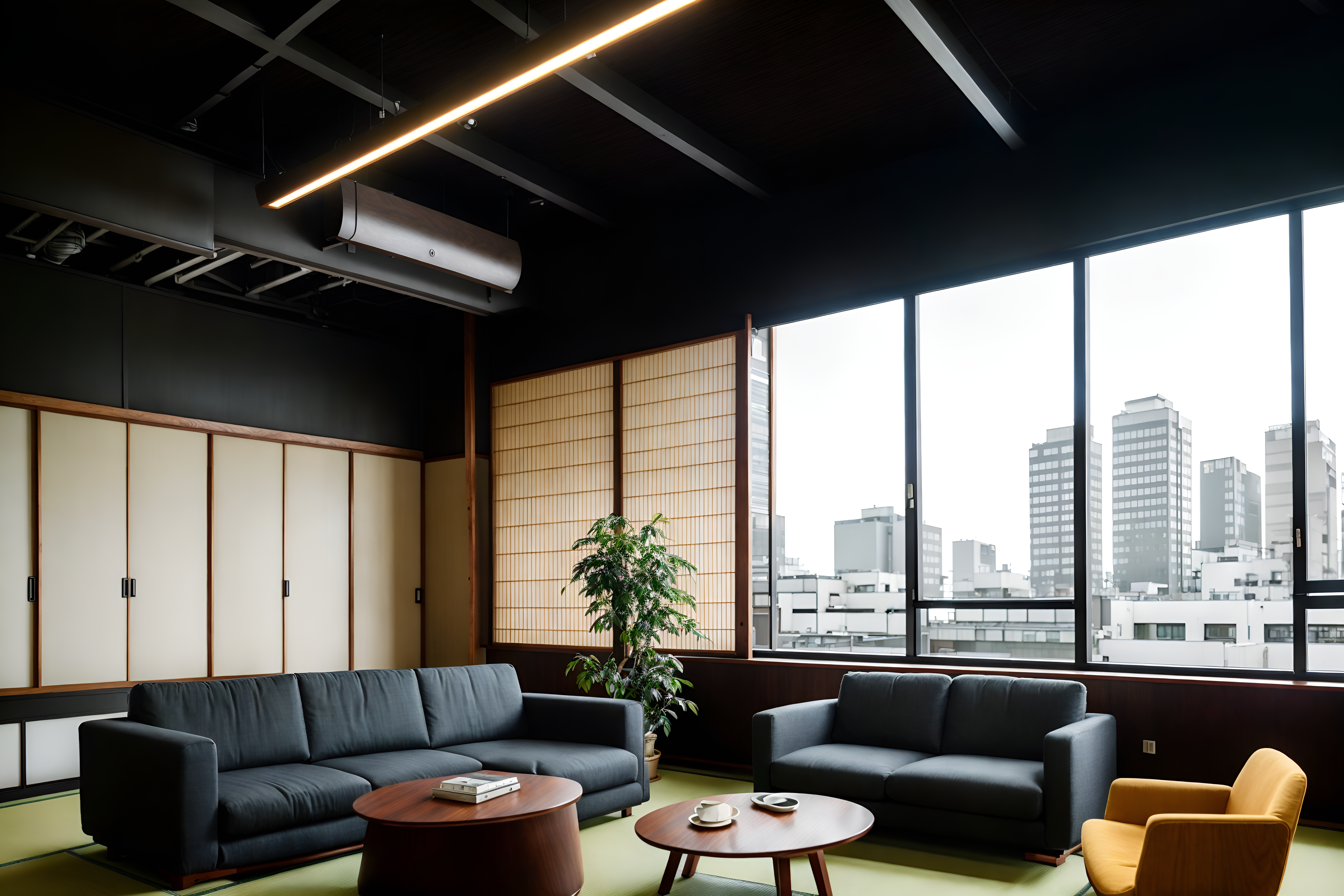 photo from pinterest of japanese design-style interior designed (coworking space interior) with seating area with sofa and lounge chairs and office desks and office chairs and seating area with sofa. . with . . cinematic photo, highly detailed, cinematic lighting, ultra-detailed, ultrarealistic, photorealism, 8k. trending on pinterest. japanese design interior design style. masterpiece, cinematic light, ultrarealistic+, photorealistic+, 8k, raw photo, realistic, sharp focus on eyes, (symmetrical eyes), (intact eyes), hyperrealistic, highest quality, best quality, , highly detailed, masterpiece, best quality, extremely detailed 8k wallpaper, masterpiece, best quality, ultra-detailed, best shadow, detailed background, detailed face, detailed eyes, high contrast, best illumination, detailed face, dulux, caustic, dynamic angle, detailed glow. dramatic lighting. highly detailed, insanely detailed hair, symmetrical, intricate details, professionally retouched, 8k high definition. strong bokeh. award winning photo.
