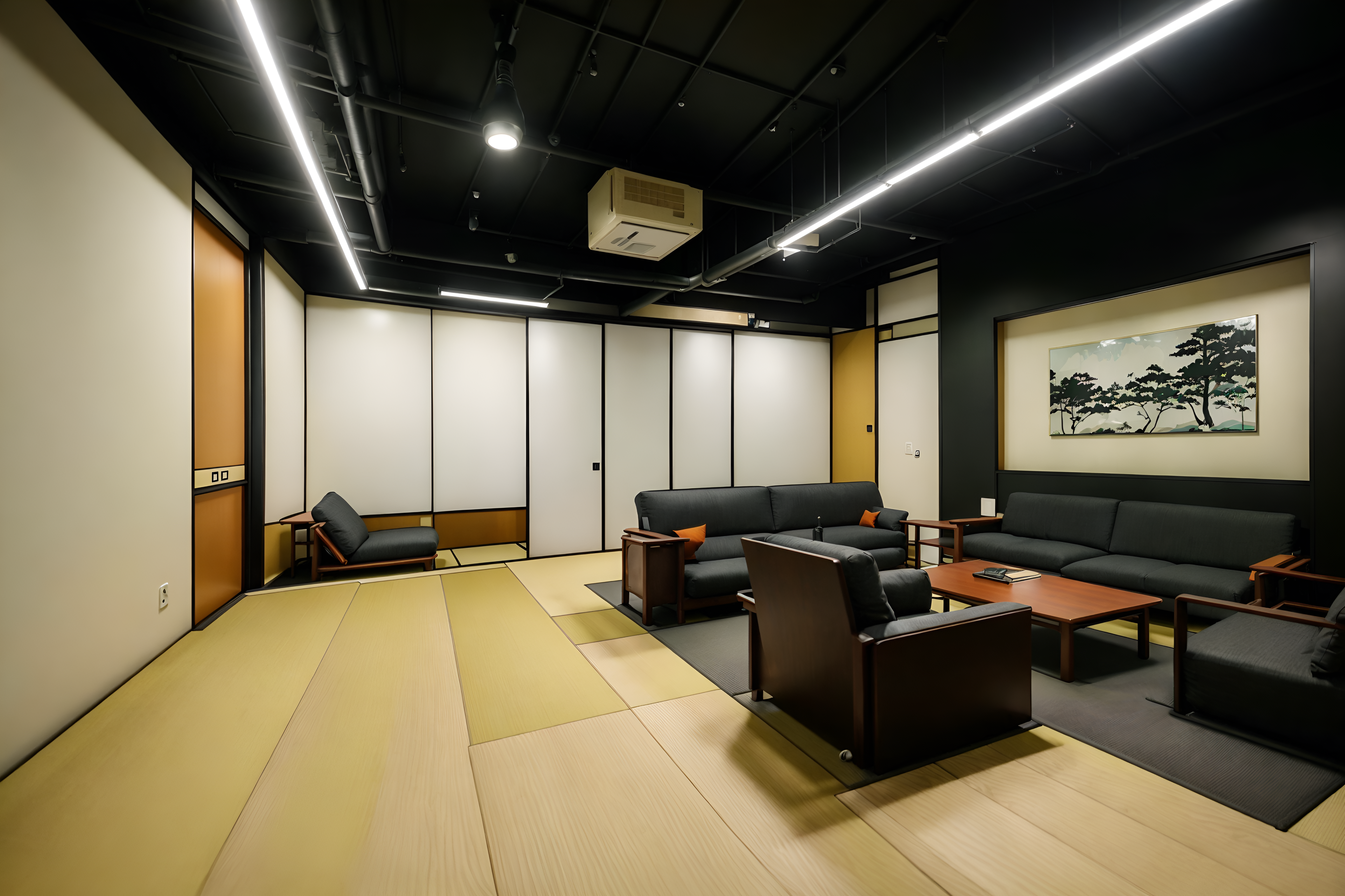photo from pinterest of japanese design-style interior designed (coworking space interior) with seating area with sofa and lounge chairs and office desks and office chairs and seating area with sofa. . with . . cinematic photo, highly detailed, cinematic lighting, ultra-detailed, ultrarealistic, photorealism, 8k. trending on pinterest. japanese design interior design style. masterpiece, cinematic light, ultrarealistic+, photorealistic+, 8k, raw photo, realistic, sharp focus on eyes, (symmetrical eyes), (intact eyes), hyperrealistic, highest quality, best quality, , highly detailed, masterpiece, best quality, extremely detailed 8k wallpaper, masterpiece, best quality, ultra-detailed, best shadow, detailed background, detailed face, detailed eyes, high contrast, best illumination, detailed face, dulux, caustic, dynamic angle, detailed glow. dramatic lighting. highly detailed, insanely detailed hair, symmetrical, intricate details, professionally retouched, 8k high definition. strong bokeh. award winning photo.