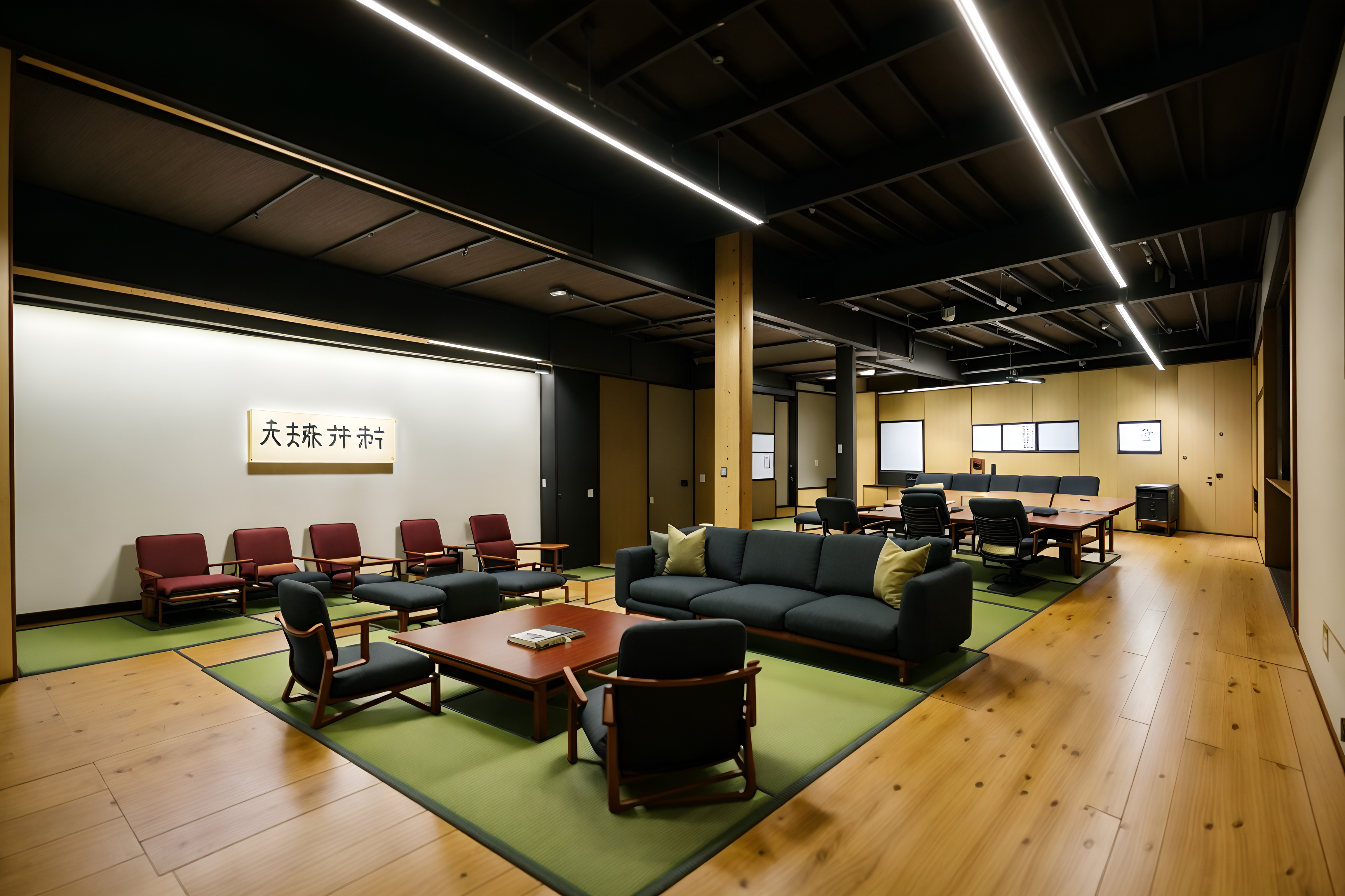 photo from pinterest of japanese design-style interior designed (coworking space interior) with seating area with sofa and lounge chairs and office desks and office chairs and seating area with sofa. . with . . cinematic photo, highly detailed, cinematic lighting, ultra-detailed, ultrarealistic, photorealism, 8k. trending on pinterest. japanese design interior design style. masterpiece, cinematic light, ultrarealistic+, photorealistic+, 8k, raw photo, realistic, sharp focus on eyes, (symmetrical eyes), (intact eyes), hyperrealistic, highest quality, best quality, , highly detailed, masterpiece, best quality, extremely detailed 8k wallpaper, masterpiece, best quality, ultra-detailed, best shadow, detailed background, detailed face, detailed eyes, high contrast, best illumination, detailed face, dulux, caustic, dynamic angle, detailed glow. dramatic lighting. highly detailed, insanely detailed hair, symmetrical, intricate details, professionally retouched, 8k high definition. strong bokeh. award winning photo.