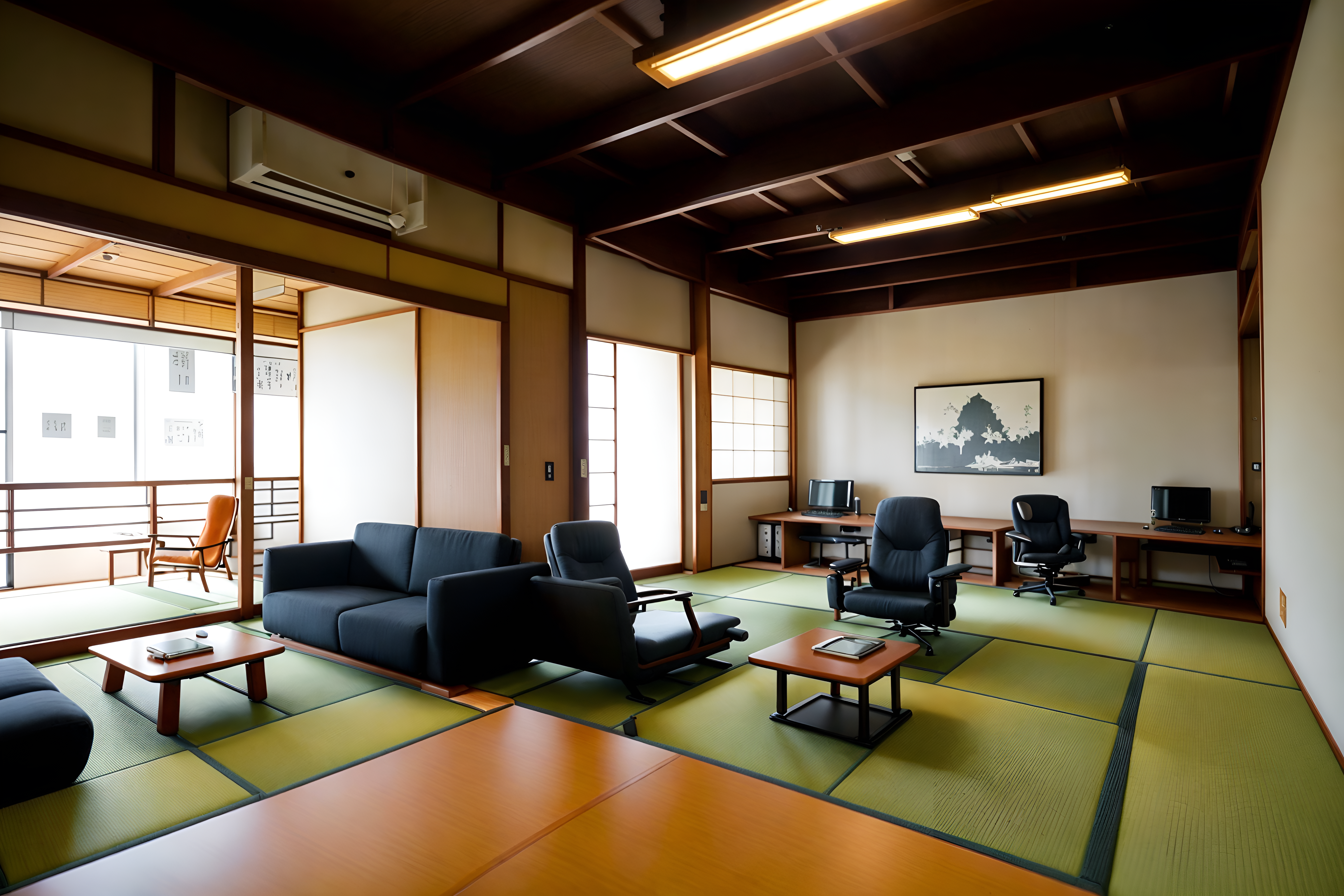 photo from pinterest of japanese design-style interior designed (coworking space interior) with seating area with sofa and lounge chairs and office desks and office chairs and seating area with sofa. . with . . cinematic photo, highly detailed, cinematic lighting, ultra-detailed, ultrarealistic, photorealism, 8k. trending on pinterest. japanese design interior design style. masterpiece, cinematic light, ultrarealistic+, photorealistic+, 8k, raw photo, realistic, sharp focus on eyes, (symmetrical eyes), (intact eyes), hyperrealistic, highest quality, best quality, , highly detailed, masterpiece, best quality, extremely detailed 8k wallpaper, masterpiece, best quality, ultra-detailed, best shadow, detailed background, detailed face, detailed eyes, high contrast, best illumination, detailed face, dulux, caustic, dynamic angle, detailed glow. dramatic lighting. highly detailed, insanely detailed hair, symmetrical, intricate details, professionally retouched, 8k high definition. strong bokeh. award winning photo.