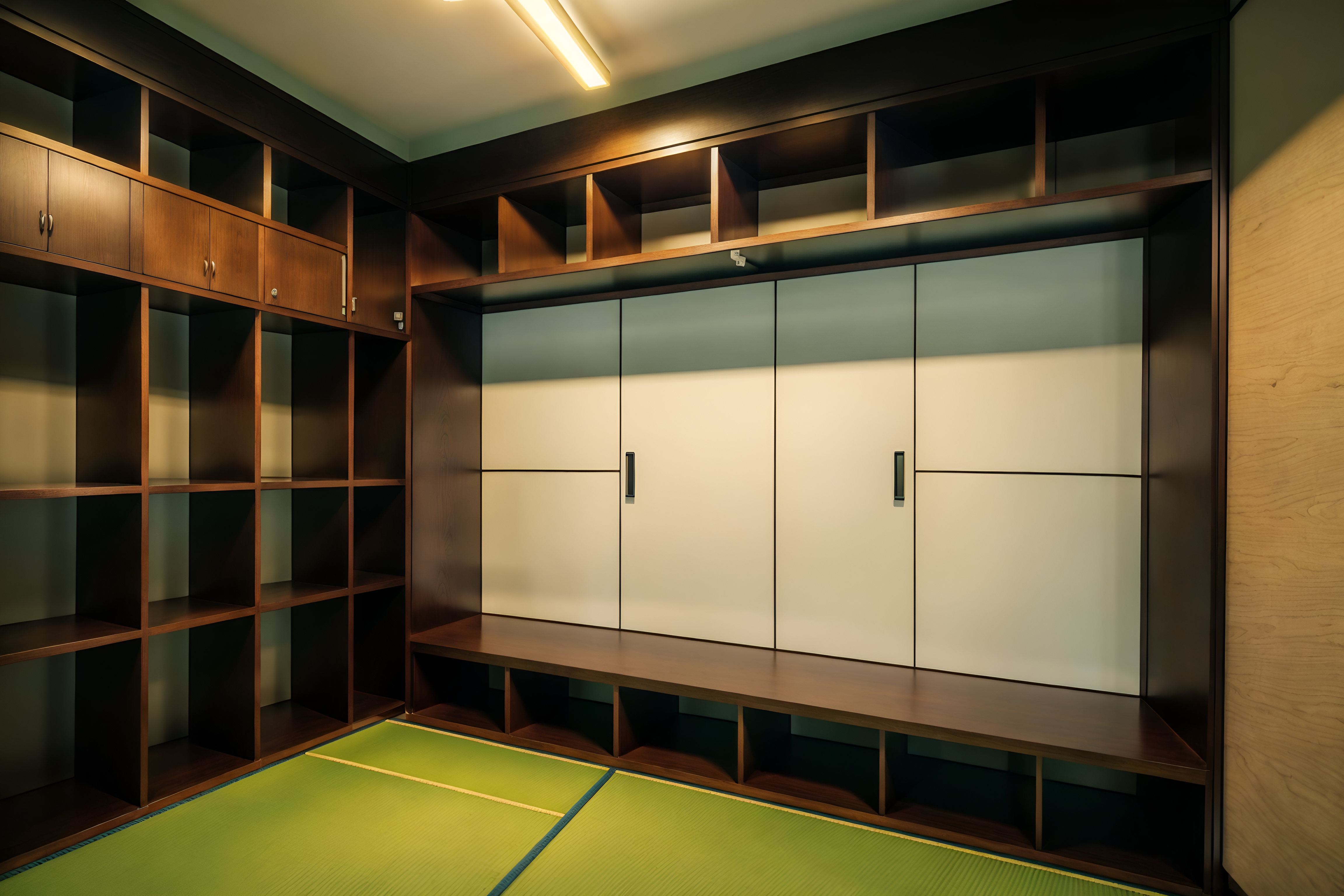japanese design drop zonesinterior decorate this drop zone with japanese design style. . . with storage drawers and storage baskets and high up storage and lockers and cabinets and a bench and shelves for shoes and cubbies. . with wabi-sabi and indoor plants and tatami mats and neutral colors and tranquility and zen decor and sliding doors and natural materials. . .