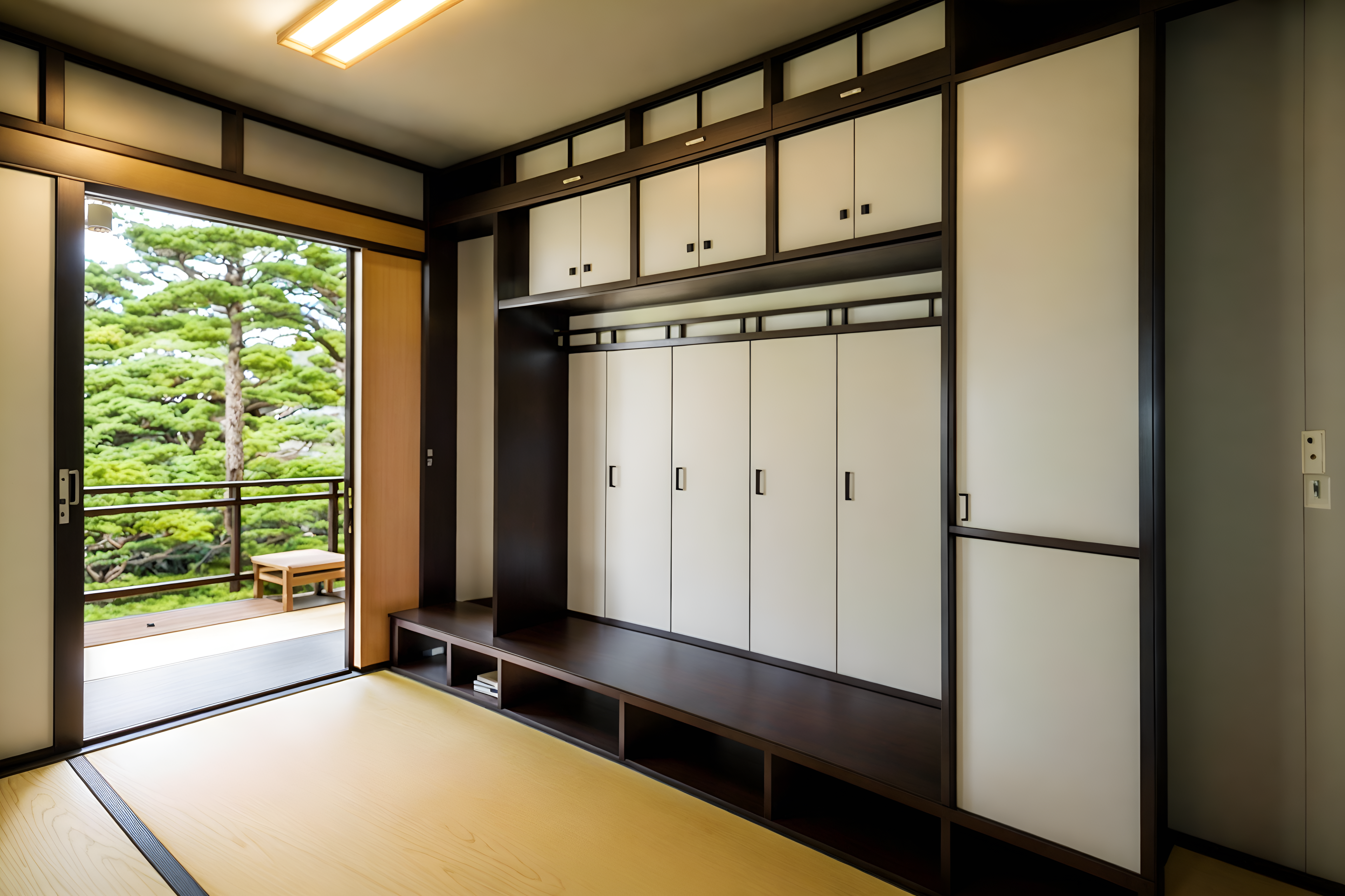 photo from pinterest of japanese design-style interior designed (drop zone interior) with cubbies and wall hooks for coats and high up storage and a bench and shelves for shoes and lockers and cabinets and storage baskets. . with . . cinematic photo, highly detailed, cinematic lighting, ultra-detailed, ultrarealistic, photorealism, 8k. trending on pinterest. japanese design interior design style. masterpiece, cinematic light, ultrarealistic+, photorealistic+, 8k, raw photo, realistic, sharp focus on eyes, (symmetrical eyes), (intact eyes), hyperrealistic, highest quality, best quality, , highly detailed, masterpiece, best quality, extremely detailed 8k wallpaper, masterpiece, best quality, ultra-detailed, best shadow, detailed background, detailed face, detailed eyes, high contrast, best illumination, detailed face, dulux, caustic, dynamic angle, detailed glow. dramatic lighting. highly detailed, insanely detailed hair, symmetrical, intricate details, professionally retouched, 8k high definition. strong bokeh. award winning photo.