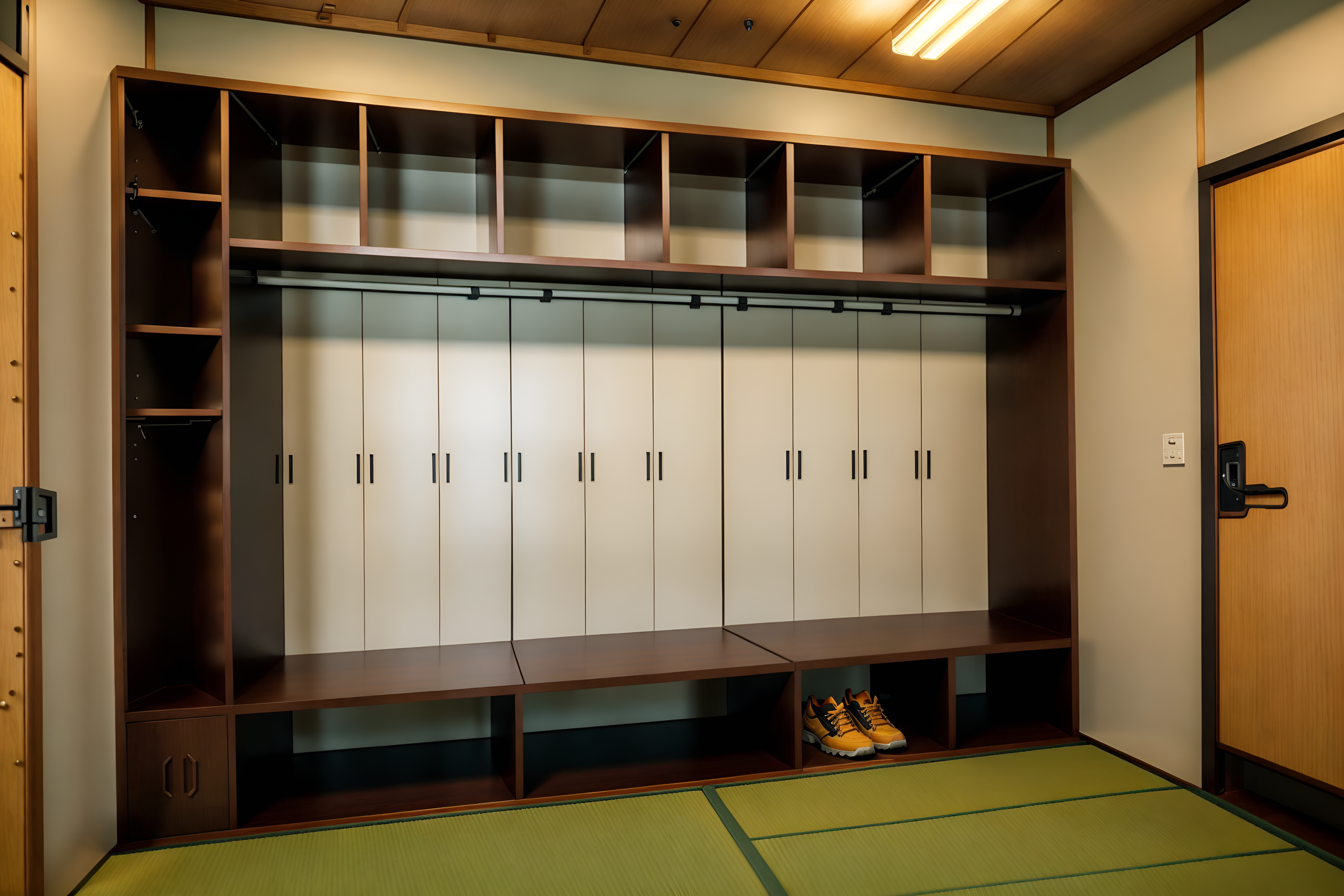 photo from pinterest of japanese design-style interior designed (drop zone interior) with cubbies and wall hooks for coats and high up storage and a bench and shelves for shoes and lockers and cabinets and storage baskets. . with . . cinematic photo, highly detailed, cinematic lighting, ultra-detailed, ultrarealistic, photorealism, 8k. trending on pinterest. japanese design interior design style. masterpiece, cinematic light, ultrarealistic+, photorealistic+, 8k, raw photo, realistic, sharp focus on eyes, (symmetrical eyes), (intact eyes), hyperrealistic, highest quality, best quality, , highly detailed, masterpiece, best quality, extremely detailed 8k wallpaper, masterpiece, best quality, ultra-detailed, best shadow, detailed background, detailed face, detailed eyes, high contrast, best illumination, detailed face, dulux, caustic, dynamic angle, detailed glow. dramatic lighting. highly detailed, insanely detailed hair, symmetrical, intricate details, professionally retouched, 8k high definition. strong bokeh. award winning photo.