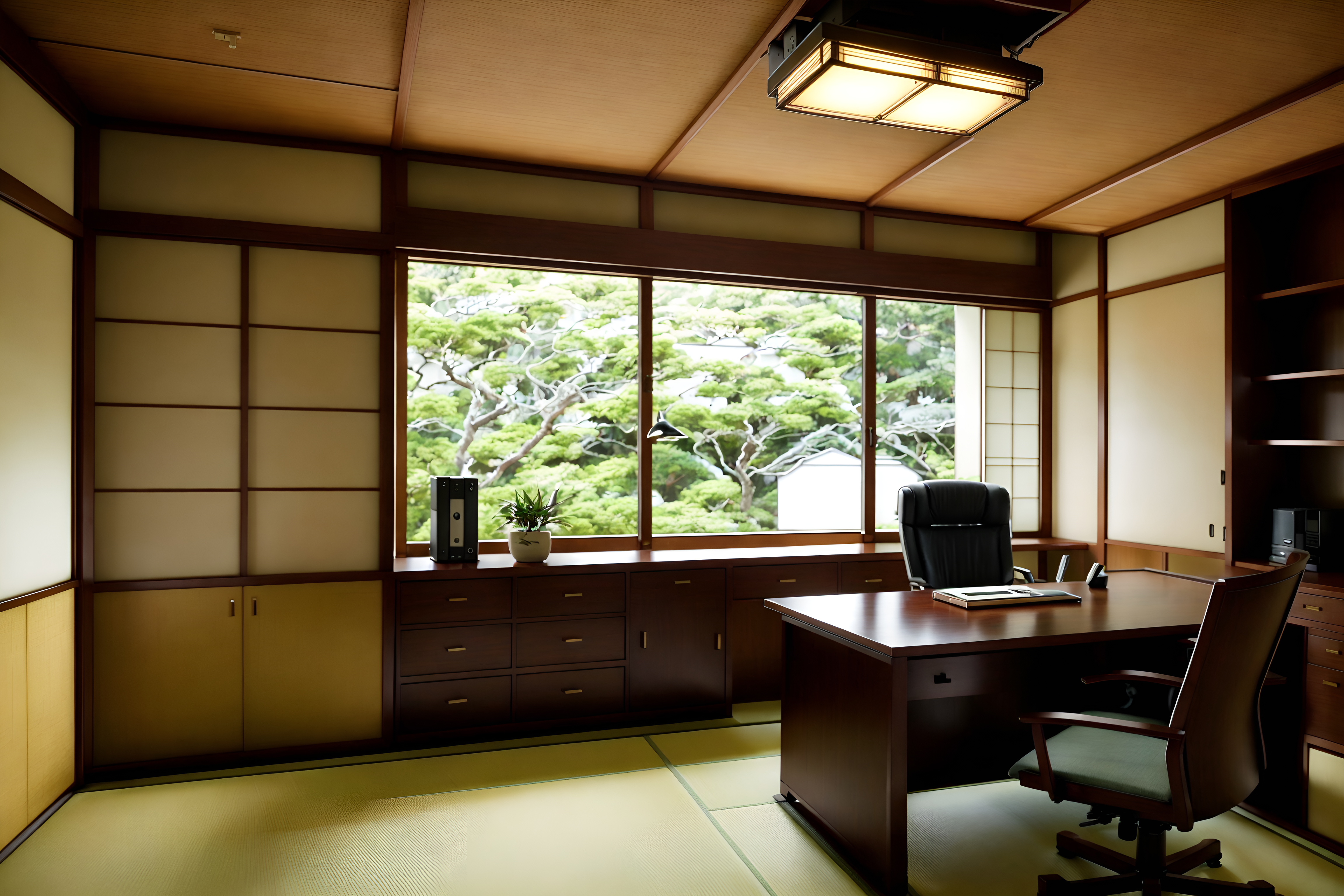 photo from pinterest of japanese design-style interior designed (home office interior) with cabinets and plant and desk lamp and office chair and computer desk and cabinets. . with . . cinematic photo, highly detailed, cinematic lighting, ultra-detailed, ultrarealistic, photorealism, 8k. trending on pinterest. japanese design interior design style. masterpiece, cinematic light, ultrarealistic+, photorealistic+, 8k, raw photo, realistic, sharp focus on eyes, (symmetrical eyes), (intact eyes), hyperrealistic, highest quality, best quality, , highly detailed, masterpiece, best quality, extremely detailed 8k wallpaper, masterpiece, best quality, ultra-detailed, best shadow, detailed background, detailed face, detailed eyes, high contrast, best illumination, detailed face, dulux, caustic, dynamic angle, detailed glow. dramatic lighting. highly detailed, insanely detailed hair, symmetrical, intricate details, professionally retouched, 8k high definition. strong bokeh. award winning photo.