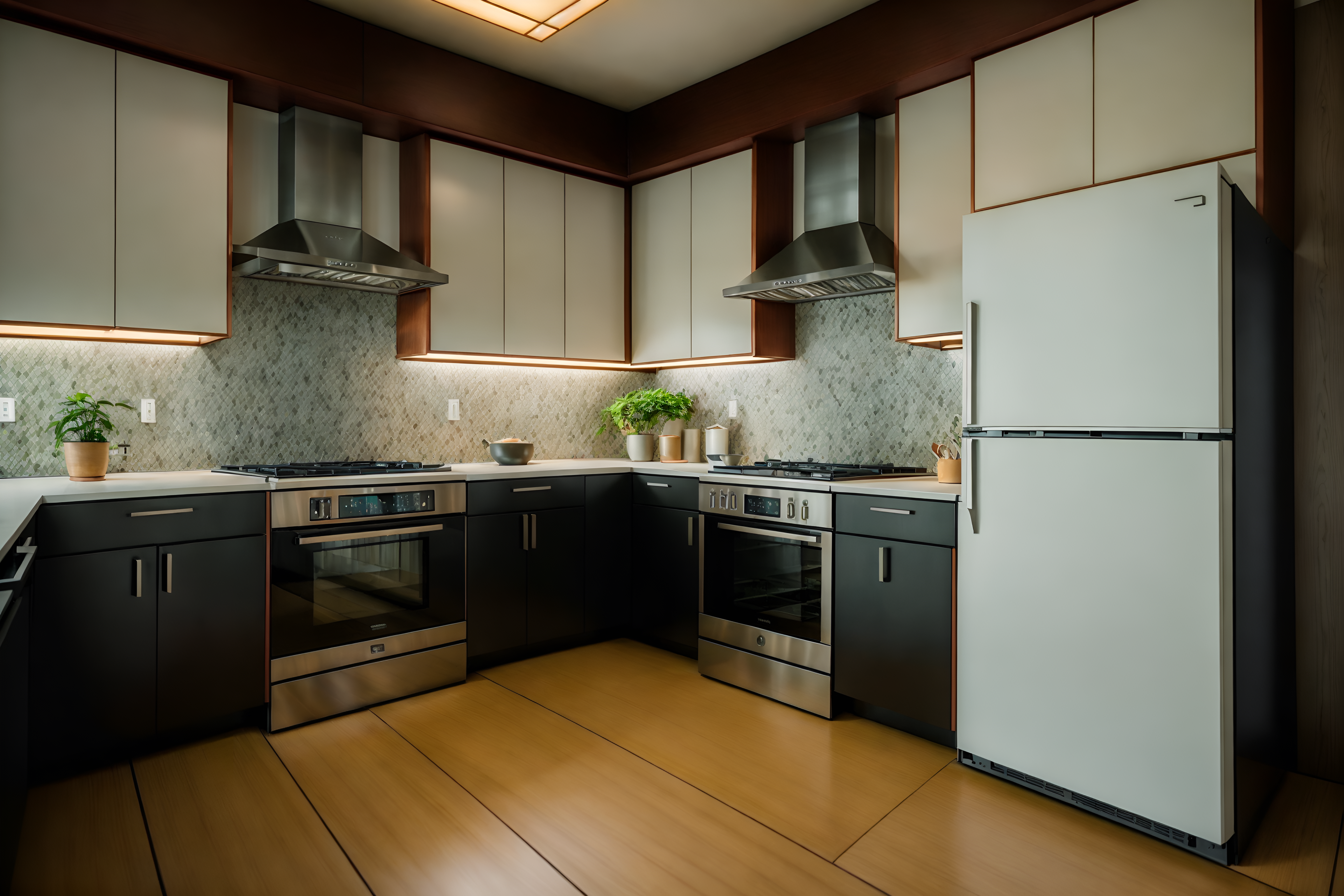photo from pinterest of japanese design-style interior designed (kitchen interior) with stove and kitchen cabinets and worktops and plant and refrigerator and sink and stove. . with . . cinematic photo, highly detailed, cinematic lighting, ultra-detailed, ultrarealistic, photorealism, 8k. trending on pinterest. japanese design interior design style. masterpiece, cinematic light, ultrarealistic+, photorealistic+, 8k, raw photo, realistic, sharp focus on eyes, (symmetrical eyes), (intact eyes), hyperrealistic, highest quality, best quality, , highly detailed, masterpiece, best quality, extremely detailed 8k wallpaper, masterpiece, best quality, ultra-detailed, best shadow, detailed background, detailed face, detailed eyes, high contrast, best illumination, detailed face, dulux, caustic, dynamic angle, detailed glow. dramatic lighting. highly detailed, insanely detailed hair, symmetrical, intricate details, professionally retouched, 8k high definition. strong bokeh. award winning photo.