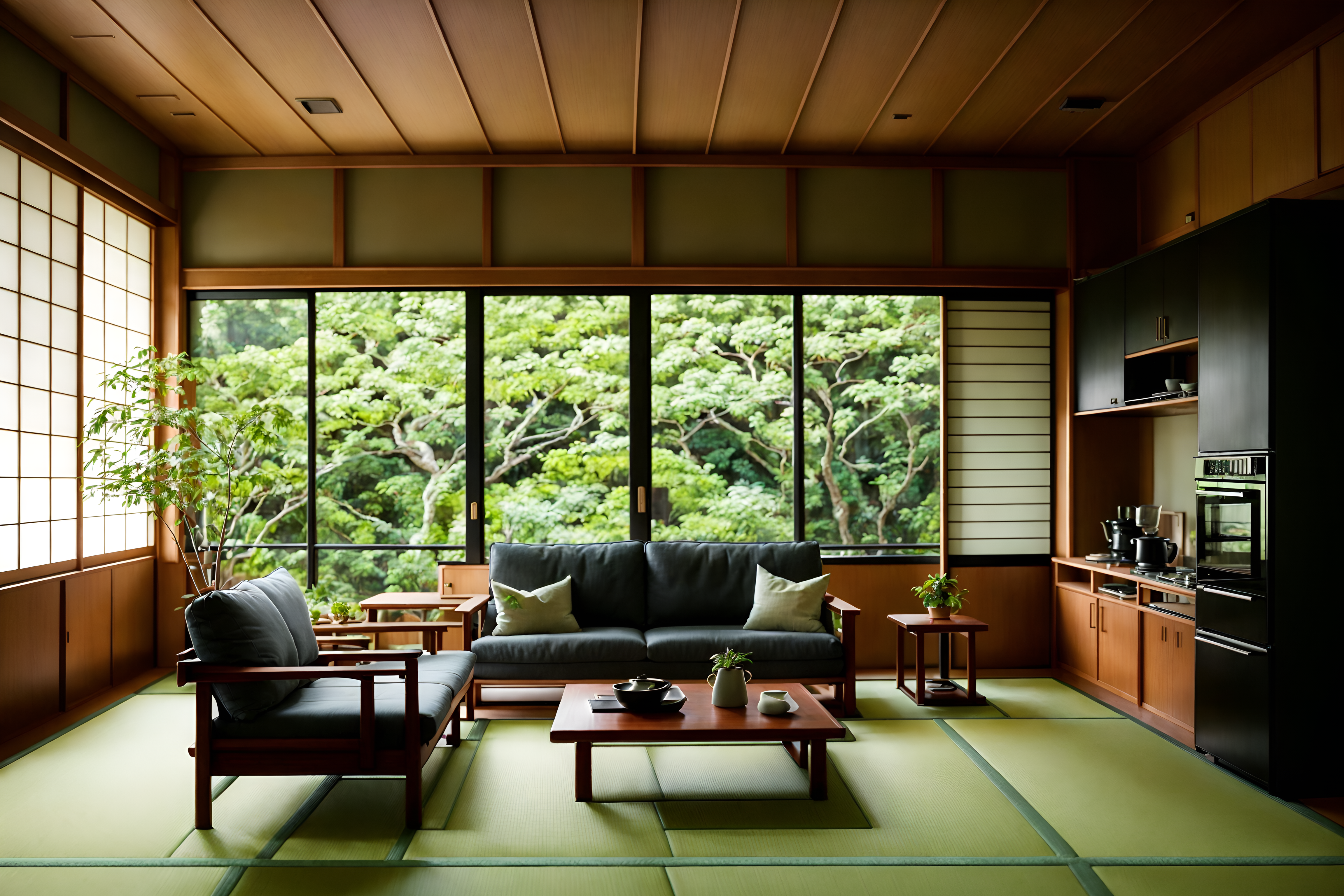 photo from pinterest of japanese design-style interior designed (kitchen living combo interior) with chairs and plant and refrigerator and coffee tables and sofa and bookshelves and plant and kitchen cabinets. . with . . cinematic photo, highly detailed, cinematic lighting, ultra-detailed, ultrarealistic, photorealism, 8k. trending on pinterest. japanese design interior design style. masterpiece, cinematic light, ultrarealistic+, photorealistic+, 8k, raw photo, realistic, sharp focus on eyes, (symmetrical eyes), (intact eyes), hyperrealistic, highest quality, best quality, , highly detailed, masterpiece, best quality, extremely detailed 8k wallpaper, masterpiece, best quality, ultra-detailed, best shadow, detailed background, detailed face, detailed eyes, high contrast, best illumination, detailed face, dulux, caustic, dynamic angle, detailed glow. dramatic lighting. highly detailed, insanely detailed hair, symmetrical, intricate details, professionally retouched, 8k high definition. strong bokeh. award winning photo.