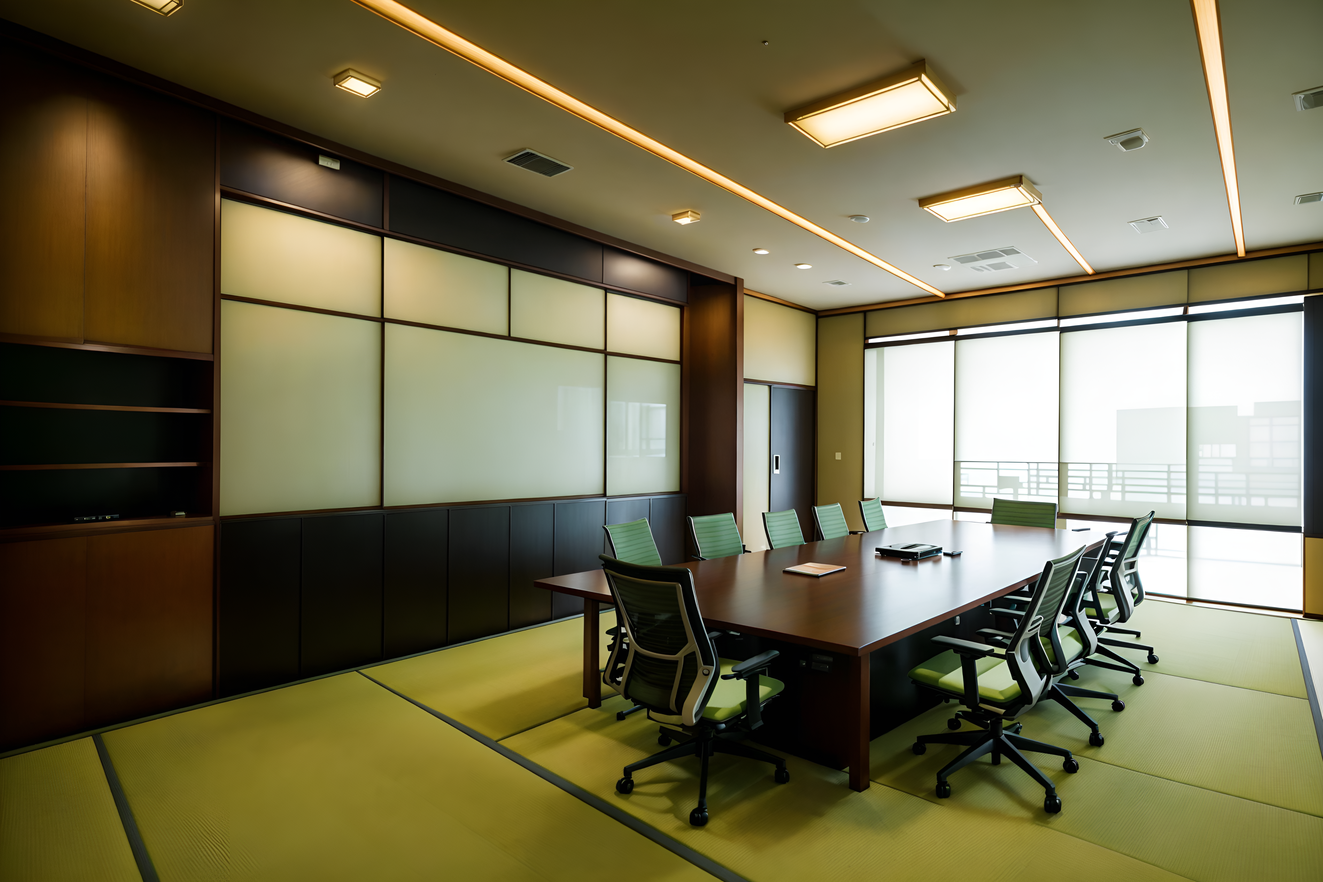 photo from pinterest of japanese design-style interior designed (meeting room interior) with cabinets and office chairs and painting or photo on wall and glass doors and boardroom table and glass walls and plant and vase. . with . . cinematic photo, highly detailed, cinematic lighting, ultra-detailed, ultrarealistic, photorealism, 8k. trending on pinterest. japanese design interior design style. masterpiece, cinematic light, ultrarealistic+, photorealistic+, 8k, raw photo, realistic, sharp focus on eyes, (symmetrical eyes), (intact eyes), hyperrealistic, highest quality, best quality, , highly detailed, masterpiece, best quality, extremely detailed 8k wallpaper, masterpiece, best quality, ultra-detailed, best shadow, detailed background, detailed face, detailed eyes, high contrast, best illumination, detailed face, dulux, caustic, dynamic angle, detailed glow. dramatic lighting. highly detailed, insanely detailed hair, symmetrical, intricate details, professionally retouched, 8k high definition. strong bokeh. award winning photo.