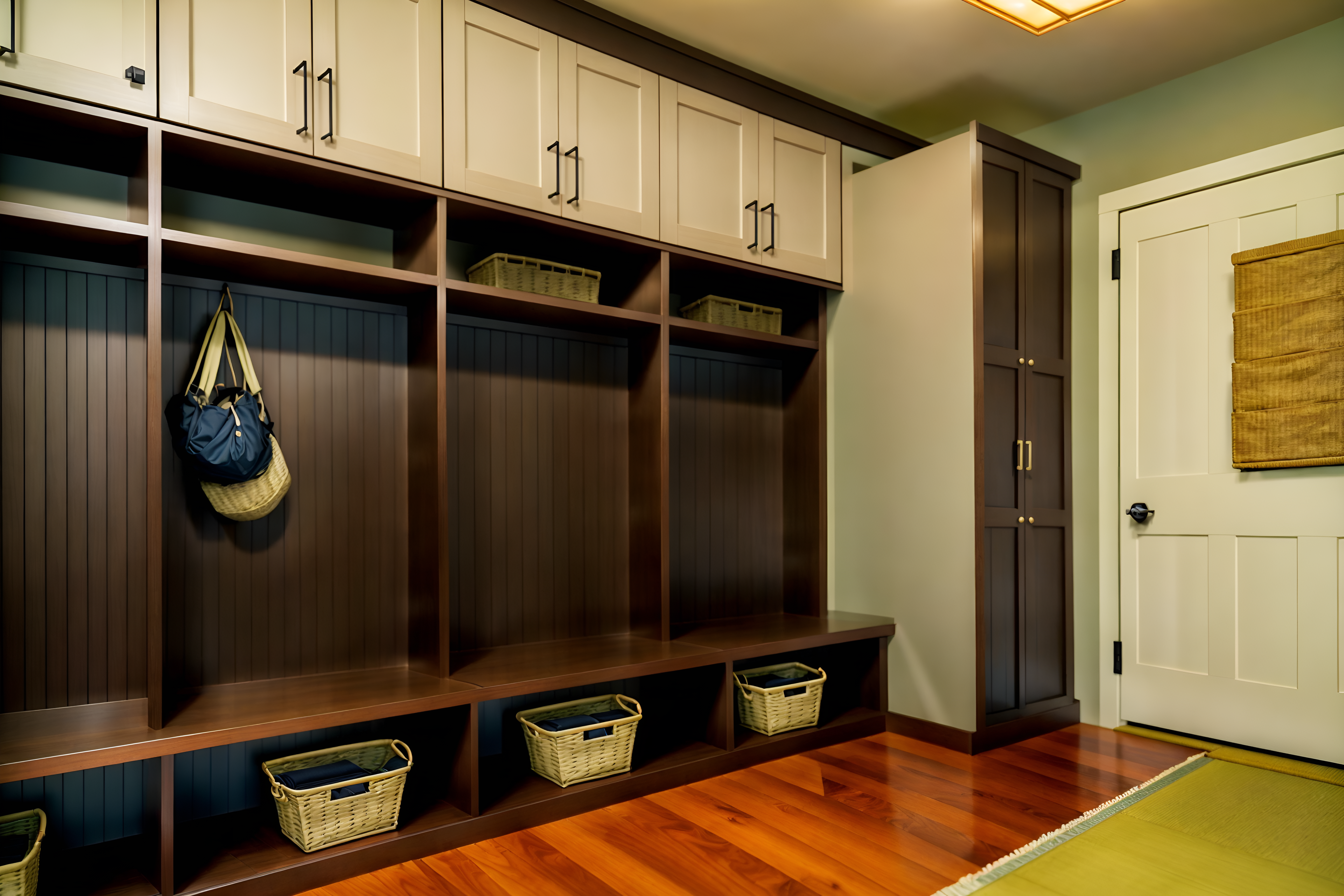 photo from pinterest of japanese design-style interior designed (mudroom interior) with storage baskets and a bench and cabinets and wall hooks for coats and storage drawers and shelves for shoes and cubbies and high up storage. . with . . cinematic photo, highly detailed, cinematic lighting, ultra-detailed, ultrarealistic, photorealism, 8k. trending on pinterest. japanese design interior design style. masterpiece, cinematic light, ultrarealistic+, photorealistic+, 8k, raw photo, realistic, sharp focus on eyes, (symmetrical eyes), (intact eyes), hyperrealistic, highest quality, best quality, , highly detailed, masterpiece, best quality, extremely detailed 8k wallpaper, masterpiece, best quality, ultra-detailed, best shadow, detailed background, detailed face, detailed eyes, high contrast, best illumination, detailed face, dulux, caustic, dynamic angle, detailed glow. dramatic lighting. highly detailed, insanely detailed hair, symmetrical, intricate details, professionally retouched, 8k high definition. strong bokeh. award winning photo.
