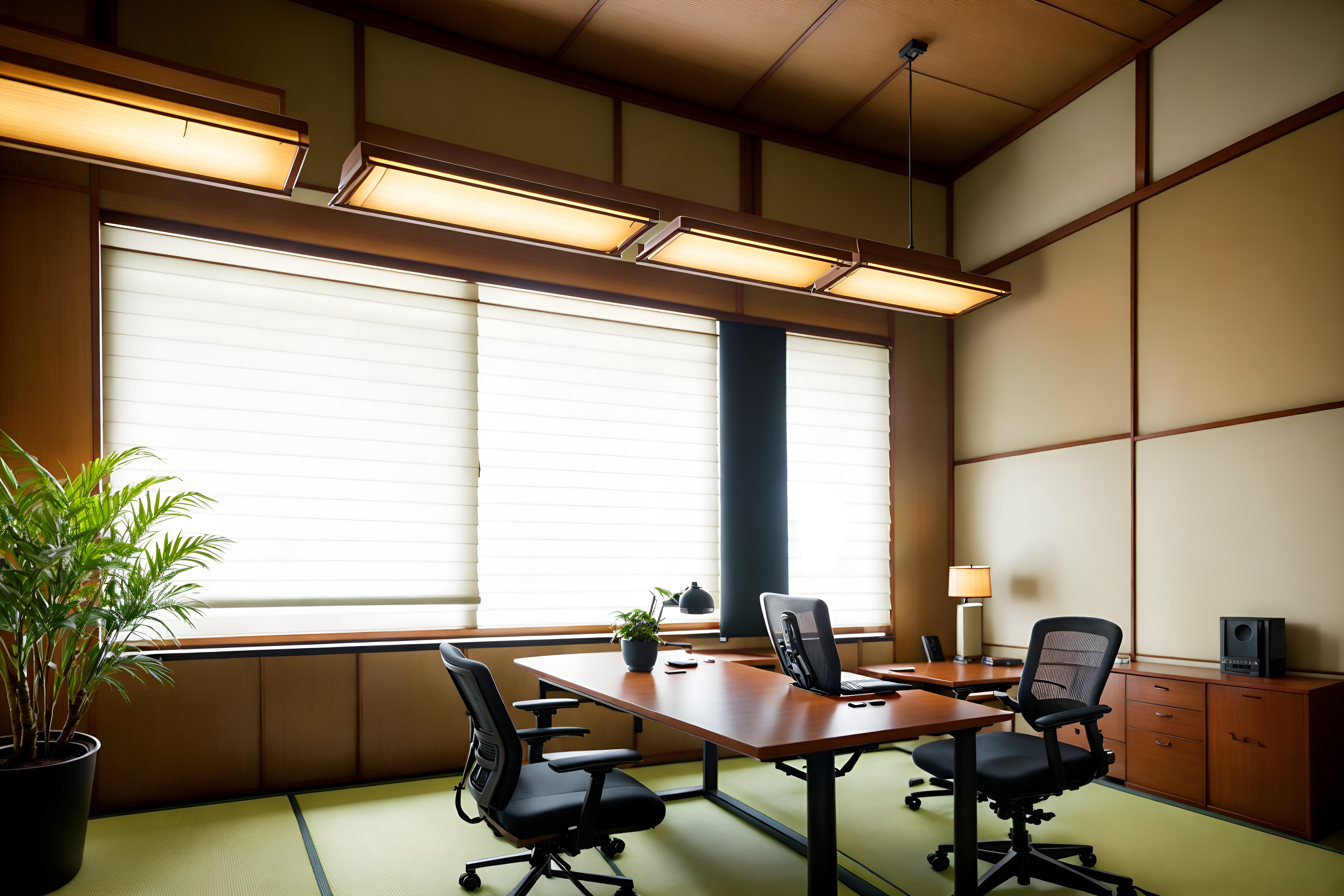 photo from pinterest of japanese design-style interior designed (office interior) with office chairs and desk lamps and plants and windows and office desks and computer desks and lounge chairs and cabinets. . with . . cinematic photo, highly detailed, cinematic lighting, ultra-detailed, ultrarealistic, photorealism, 8k. trending on pinterest. japanese design interior design style. masterpiece, cinematic light, ultrarealistic+, photorealistic+, 8k, raw photo, realistic, sharp focus on eyes, (symmetrical eyes), (intact eyes), hyperrealistic, highest quality, best quality, , highly detailed, masterpiece, best quality, extremely detailed 8k wallpaper, masterpiece, best quality, ultra-detailed, best shadow, detailed background, detailed face, detailed eyes, high contrast, best illumination, detailed face, dulux, caustic, dynamic angle, detailed glow. dramatic lighting. highly detailed, insanely detailed hair, symmetrical, intricate details, professionally retouched, 8k high definition. strong bokeh. award winning photo.