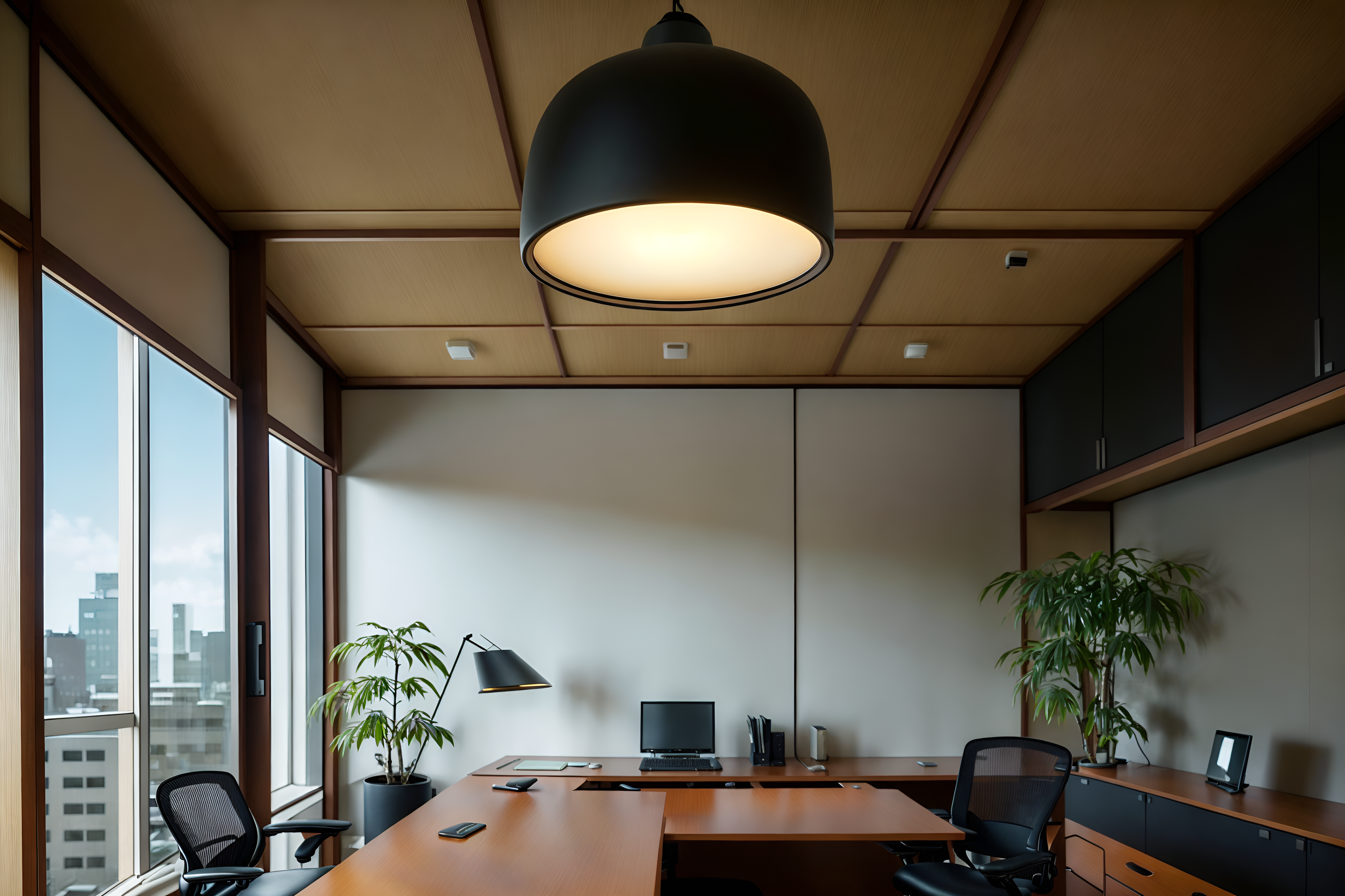 photo from pinterest of japanese design-style interior designed (office interior) with office chairs and desk lamps and plants and windows and office desks and computer desks and lounge chairs and cabinets. . with . . cinematic photo, highly detailed, cinematic lighting, ultra-detailed, ultrarealistic, photorealism, 8k. trending on pinterest. japanese design interior design style. masterpiece, cinematic light, ultrarealistic+, photorealistic+, 8k, raw photo, realistic, sharp focus on eyes, (symmetrical eyes), (intact eyes), hyperrealistic, highest quality, best quality, , highly detailed, masterpiece, best quality, extremely detailed 8k wallpaper, masterpiece, best quality, ultra-detailed, best shadow, detailed background, detailed face, detailed eyes, high contrast, best illumination, detailed face, dulux, caustic, dynamic angle, detailed glow. dramatic lighting. highly detailed, insanely detailed hair, symmetrical, intricate details, professionally retouched, 8k high definition. strong bokeh. award winning photo.