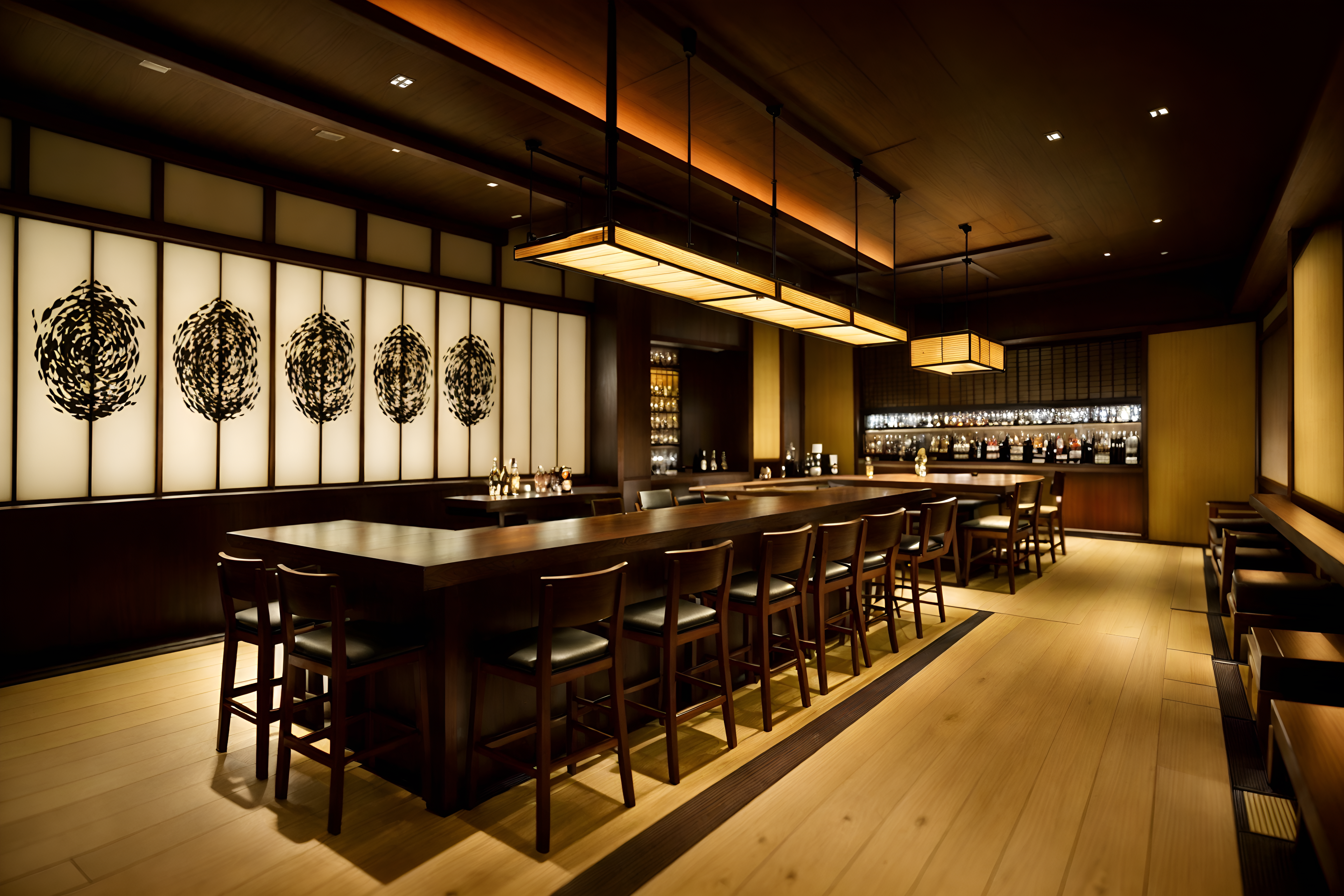 photo from pinterest of japanese design-style interior designed (restaurant interior) with restaurant bar and restaurant dining tables and restaurant chairs and restaurant decor and restaurant bar. . with . . cinematic photo, highly detailed, cinematic lighting, ultra-detailed, ultrarealistic, photorealism, 8k. trending on pinterest. japanese design interior design style. masterpiece, cinematic light, ultrarealistic+, photorealistic+, 8k, raw photo, realistic, sharp focus on eyes, (symmetrical eyes), (intact eyes), hyperrealistic, highest quality, best quality, , highly detailed, masterpiece, best quality, extremely detailed 8k wallpaper, masterpiece, best quality, ultra-detailed, best shadow, detailed background, detailed face, detailed eyes, high contrast, best illumination, detailed face, dulux, caustic, dynamic angle, detailed glow. dramatic lighting. highly detailed, insanely detailed hair, symmetrical, intricate details, professionally retouched, 8k high definition. strong bokeh. award winning photo.