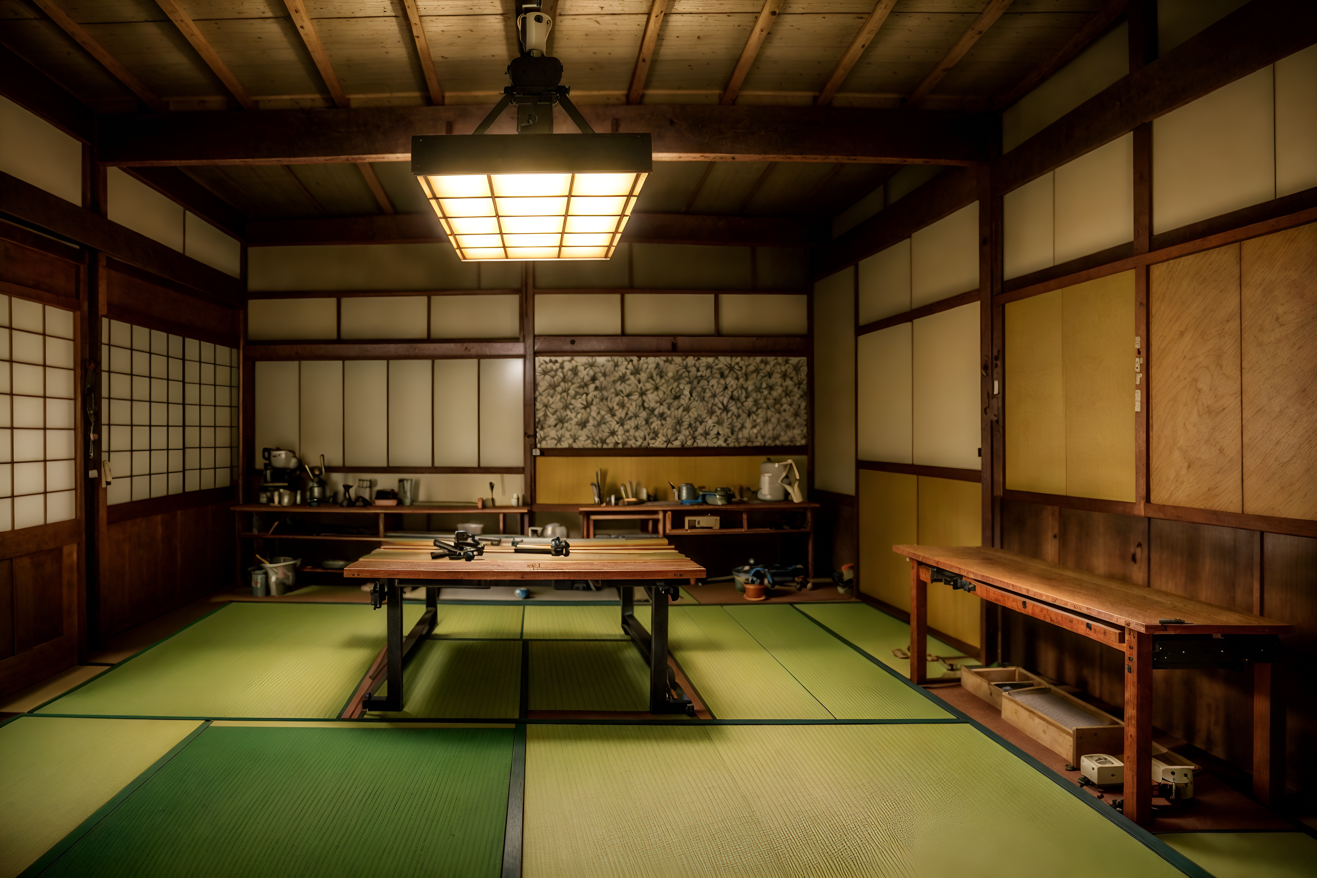 photo from pinterest of japanese design-style interior designed (workshop interior) with wooden workbench and tool wall and messy and wooden workbench. . with . . cinematic photo, highly detailed, cinematic lighting, ultra-detailed, ultrarealistic, photorealism, 8k. trending on pinterest. japanese design interior design style. masterpiece, cinematic light, ultrarealistic+, photorealistic+, 8k, raw photo, realistic, sharp focus on eyes, (symmetrical eyes), (intact eyes), hyperrealistic, highest quality, best quality, , highly detailed, masterpiece, best quality, extremely detailed 8k wallpaper, masterpiece, best quality, ultra-detailed, best shadow, detailed background, detailed face, detailed eyes, high contrast, best illumination, detailed face, dulux, caustic, dynamic angle, detailed glow. dramatic lighting. highly detailed, insanely detailed hair, symmetrical, intricate details, professionally retouched, 8k high definition. strong bokeh. award winning photo.