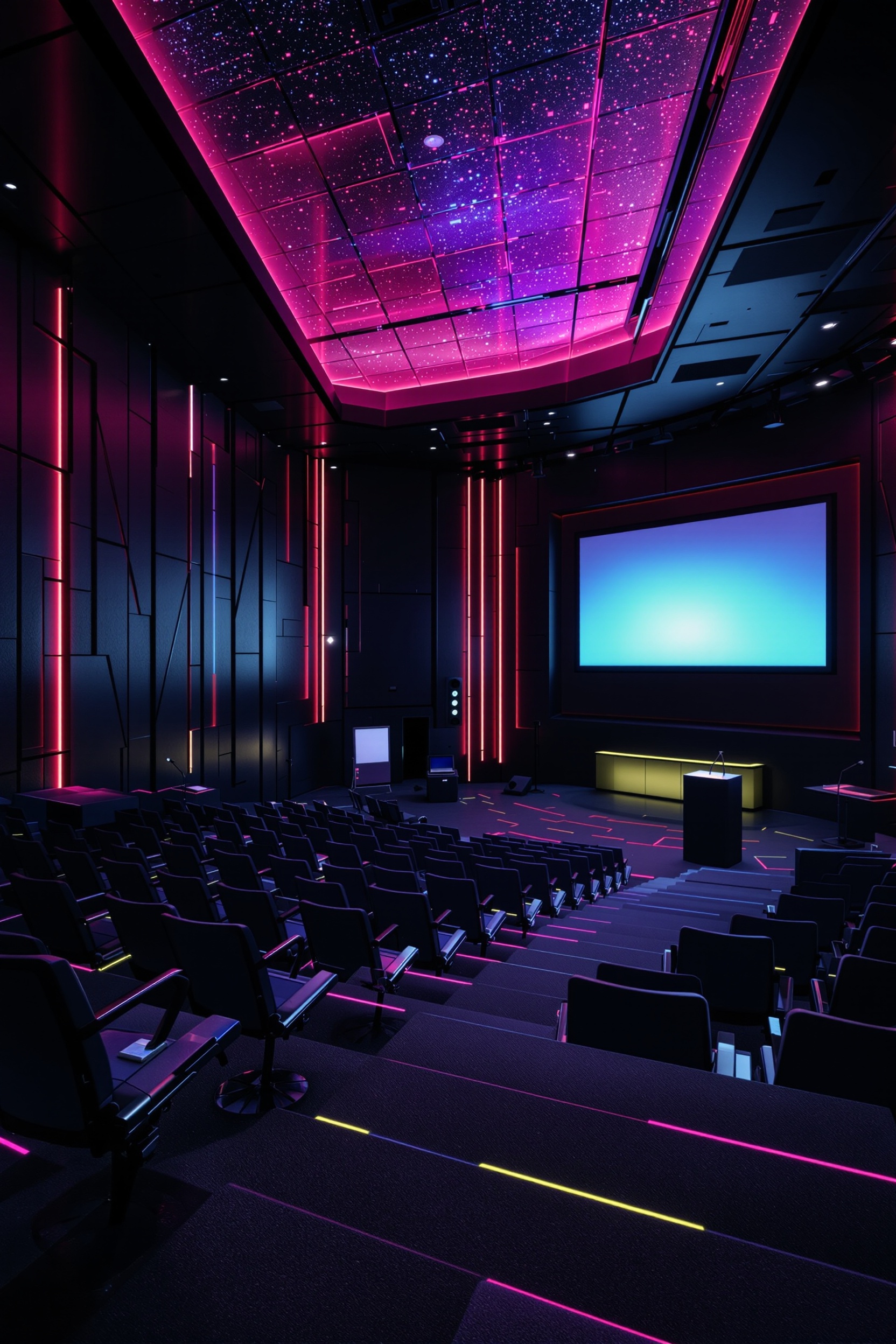 cyberpunk lecture hallsinterior decorate this lecture hall with cyberpunk style. . . with laptop and microphone and speaker system and tiered seating and lecture notes and whiteboard and podium and projection screen. . with synthetic objects and color lights glow and bladerunner lights and dark night and strong geometric walls and minimalist and synthwave and cyberpunk lights. . .interior decorate this lecture hall with cyberpunk style. . . with laptop and microphone and speaker system and tiered seating and lecture notes and whiteboard and podium and projection screen. . with synthetic objects and color lights glow and bladerunner lights and dark night and strong geometric walls and minimalist and synthwave and cyberpunk lights. . .interior decorate this lecture hall with cyberpunk style. . . with laptop and microphone and speaker system and tiered seating and lecture notes and whiteboard and podium and projection screen. . with synthetic objects and color lights glow and bladerunner lights and dark night and strong geometric walls and minimalist and synthwave and cyberpunk lights. . .interior decorate this lecture hall with cyberpunk style. . . with laptop and microphone and speaker system and tiered seating and lecture notes and whiteboard and podium and projection screen. . with synthetic objects and color lights glow and bladerunner lights and dark night and strong geometric walls and minimalist and synthwave and cyberpunk lights. . .