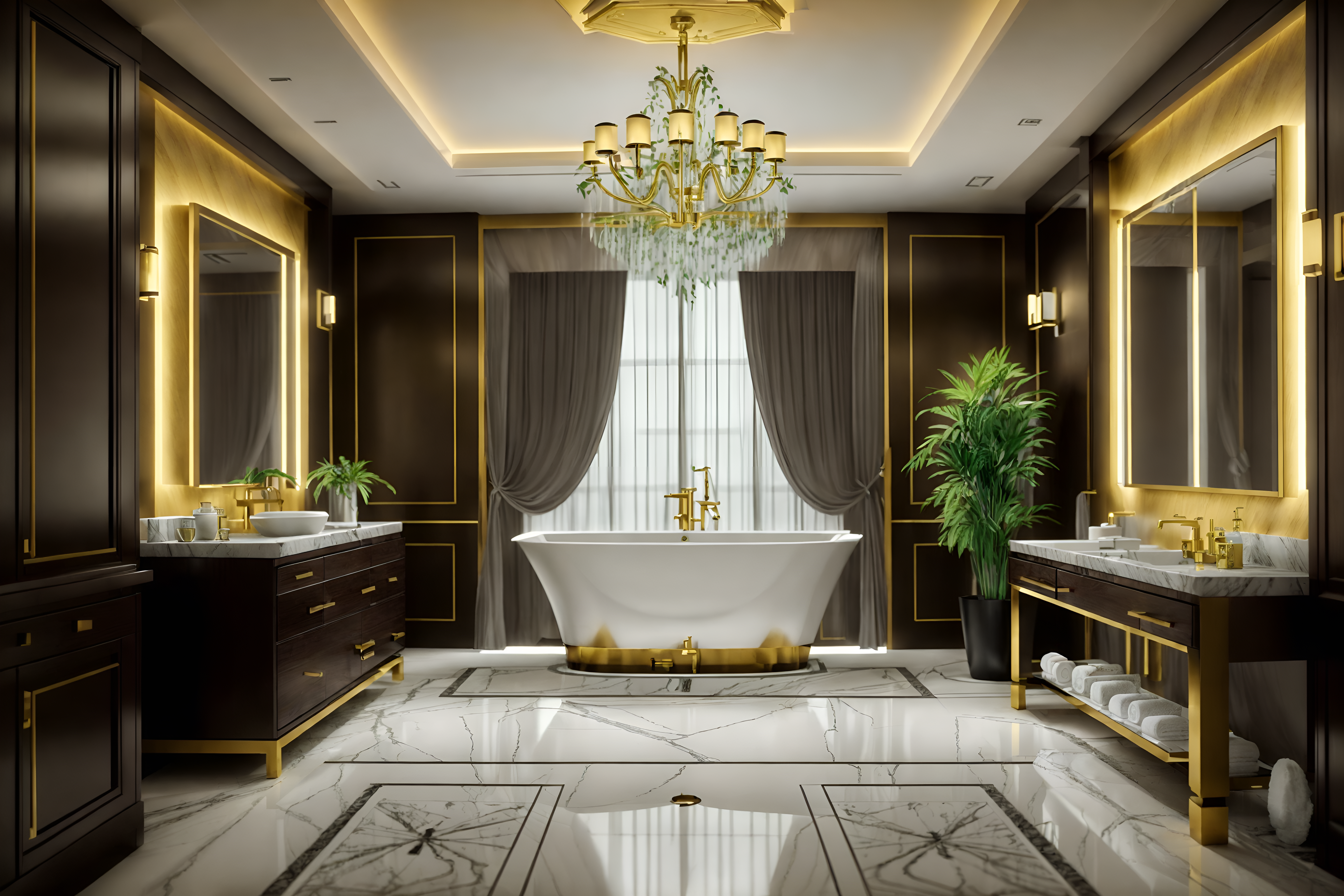 photo from pinterest of luxury-style interior designed (hotel bathroom interior) with plant and toilet seat and shower and bathroom sink with faucet and bathtub and waste basket and bathroom cabinet and mirror cinematic photo, highly detailed, cinematic lighting, ultra-detailed, ultrarealistic, photorealism, 8k. trending on pinterest. luxury interior design style. masterpiece, cinematic light, ultrarealistic+, photorealistic+, 8k, raw photo, realistic, sharp focus on eyes, (symmetrical eyes), (intact eyes), hyperrealistic, highest quality, best quality, , highly detailed, masterpiece, best quality, extremely detailed 8k wallpaper, masterpiece, best quality, ultra-detailed, best shadow, detailed background, detailed face, detailed eyes, high contrast, best illumination, detailed face, dulux, caustic, dynamic angle, detailed glow. dramatic lighting. highly detailed, insanely detailed hair, symmetrical, intricate details, professionally retouched, 8k high definition. strong bokeh. award winning photo.