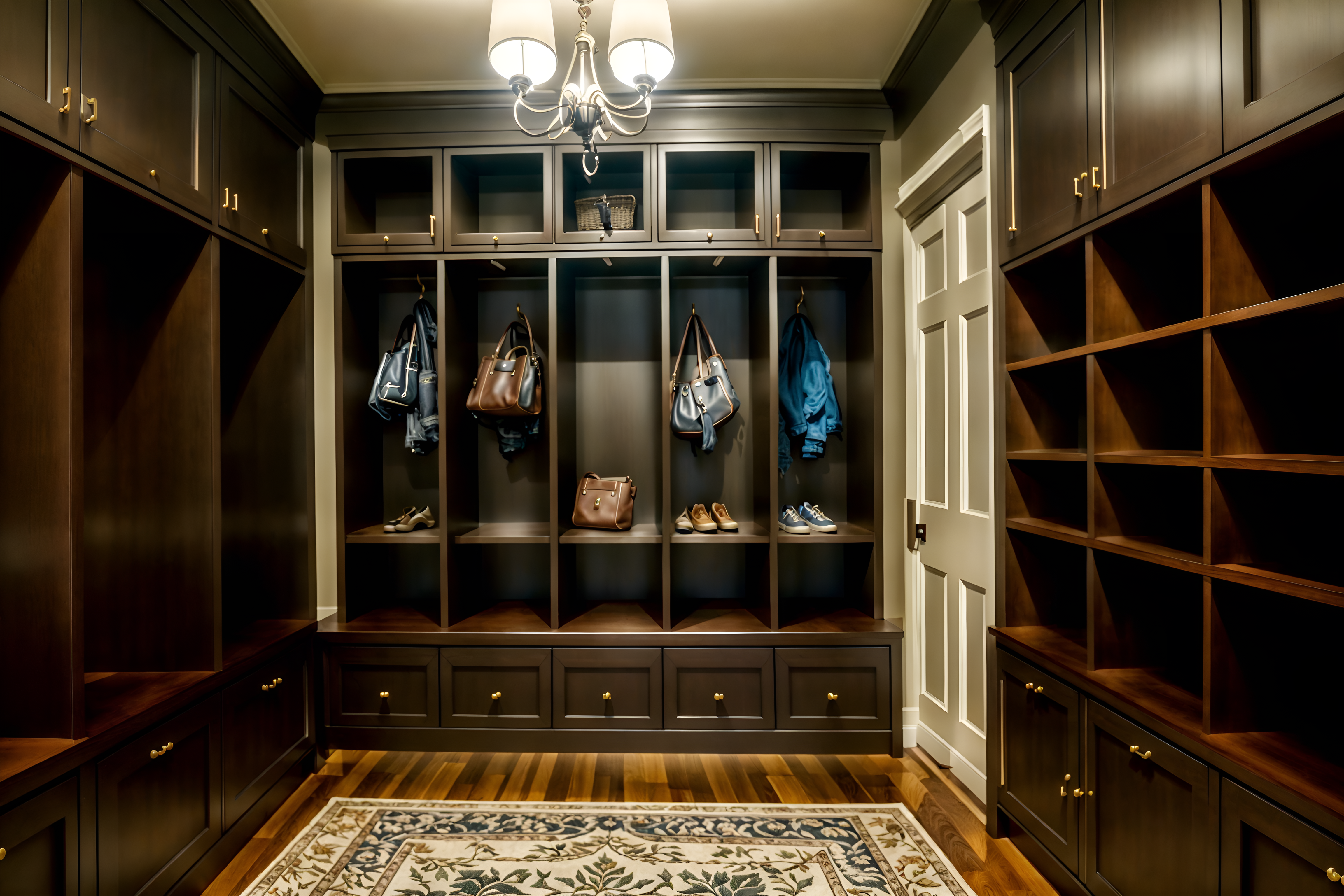 photo from pinterest of luxury-style interior designed (mudroom interior) with high up storage and a bench and shelves for shoes and storage baskets and cubbies and cabinets and storage drawers and wall hooks for coats cinematic photo, highly detailed, cinematic lighting, ultra-detailed, ultrarealistic, photorealism, 8k. trending on pinterest. luxury interior design style. masterpiece, cinematic light, ultrarealistic+, photorealistic+, 8k, raw photo, realistic, sharp focus on eyes, (symmetrical eyes), (intact eyes), hyperrealistic, highest quality, best quality, , highly detailed, masterpiece, best quality, extremely detailed 8k wallpaper, masterpiece, best quality, ultra-detailed, best shadow, detailed background, detailed face, detailed eyes, high contrast, best illumination, detailed face, dulux, caustic, dynamic angle, detailed glow. dramatic lighting. highly detailed, insanely detailed hair, symmetrical, intricate details, professionally retouched, 8k high definition. strong bokeh. award winning photo.