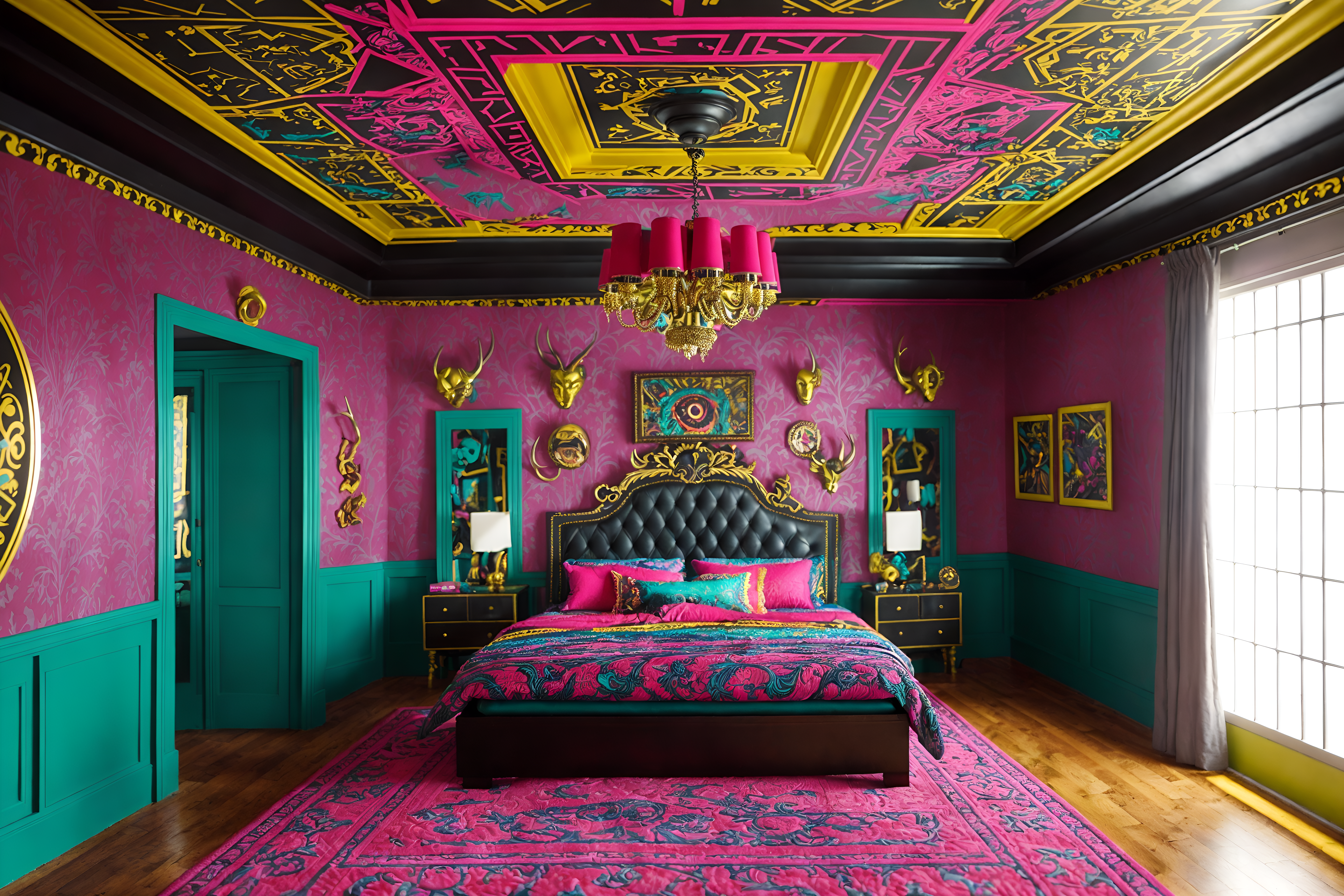 photo from pinterest of maximalist-style interior designed (attic interior) . with playful and over-the-top aesthetic and bold colors and vibrant and more is more philosophy and bold creativity and bold patterns and eye-catching. . cinematic photo, highly detailed, cinematic lighting, ultra-detailed, ultrarealistic, photorealism, 8k. trending on pinterest. maximalist interior design style. masterpiece, cinematic light, ultrarealistic+, photorealistic+, 8k, raw photo, realistic, sharp focus on eyes, (symmetrical eyes), (intact eyes), hyperrealistic, highest quality, best quality, , highly detailed, masterpiece, best quality, extremely detailed 8k wallpaper, masterpiece, best quality, ultra-detailed, best shadow, detailed background, detailed face, detailed eyes, high contrast, best illumination, detailed face, dulux, caustic, dynamic angle, detailed glow. dramatic lighting. highly detailed, insanely detailed hair, symmetrical, intricate details, professionally retouched, 8k high definition. strong bokeh. award winning photo.