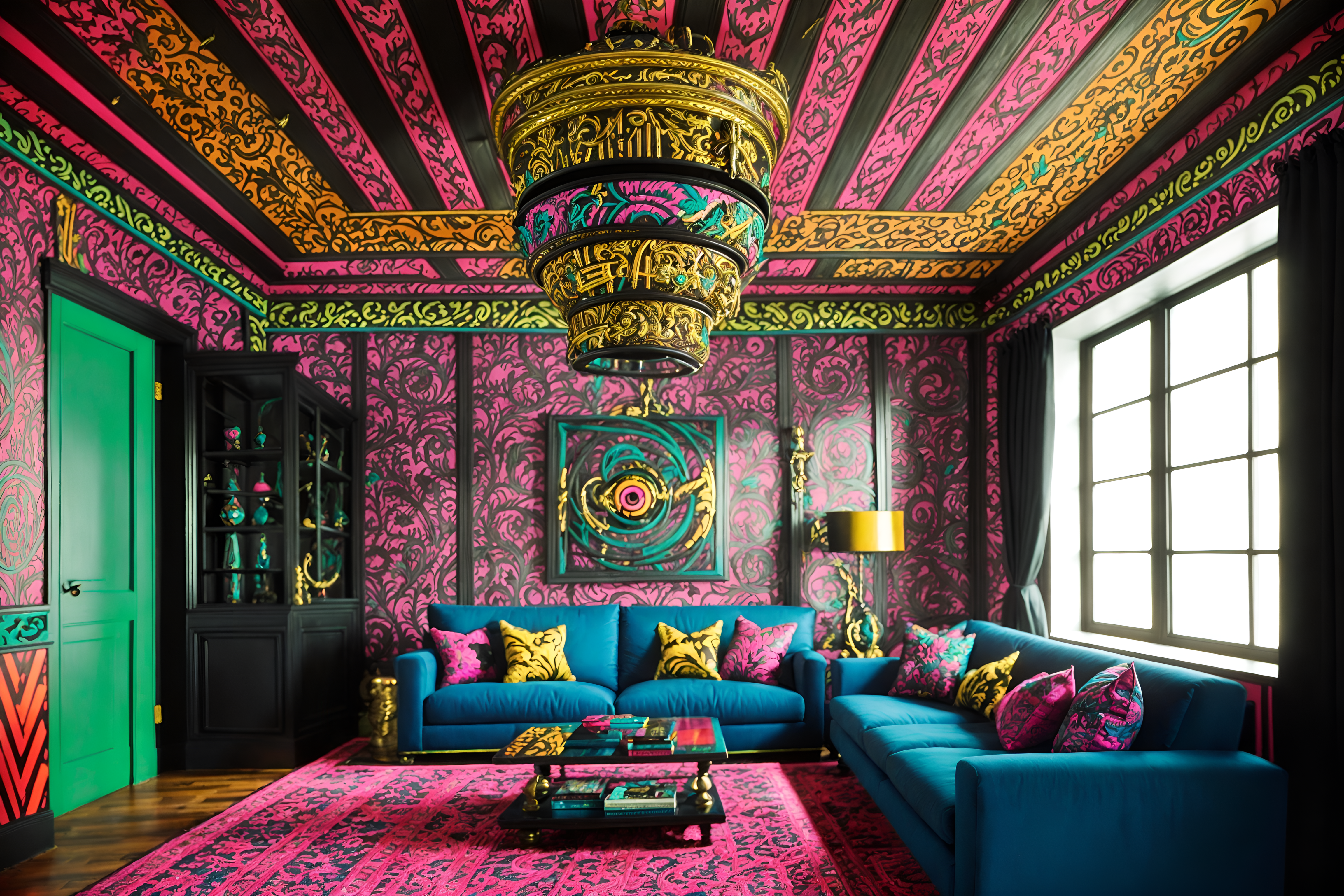 photo from pinterest of maximalist-style interior designed (attic interior) . with vibrant and eye-catching and over-the-top aesthetic and bold design and more is more philosophy and bold colors and bold creativity and bold patterns. . cinematic photo, highly detailed, cinematic lighting, ultra-detailed, ultrarealistic, photorealism, 8k. trending on pinterest. maximalist interior design style. masterpiece, cinematic light, ultrarealistic+, photorealistic+, 8k, raw photo, realistic, sharp focus on eyes, (symmetrical eyes), (intact eyes), hyperrealistic, highest quality, best quality, , highly detailed, masterpiece, best quality, extremely detailed 8k wallpaper, masterpiece, best quality, ultra-detailed, best shadow, detailed background, detailed face, detailed eyes, high contrast, best illumination, detailed face, dulux, caustic, dynamic angle, detailed glow. dramatic lighting. highly detailed, insanely detailed hair, symmetrical, intricate details, professionally retouched, 8k high definition. strong bokeh. award winning photo.