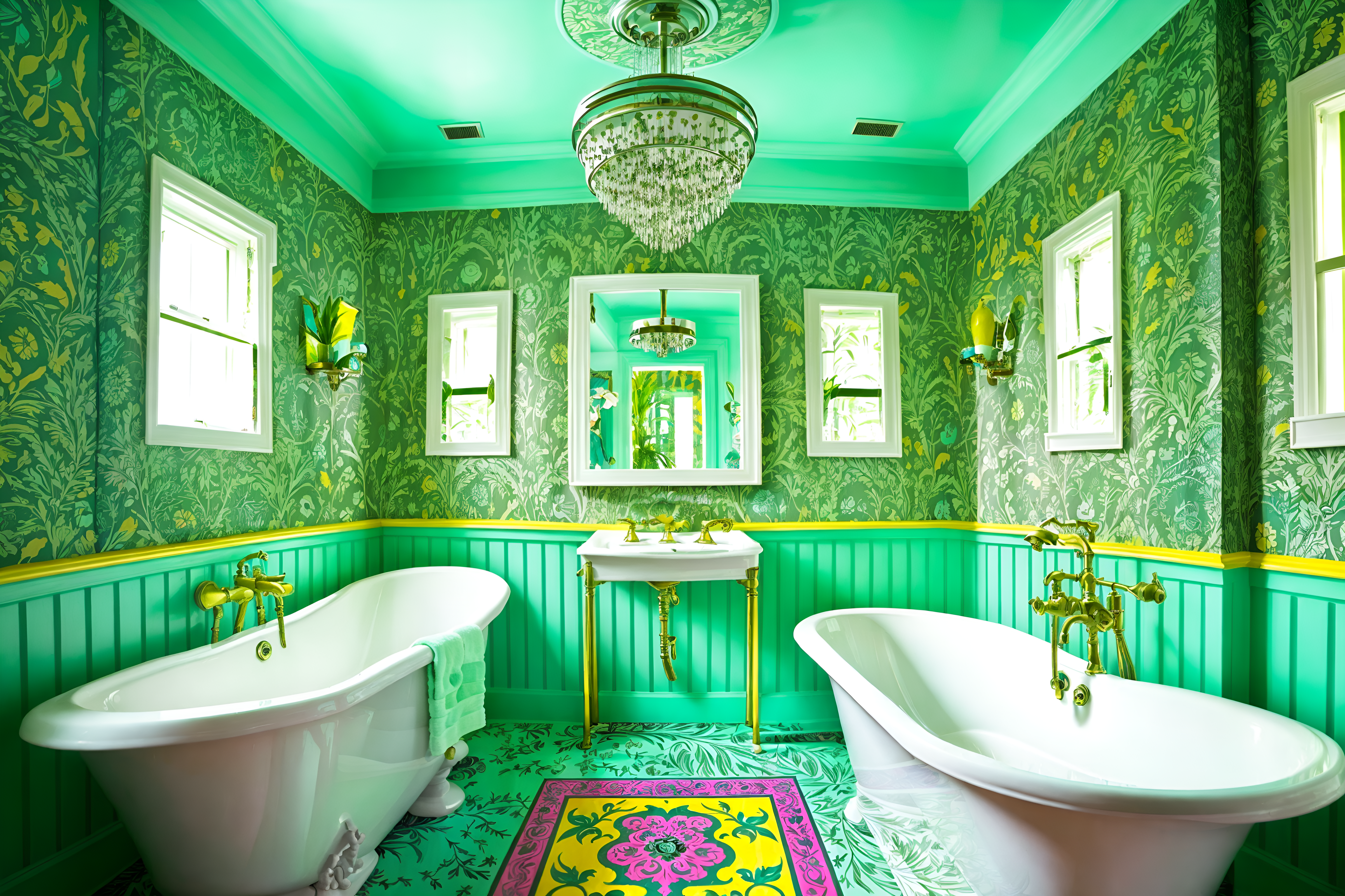 photo from pinterest of maximalist-style interior designed (bathroom interior) with shower and plant and waste basket and bathtub and bath rail and bath towel and bathroom cabinet and toilet seat. . with bold design and playful and bold creativity and bold colors and eye-catching and vibrant and over-the-top aesthetic and more is more philosophy. . cinematic photo, highly detailed, cinematic lighting, ultra-detailed, ultrarealistic, photorealism, 8k. trending on pinterest. maximalist interior design style. masterpiece, cinematic light, ultrarealistic+, photorealistic+, 8k, raw photo, realistic, sharp focus on eyes, (symmetrical eyes), (intact eyes), hyperrealistic, highest quality, best quality, , highly detailed, masterpiece, best quality, extremely detailed 8k wallpaper, masterpiece, best quality, ultra-detailed, best shadow, detailed background, detailed face, detailed eyes, high contrast, best illumination, detailed face, dulux, caustic, dynamic angle, detailed glow. dramatic lighting. highly detailed, insanely detailed hair, symmetrical, intricate details, professionally retouched, 8k high definition. strong bokeh. award winning photo.