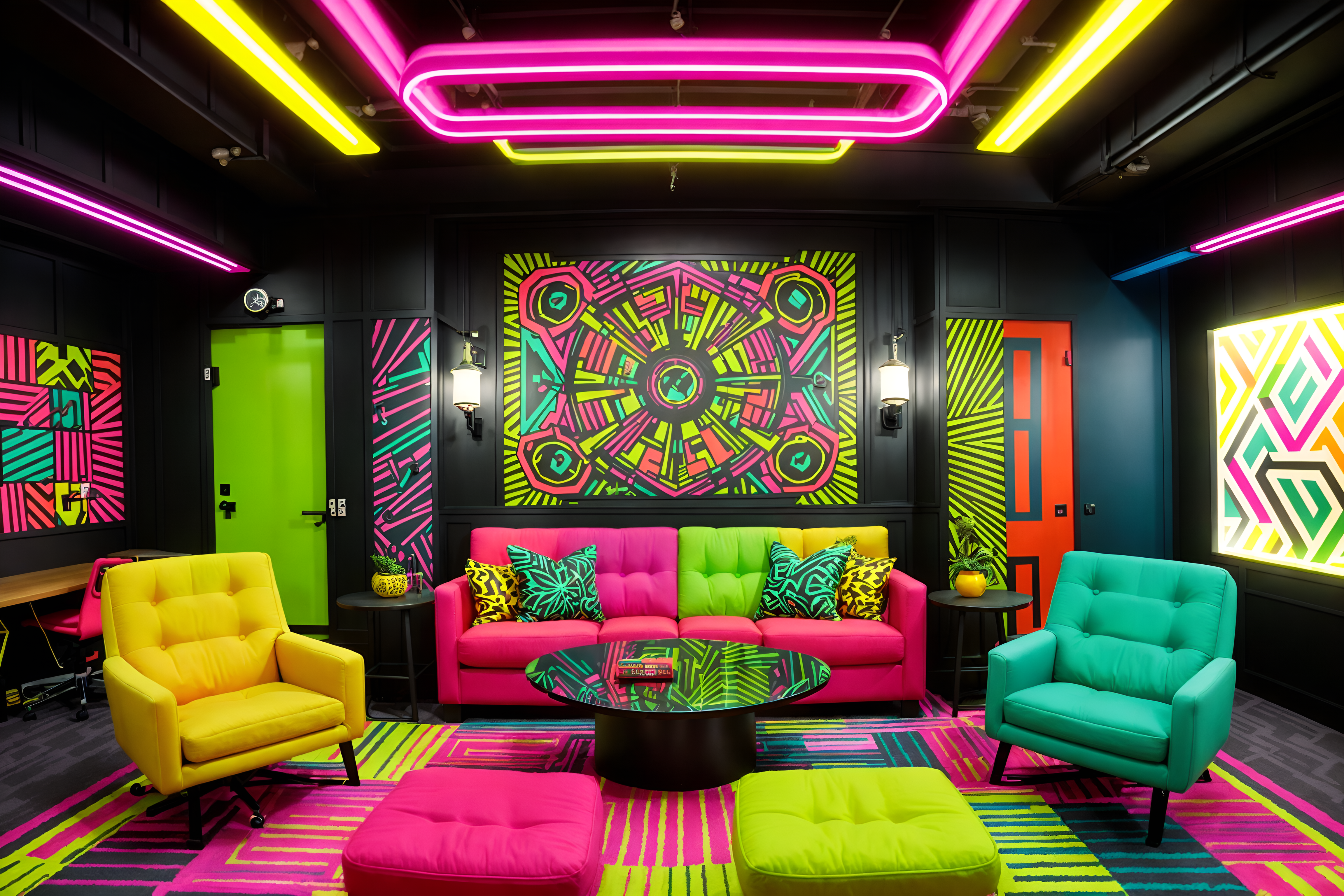 photo from pinterest of maximalist-style interior designed (coworking space interior) with office desks and lounge chairs and office chairs and seating area with sofa and office desks. . with bold creativity and bold patterns and more is more philosophy and bold colors and vibrant and bold design and over-the-top aesthetic and playful. . cinematic photo, highly detailed, cinematic lighting, ultra-detailed, ultrarealistic, photorealism, 8k. trending on pinterest. maximalist interior design style. masterpiece, cinematic light, ultrarealistic+, photorealistic+, 8k, raw photo, realistic, sharp focus on eyes, (symmetrical eyes), (intact eyes), hyperrealistic, highest quality, best quality, , highly detailed, masterpiece, best quality, extremely detailed 8k wallpaper, masterpiece, best quality, ultra-detailed, best shadow, detailed background, detailed face, detailed eyes, high contrast, best illumination, detailed face, dulux, caustic, dynamic angle, detailed glow. dramatic lighting. highly detailed, insanely detailed hair, symmetrical, intricate details, professionally retouched, 8k high definition. strong bokeh. award winning photo.