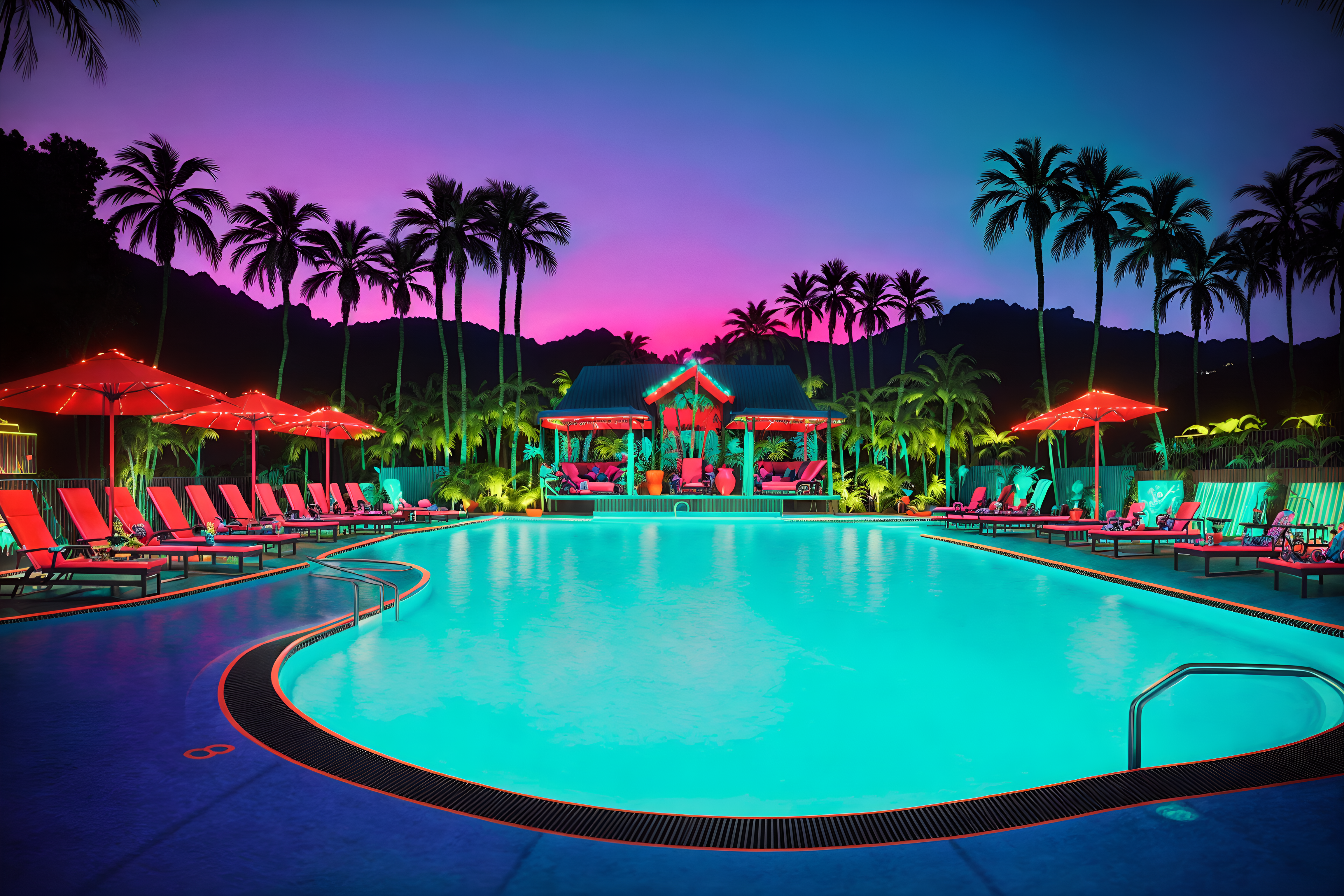 photo from pinterest of maximalist-style designed (outdoor pool area ) with pool and pool lounge chairs and pool lights and pool. . with vibrant and over-the-top aesthetic and more is more philosophy and bold colors and bold creativity and bold patterns and playful and bold design. . cinematic photo, highly detailed, cinematic lighting, ultra-detailed, ultrarealistic, photorealism, 8k. trending on pinterest. maximalist design style. masterpiece, cinematic light, ultrarealistic+, photorealistic+, 8k, raw photo, realistic, sharp focus on eyes, (symmetrical eyes), (intact eyes), hyperrealistic, highest quality, best quality, , highly detailed, masterpiece, best quality, extremely detailed 8k wallpaper, masterpiece, best quality, ultra-detailed, best shadow, detailed background, detailed face, detailed eyes, high contrast, best illumination, detailed face, dulux, caustic, dynamic angle, detailed glow. dramatic lighting. highly detailed, insanely detailed hair, symmetrical, intricate details, professionally retouched, 8k high definition. strong bokeh. award winning photo.