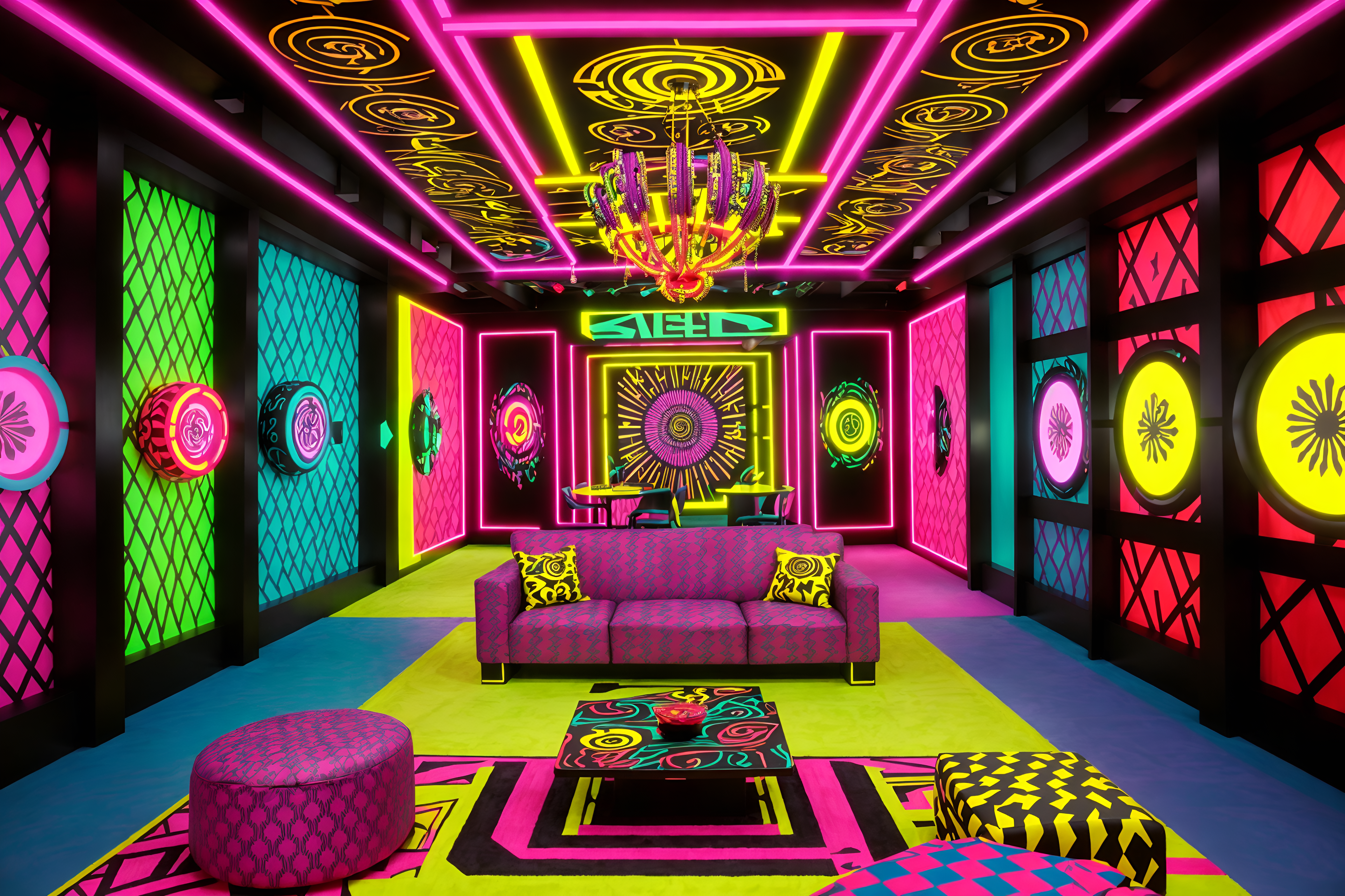 photo from pinterest of maximalist-style interior designed (exhibition space interior) . with bold design and bold colors and over-the-top aesthetic and eye-catching and vibrant and bold patterns and playful and bold creativity. . cinematic photo, highly detailed, cinematic lighting, ultra-detailed, ultrarealistic, photorealism, 8k. trending on pinterest. maximalist interior design style. masterpiece, cinematic light, ultrarealistic+, photorealistic+, 8k, raw photo, realistic, sharp focus on eyes, (symmetrical eyes), (intact eyes), hyperrealistic, highest quality, best quality, , highly detailed, masterpiece, best quality, extremely detailed 8k wallpaper, masterpiece, best quality, ultra-detailed, best shadow, detailed background, detailed face, detailed eyes, high contrast, best illumination, detailed face, dulux, caustic, dynamic angle, detailed glow. dramatic lighting. highly detailed, insanely detailed hair, symmetrical, intricate details, professionally retouched, 8k high definition. strong bokeh. award winning photo.