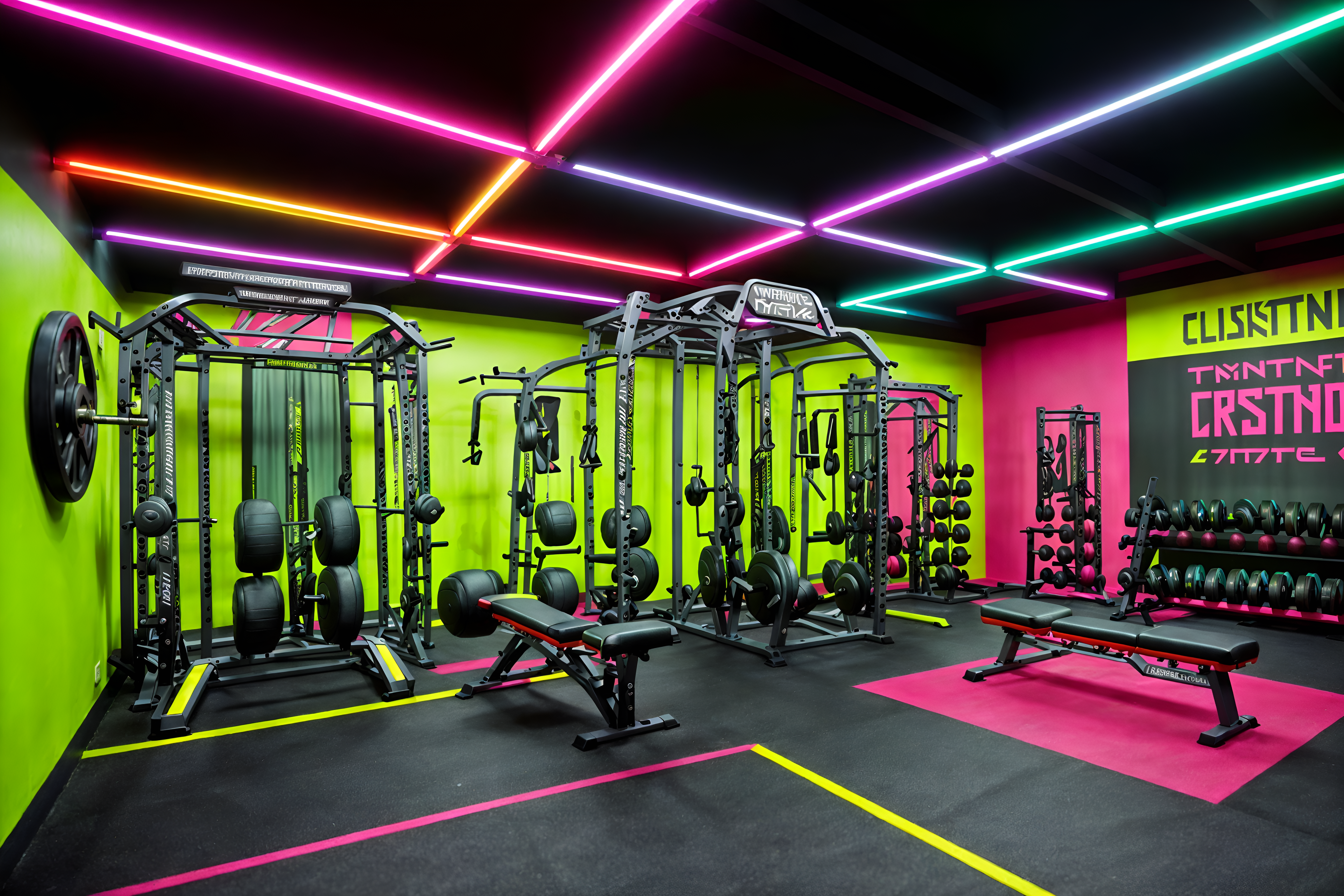 photo from pinterest of maximalist-style interior designed (fitness gym interior) with crosstrainer and exercise bicycle and dumbbell stand and squat rack and bench press and crosstrainer. . with vibrant and bold colors and more is more philosophy and eye-catching and bold design and over-the-top aesthetic and playful and bold creativity. . cinematic photo, highly detailed, cinematic lighting, ultra-detailed, ultrarealistic, photorealism, 8k. trending on pinterest. maximalist interior design style. masterpiece, cinematic light, ultrarealistic+, photorealistic+, 8k, raw photo, realistic, sharp focus on eyes, (symmetrical eyes), (intact eyes), hyperrealistic, highest quality, best quality, , highly detailed, masterpiece, best quality, extremely detailed 8k wallpaper, masterpiece, best quality, ultra-detailed, best shadow, detailed background, detailed face, detailed eyes, high contrast, best illumination, detailed face, dulux, caustic, dynamic angle, detailed glow. dramatic lighting. highly detailed, insanely detailed hair, symmetrical, intricate details, professionally retouched, 8k high definition. strong bokeh. award winning photo.