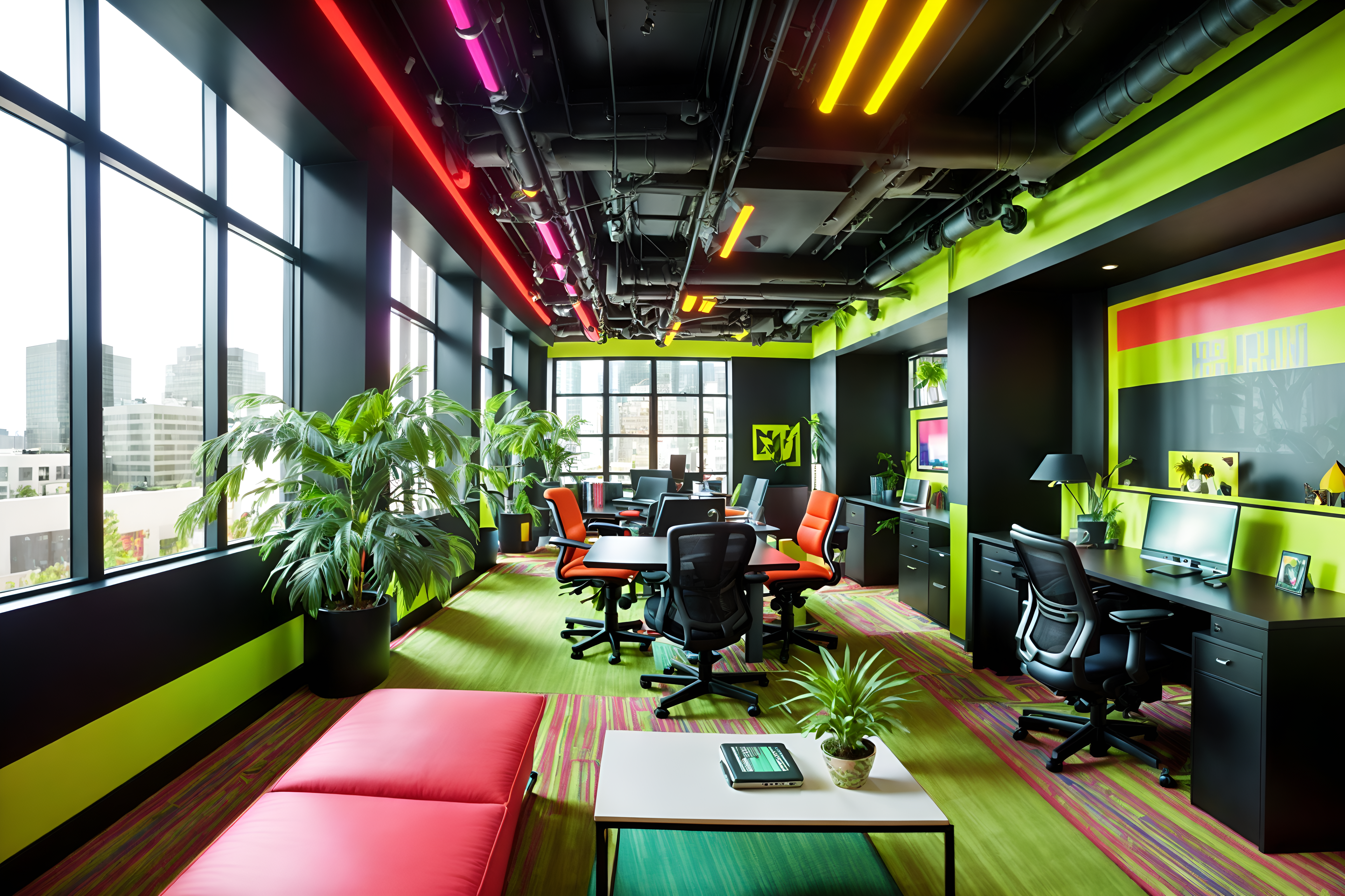 photo from pinterest of maximalist-style interior designed (office interior) with windows and desk lamps and computer desks and office desks and office chairs and lounge chairs and plants and cabinets. . with bold creativity and over-the-top aesthetic and more is more philosophy and bold design and playful and bold colors and vibrant and eye-catching. . cinematic photo, highly detailed, cinematic lighting, ultra-detailed, ultrarealistic, photorealism, 8k. trending on pinterest. maximalist interior design style. masterpiece, cinematic light, ultrarealistic+, photorealistic+, 8k, raw photo, realistic, sharp focus on eyes, (symmetrical eyes), (intact eyes), hyperrealistic, highest quality, best quality, , highly detailed, masterpiece, best quality, extremely detailed 8k wallpaper, masterpiece, best quality, ultra-detailed, best shadow, detailed background, detailed face, detailed eyes, high contrast, best illumination, detailed face, dulux, caustic, dynamic angle, detailed glow. dramatic lighting. highly detailed, insanely detailed hair, symmetrical, intricate details, professionally retouched, 8k high definition. strong bokeh. award winning photo.