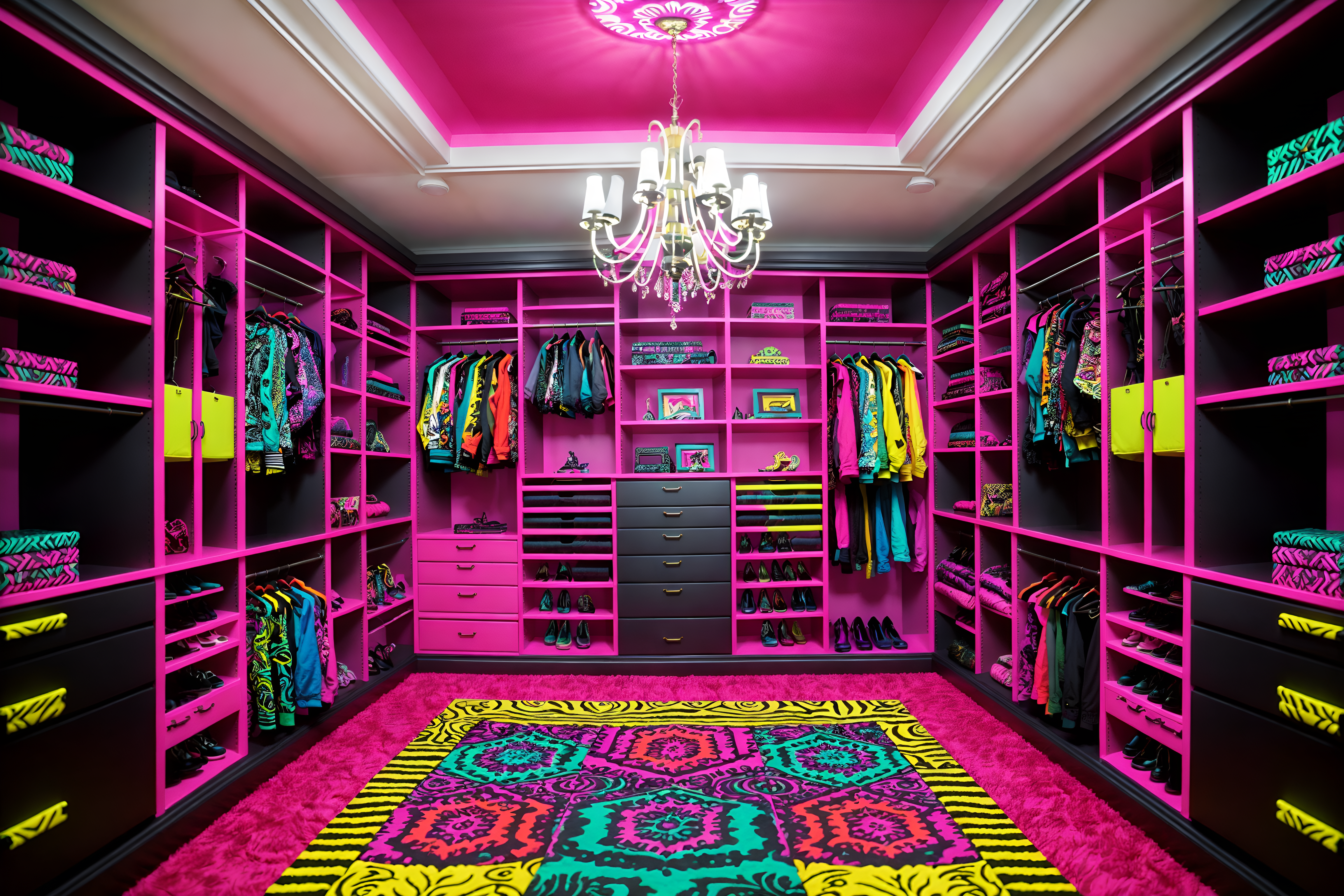photo from pinterest of maximalist-style interior designed (walk in closet interior) . with bold patterns and bold colors and bold creativity and eye-catching and playful and vibrant and more is more philosophy and bold design. . cinematic photo, highly detailed, cinematic lighting, ultra-detailed, ultrarealistic, photorealism, 8k. trending on pinterest. maximalist interior design style. masterpiece, cinematic light, ultrarealistic+, photorealistic+, 8k, raw photo, realistic, sharp focus on eyes, (symmetrical eyes), (intact eyes), hyperrealistic, highest quality, best quality, , highly detailed, masterpiece, best quality, extremely detailed 8k wallpaper, masterpiece, best quality, ultra-detailed, best shadow, detailed background, detailed face, detailed eyes, high contrast, best illumination, detailed face, dulux, caustic, dynamic angle, detailed glow. dramatic lighting. highly detailed, insanely detailed hair, symmetrical, intricate details, professionally retouched, 8k high definition. strong bokeh. award winning photo.
