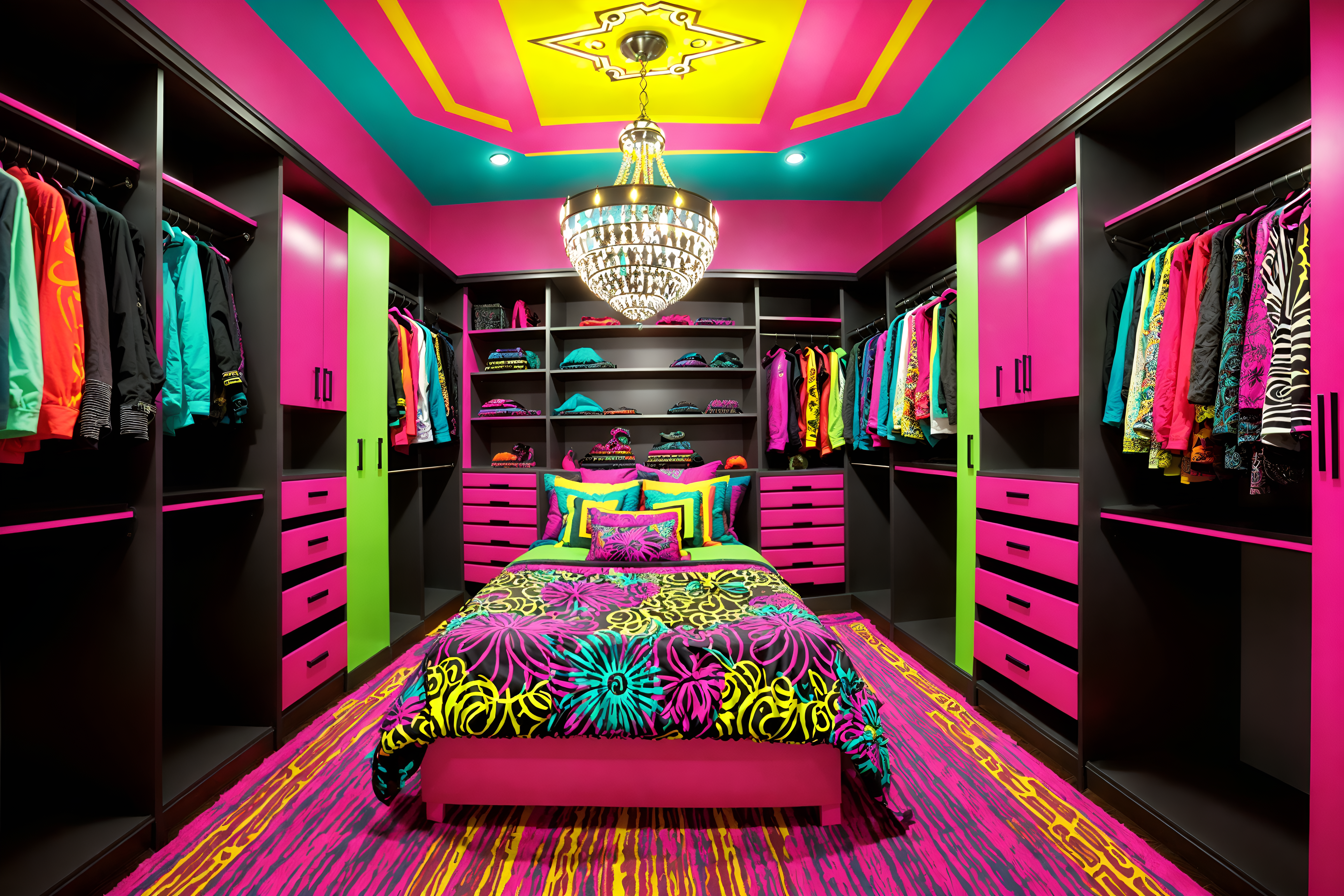photo from pinterest of maximalist-style interior designed (walk in closet interior) . with bold patterns and bold colors and bold creativity and eye-catching and playful and vibrant and more is more philosophy and bold design. . cinematic photo, highly detailed, cinematic lighting, ultra-detailed, ultrarealistic, photorealism, 8k. trending on pinterest. maximalist interior design style. masterpiece, cinematic light, ultrarealistic+, photorealistic+, 8k, raw photo, realistic, sharp focus on eyes, (symmetrical eyes), (intact eyes), hyperrealistic, highest quality, best quality, , highly detailed, masterpiece, best quality, extremely detailed 8k wallpaper, masterpiece, best quality, ultra-detailed, best shadow, detailed background, detailed face, detailed eyes, high contrast, best illumination, detailed face, dulux, caustic, dynamic angle, detailed glow. dramatic lighting. highly detailed, insanely detailed hair, symmetrical, intricate details, professionally retouched, 8k high definition. strong bokeh. award winning photo.