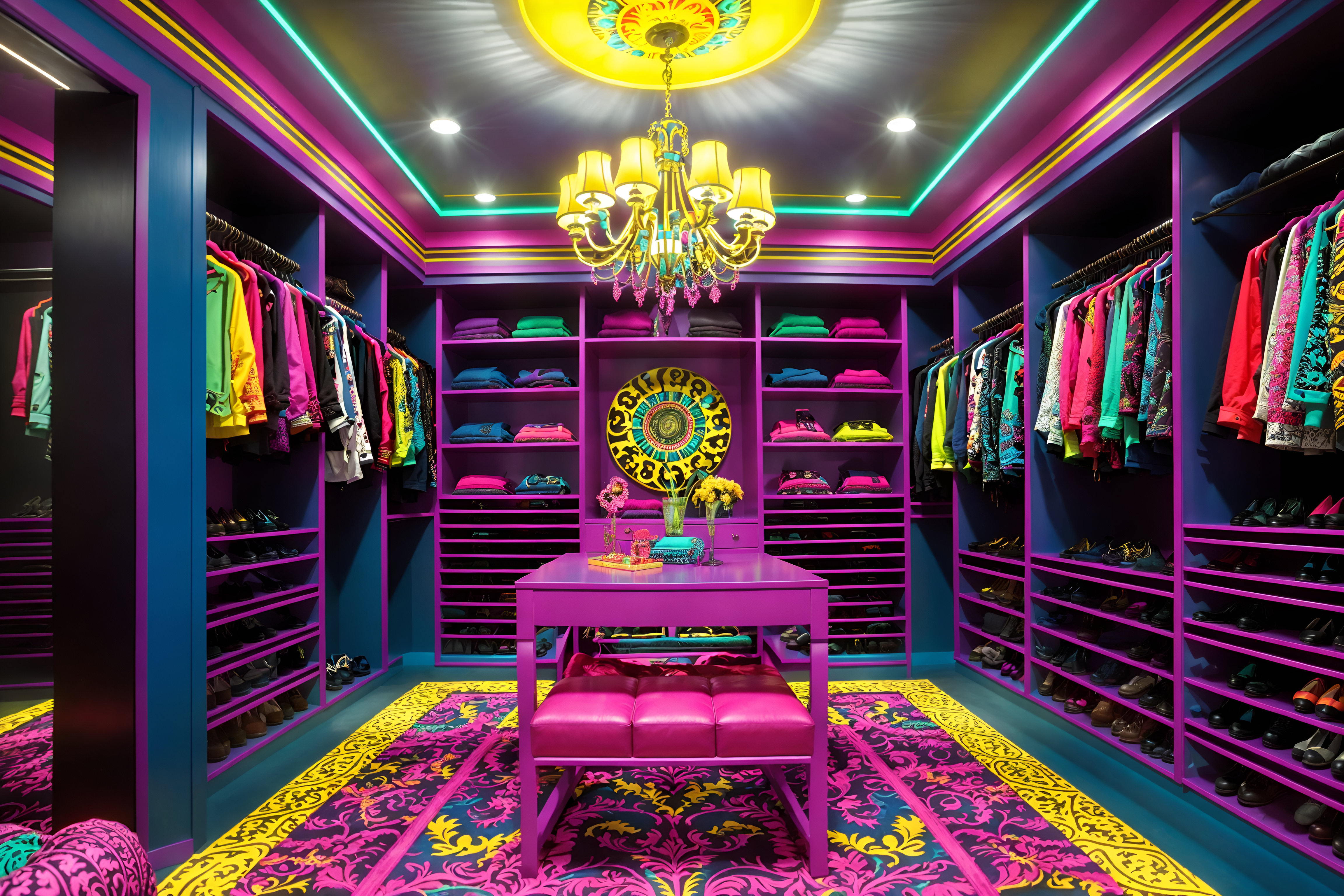 photo from pinterest of maximalist-style interior designed (walk in closet interior) . with over-the-top aesthetic and bold colors and playful and bold patterns and bold creativity and more is more philosophy and vibrant and bold design. . cinematic photo, highly detailed, cinematic lighting, ultra-detailed, ultrarealistic, photorealism, 8k. trending on pinterest. maximalist interior design style. masterpiece, cinematic light, ultrarealistic+, photorealistic+, 8k, raw photo, realistic, sharp focus on eyes, (symmetrical eyes), (intact eyes), hyperrealistic, highest quality, best quality, , highly detailed, masterpiece, best quality, extremely detailed 8k wallpaper, masterpiece, best quality, ultra-detailed, best shadow, detailed background, detailed face, detailed eyes, high contrast, best illumination, detailed face, dulux, caustic, dynamic angle, detailed glow. dramatic lighting. highly detailed, insanely detailed hair, symmetrical, intricate details, professionally retouched, 8k high definition. strong bokeh. award winning photo.