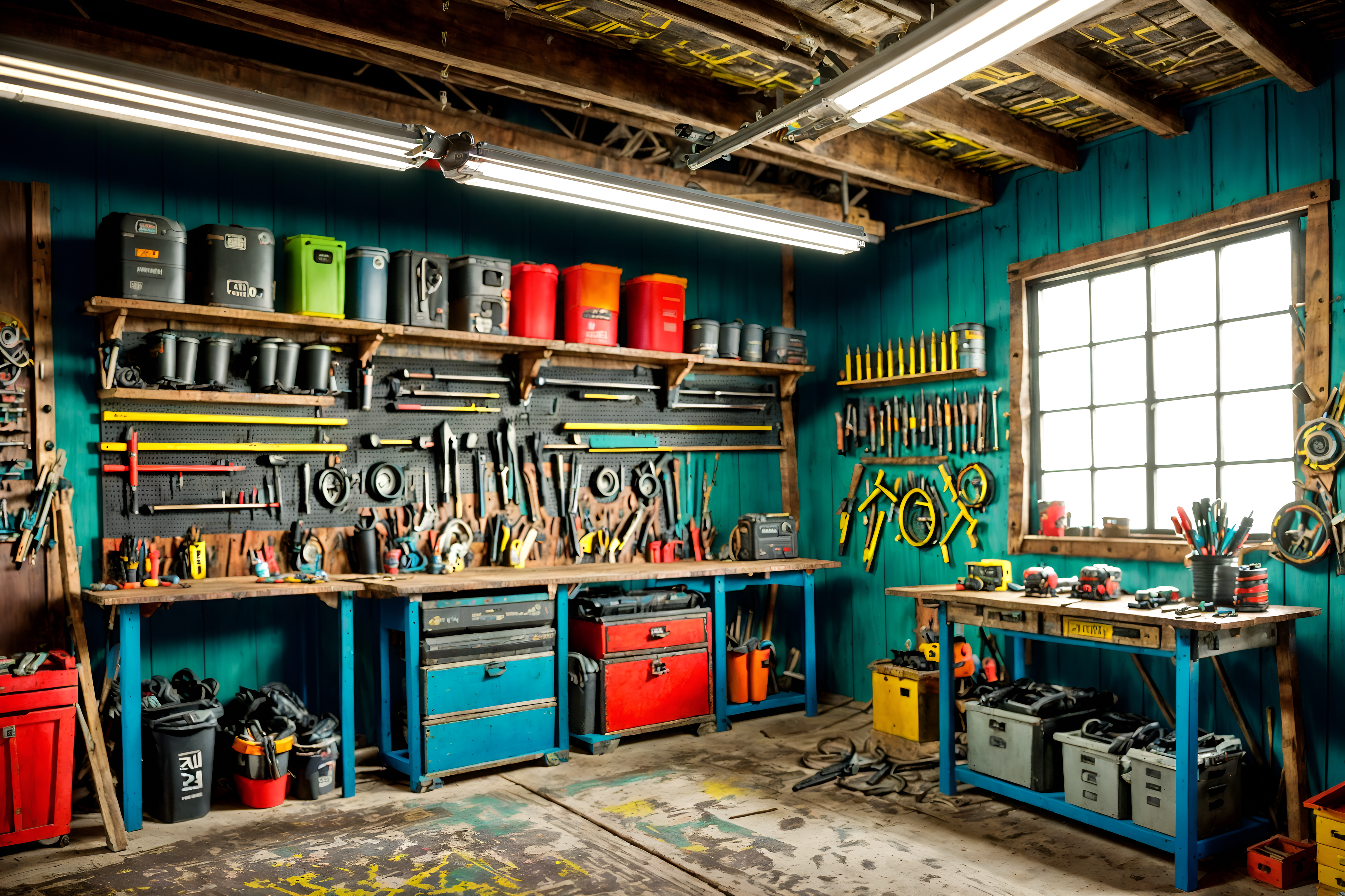 photo from pinterest of maximalist-style interior designed (workshop interior) with tool wall and wooden workbench and messy and tool wall. . with bold creativity and bold colors and playful and eye-catching and bold patterns and bold design and more is more philosophy and vibrant. . cinematic photo, highly detailed, cinematic lighting, ultra-detailed, ultrarealistic, photorealism, 8k. trending on pinterest. maximalist interior design style. masterpiece, cinematic light, ultrarealistic+, photorealistic+, 8k, raw photo, realistic, sharp focus on eyes, (symmetrical eyes), (intact eyes), hyperrealistic, highest quality, best quality, , highly detailed, masterpiece, best quality, extremely detailed 8k wallpaper, masterpiece, best quality, ultra-detailed, best shadow, detailed background, detailed face, detailed eyes, high contrast, best illumination, detailed face, dulux, caustic, dynamic angle, detailed glow. dramatic lighting. highly detailed, insanely detailed hair, symmetrical, intricate details, professionally retouched, 8k high definition. strong bokeh. award winning photo.