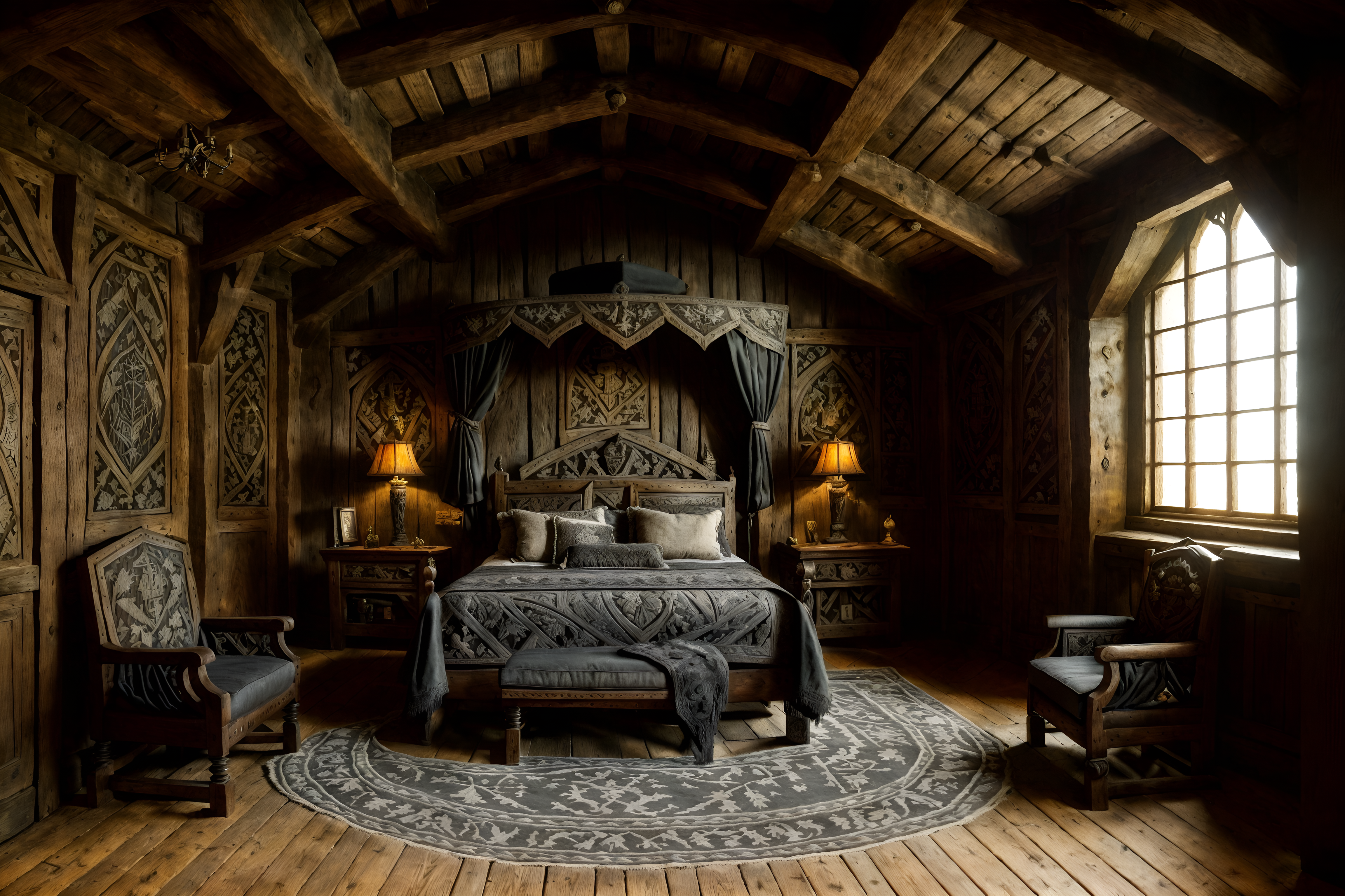 photo from pinterest of medieval-style interior designed (attic interior) . with gothic appearance and stone walls and carved wooden chairs and castle interior and medieval shields on the wall and castle interior and intricate wooden inlay designs and carvings and upholstery on chairs and sofas. . cinematic photo, highly detailed, cinematic lighting, ultra-detailed, ultrarealistic, photorealism, 8k. trending on pinterest. medieval interior design style. masterpiece, cinematic light, ultrarealistic+, photorealistic+, 8k, raw photo, realistic, sharp focus on eyes, (symmetrical eyes), (intact eyes), hyperrealistic, highest quality, best quality, , highly detailed, masterpiece, best quality, extremely detailed 8k wallpaper, masterpiece, best quality, ultra-detailed, best shadow, detailed background, detailed face, detailed eyes, high contrast, best illumination, detailed face, dulux, caustic, dynamic angle, detailed glow. dramatic lighting. highly detailed, insanely detailed hair, symmetrical, intricate details, professionally retouched, 8k high definition. strong bokeh. award winning photo.
