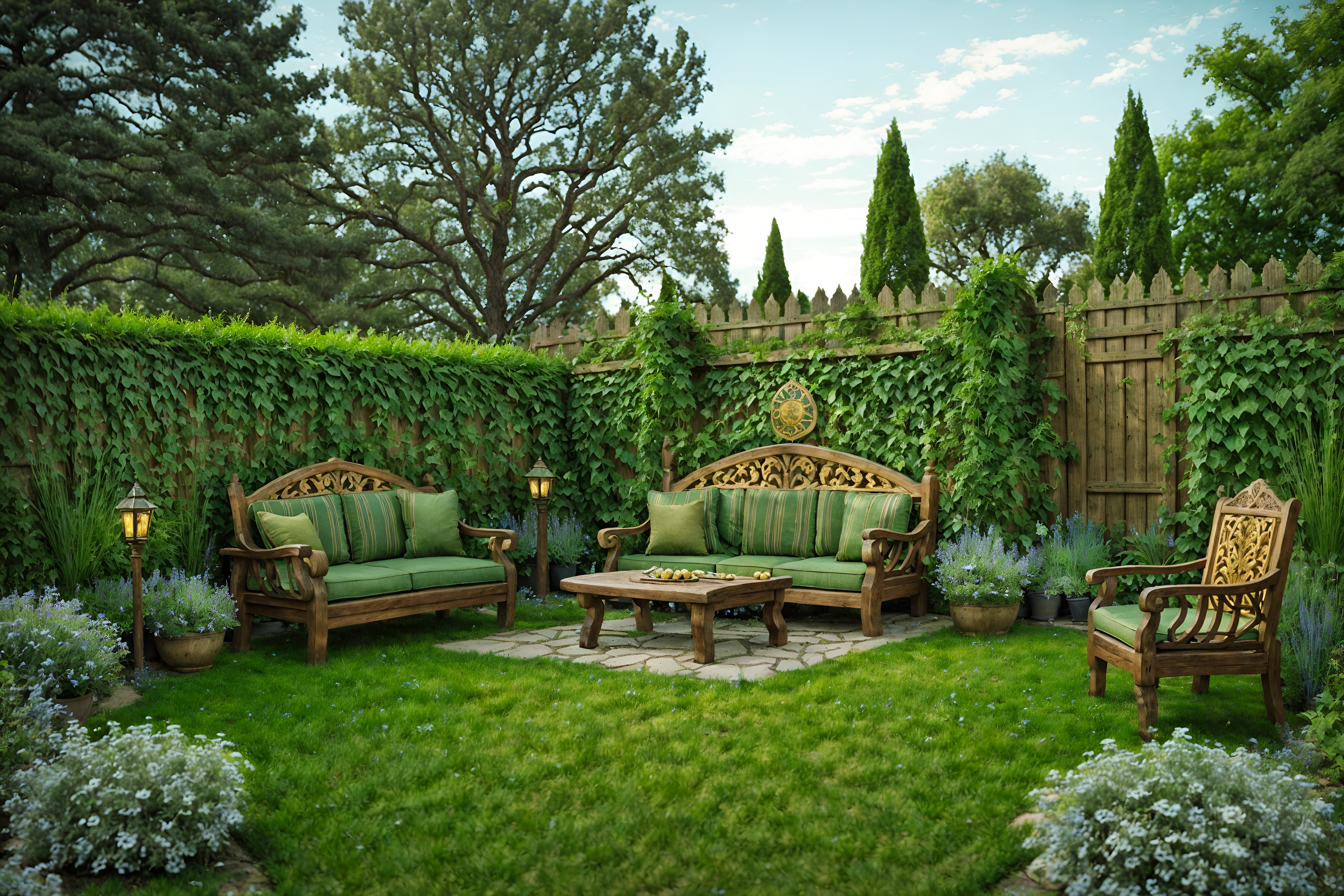photo from pinterest of medieval-style designed (outdoor garden ) with garden tree and grass and garden plants and garden tree. . with upholstery on chairs and sofas and deep colors like red, gold, or blue and carved wooden chairs and timber walls and castle and carved wooden benches and castle and medieval shields on the wall. . cinematic photo, highly detailed, cinematic lighting, ultra-detailed, ultrarealistic, photorealism, 8k. trending on pinterest. medieval design style. masterpiece, cinematic light, ultrarealistic+, photorealistic+, 8k, raw photo, realistic, sharp focus on eyes, (symmetrical eyes), (intact eyes), hyperrealistic, highest quality, best quality, , highly detailed, masterpiece, best quality, extremely detailed 8k wallpaper, masterpiece, best quality, ultra-detailed, best shadow, detailed background, detailed face, detailed eyes, high contrast, best illumination, detailed face, dulux, caustic, dynamic angle, detailed glow. dramatic lighting. highly detailed, insanely detailed hair, symmetrical, intricate details, professionally retouched, 8k high definition. strong bokeh. award winning photo.