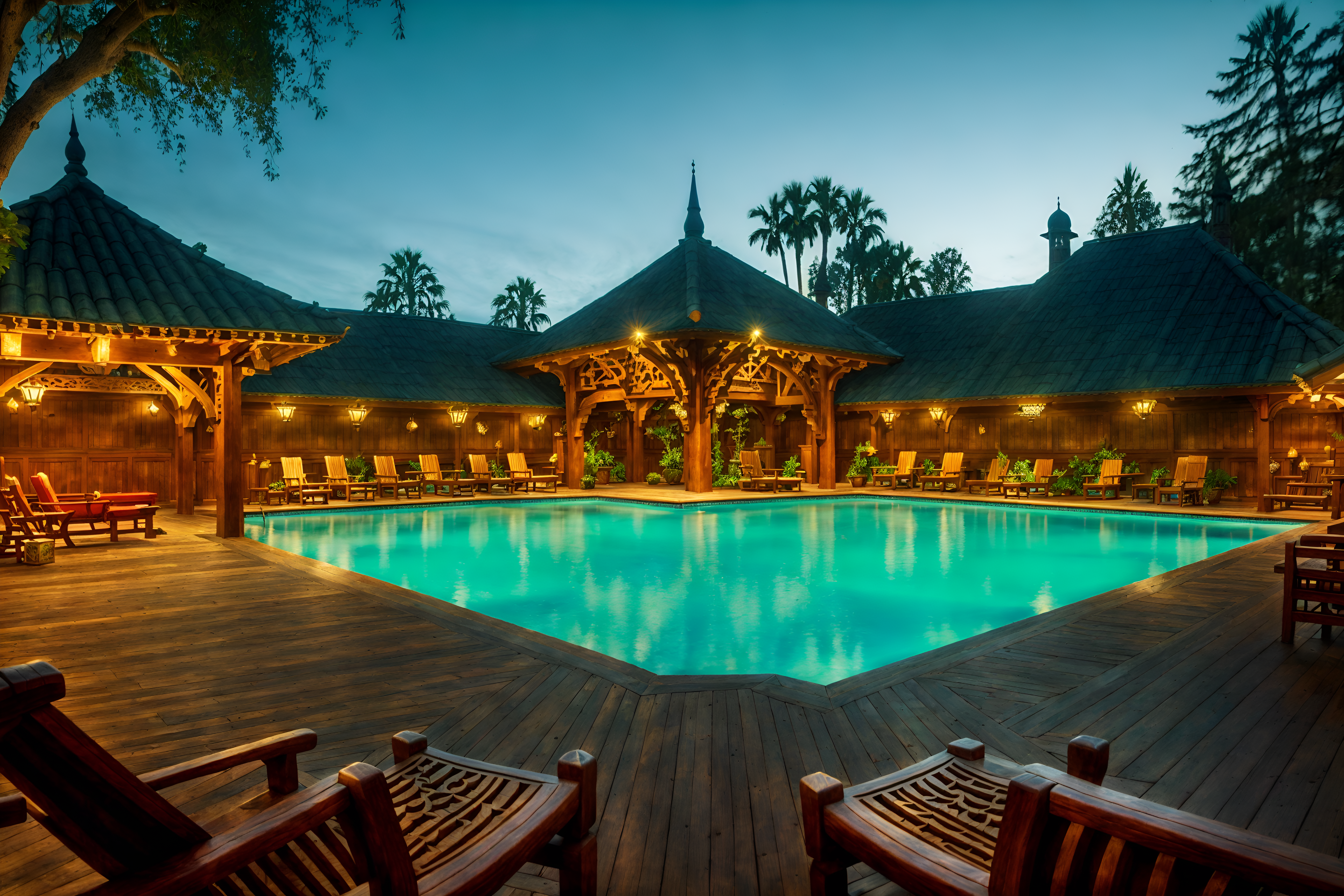 photo from pinterest of medieval-style designed (outdoor pool area ) with pool lounge chairs and pool lights and pool and pool lounge chairs. . with carved wooden benches and intricate wooden inlay designs and carvings and castle and deep colors like red, gold, or blue and timber beams and carved wooden tables and castle and carved wooden chairs. . cinematic photo, highly detailed, cinematic lighting, ultra-detailed, ultrarealistic, photorealism, 8k. trending on pinterest. medieval design style. masterpiece, cinematic light, ultrarealistic+, photorealistic+, 8k, raw photo, realistic, sharp focus on eyes, (symmetrical eyes), (intact eyes), hyperrealistic, highest quality, best quality, , highly detailed, masterpiece, best quality, extremely detailed 8k wallpaper, masterpiece, best quality, ultra-detailed, best shadow, detailed background, detailed face, detailed eyes, high contrast, best illumination, detailed face, dulux, caustic, dynamic angle, detailed glow. dramatic lighting. highly detailed, insanely detailed hair, symmetrical, intricate details, professionally retouched, 8k high definition. strong bokeh. award winning photo.