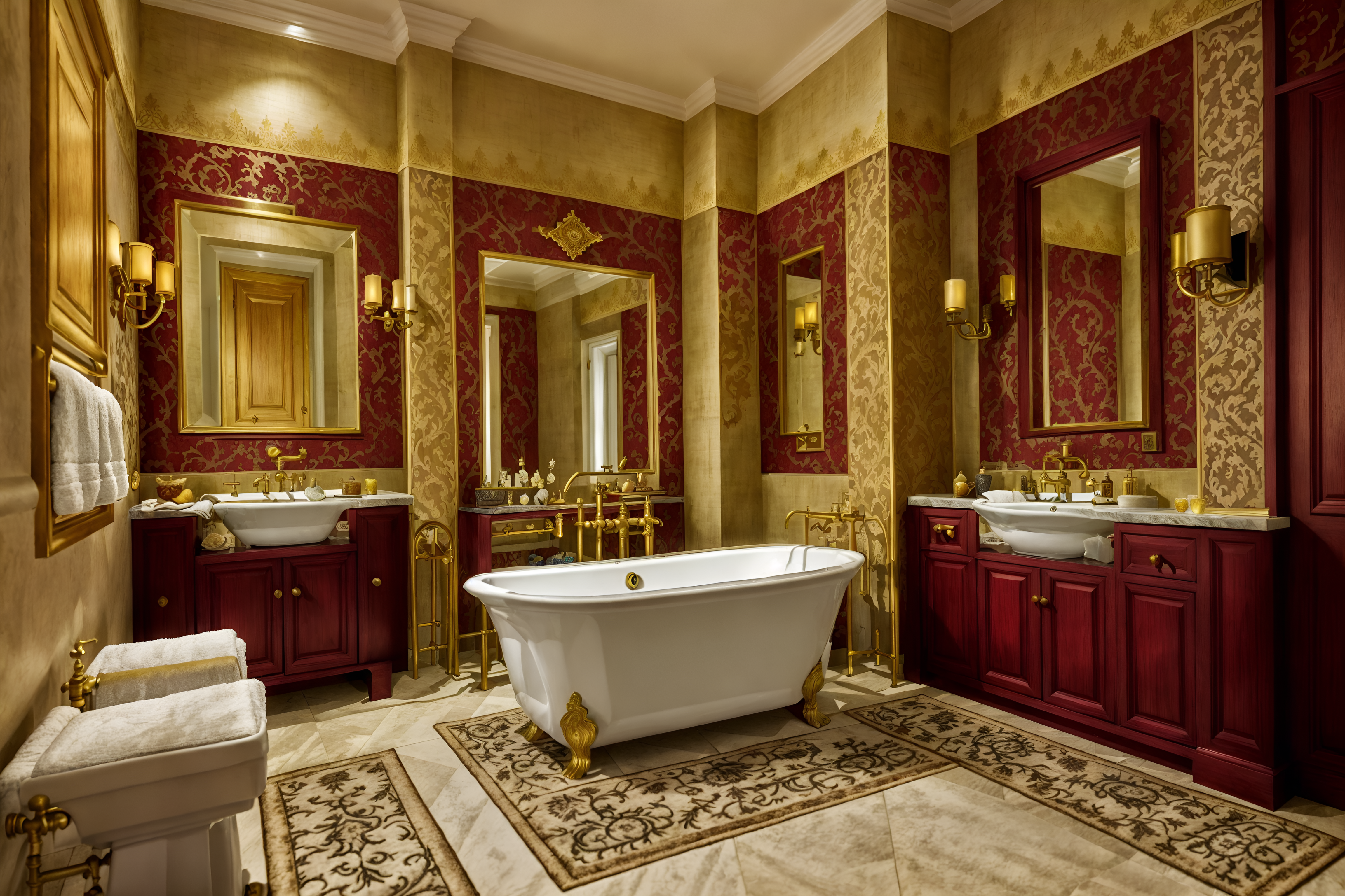 photo from pinterest of medieval-style interior designed (hotel bathroom interior) with bath towel and bathroom cabinet and toilet seat and bathroom sink with faucet and plant and bath rail and mirror and waste basket. . with deep colors like red, gold, or blue and stone walls and velvet, chenille, damask, and brocade draperies and fabrics and gothic appearance and upholstery on chairs and sofas and timber walls and stone or wooden floor and heavy furniture pieces. . cinematic photo, highly detailed, cinematic lighting, ultra-detailed, ultrarealistic, photorealism, 8k. trending on pinterest. medieval interior design style. masterpiece, cinematic light, ultrarealistic+, photorealistic+, 8k, raw photo, realistic, sharp focus on eyes, (symmetrical eyes), (intact eyes), hyperrealistic, highest quality, best quality, , highly detailed, masterpiece, best quality, extremely detailed 8k wallpaper, masterpiece, best quality, ultra-detailed, best shadow, detailed background, detailed face, detailed eyes, high contrast, best illumination, detailed face, dulux, caustic, dynamic angle, detailed glow. dramatic lighting. highly detailed, insanely detailed hair, symmetrical, intricate details, professionally retouched, 8k high definition. strong bokeh. award winning photo.
