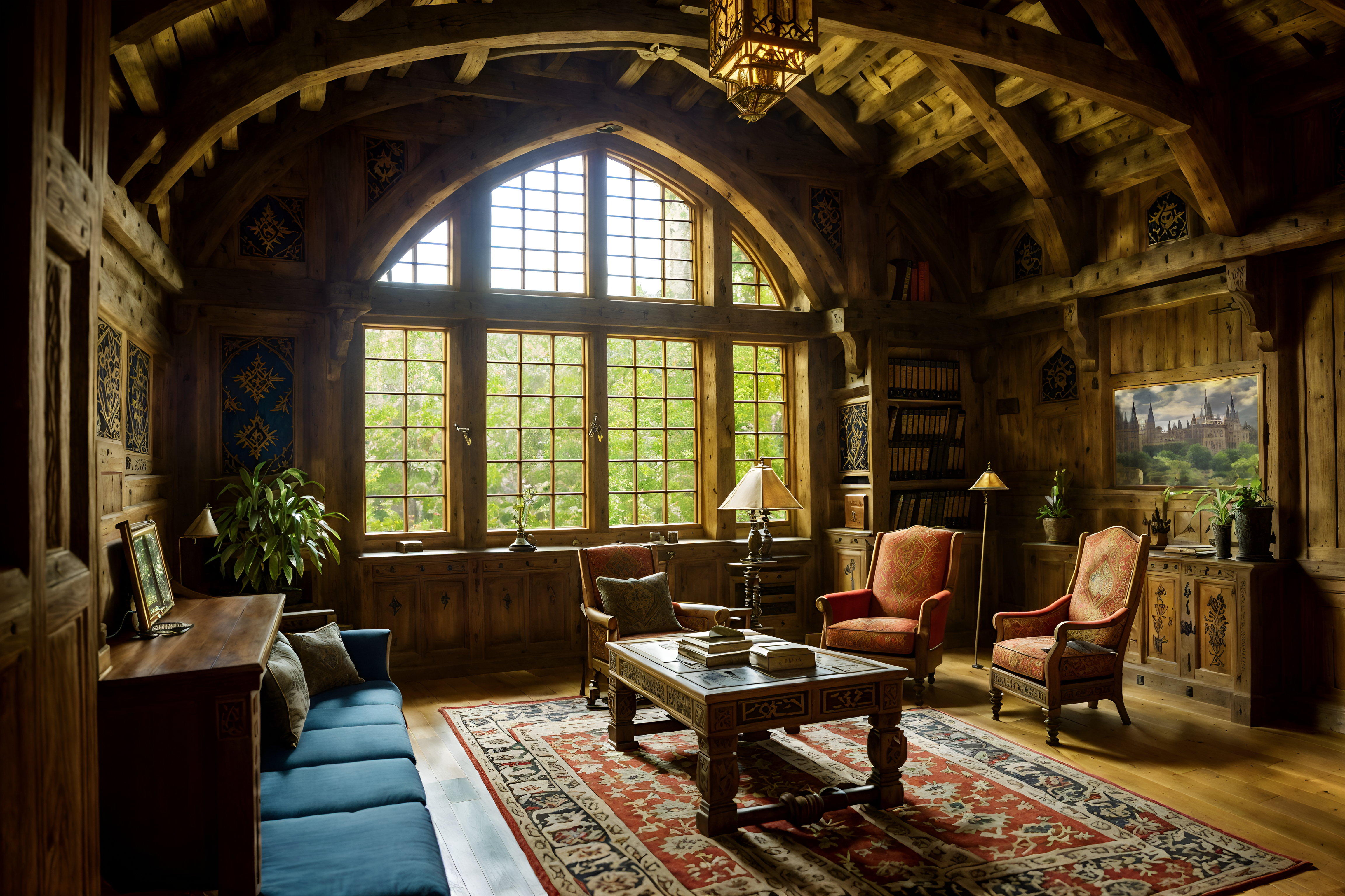 photo from pinterest of medieval-style interior designed (office interior) with plants and lounge chairs and office desks and office chairs and seating area with sofa and windows and cabinets and desk lamps. . with castle interior and stone walls and intricate wooden inlay designs and carvings and deep colors like red, gold, or blue and timber beams and heavy furniture pieces and castle interior and castle interior. . cinematic photo, highly detailed, cinematic lighting, ultra-detailed, ultrarealistic, photorealism, 8k. trending on pinterest. medieval interior design style. masterpiece, cinematic light, ultrarealistic+, photorealistic+, 8k, raw photo, realistic, sharp focus on eyes, (symmetrical eyes), (intact eyes), hyperrealistic, highest quality, best quality, , highly detailed, masterpiece, best quality, extremely detailed 8k wallpaper, masterpiece, best quality, ultra-detailed, best shadow, detailed background, detailed face, detailed eyes, high contrast, best illumination, detailed face, dulux, caustic, dynamic angle, detailed glow. dramatic lighting. highly detailed, insanely detailed hair, symmetrical, intricate details, professionally retouched, 8k high definition. strong bokeh. award winning photo.