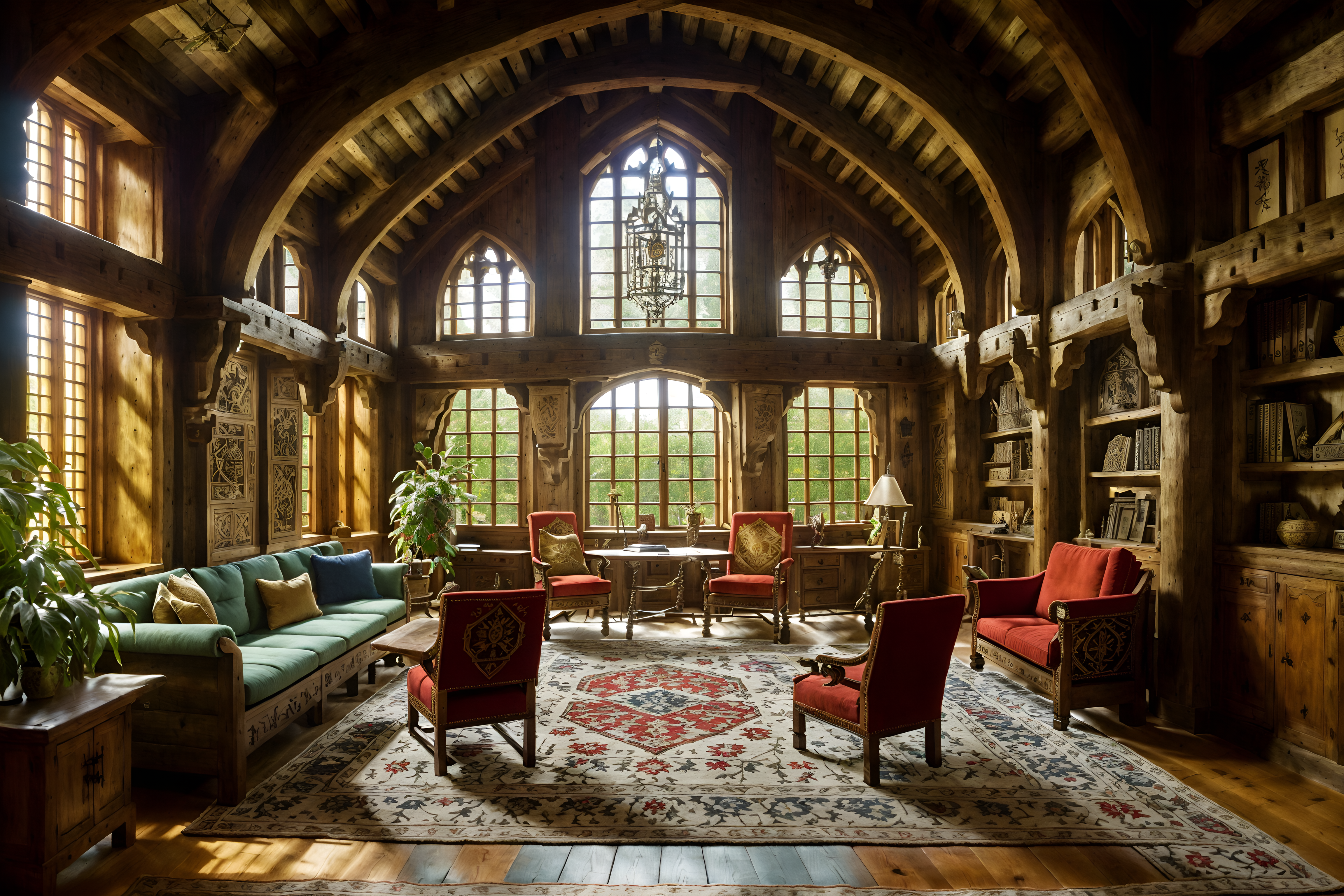 photo from pinterest of medieval-style interior designed (office interior) with plants and lounge chairs and office desks and office chairs and seating area with sofa and windows and cabinets and desk lamps. . with castle interior and stone walls and intricate wooden inlay designs and carvings and deep colors like red, gold, or blue and timber beams and heavy furniture pieces and castle interior and castle interior. . cinematic photo, highly detailed, cinematic lighting, ultra-detailed, ultrarealistic, photorealism, 8k. trending on pinterest. medieval interior design style. masterpiece, cinematic light, ultrarealistic+, photorealistic+, 8k, raw photo, realistic, sharp focus on eyes, (symmetrical eyes), (intact eyes), hyperrealistic, highest quality, best quality, , highly detailed, masterpiece, best quality, extremely detailed 8k wallpaper, masterpiece, best quality, ultra-detailed, best shadow, detailed background, detailed face, detailed eyes, high contrast, best illumination, detailed face, dulux, caustic, dynamic angle, detailed glow. dramatic lighting. highly detailed, insanely detailed hair, symmetrical, intricate details, professionally retouched, 8k high definition. strong bokeh. award winning photo.