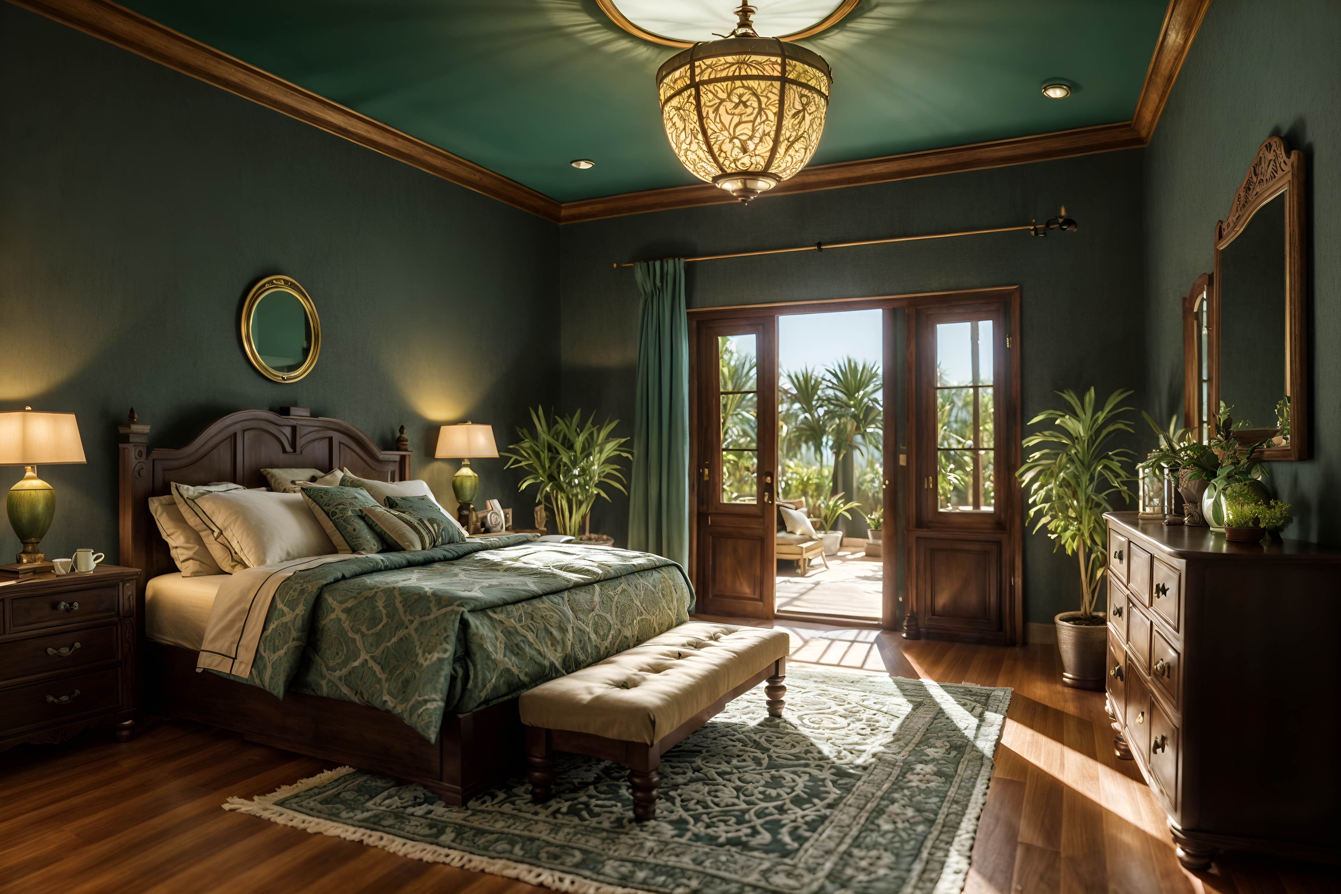 photo from pinterest of mediterranean-style interior designed (bedroom interior) with night light and storage bench or ottoman and mirror and headboard and bedside table or night stand and plant and dresser closet and bed cinematic photo, highly detailed, cinematic lighting, ultra-detailed, ultrarealistic, photorealism, 8k. trending on pinterest. mediterranean interior design style. masterpiece, cinematic light, ultrarealistic+, photorealistic+, 8k, raw photo, realistic, sharp focus on eyes, (symmetrical eyes), (intact eyes), hyperrealistic, highest quality, best quality, , highly detailed, masterpiece, best quality, extremely detailed 8k wallpaper, masterpiece, best quality, ultra-detailed, best shadow, detailed background, detailed face, detailed eyes, high contrast, best illumination, detailed face, dulux, caustic, dynamic angle, detailed glow. dramatic lighting. highly detailed, insanely detailed hair, symmetrical, intricate details, professionally retouched, 8k high definition. strong bokeh. award winning photo.