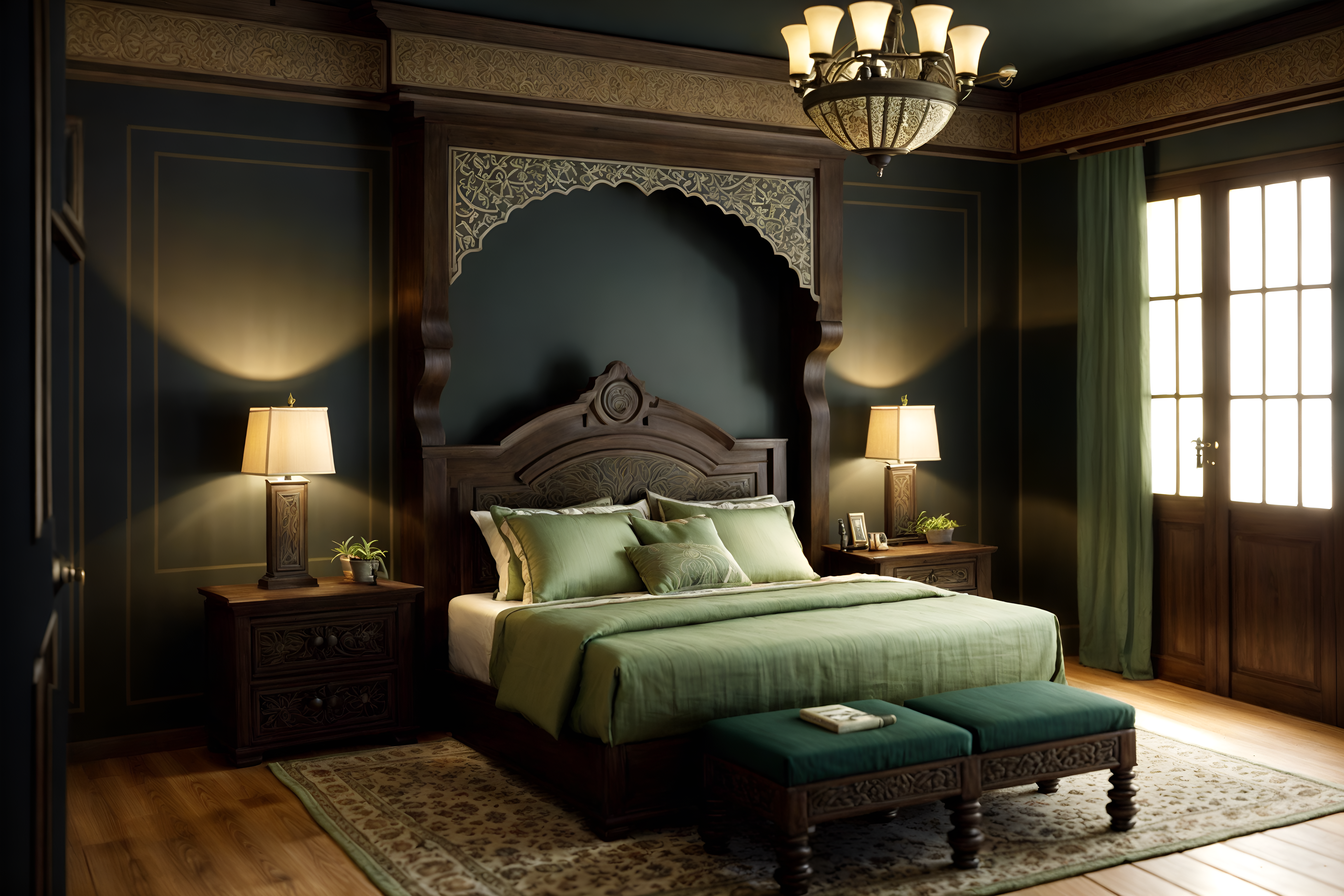photo from pinterest of mediterranean-style interior designed (bedroom interior) with night light and storage bench or ottoman and mirror and headboard and bedside table or night stand and plant and dresser closet and bed cinematic photo, highly detailed, cinematic lighting, ultra-detailed, ultrarealistic, photorealism, 8k. trending on pinterest. mediterranean interior design style. masterpiece, cinematic light, ultrarealistic+, photorealistic+, 8k, raw photo, realistic, sharp focus on eyes, (symmetrical eyes), (intact eyes), hyperrealistic, highest quality, best quality, , highly detailed, masterpiece, best quality, extremely detailed 8k wallpaper, masterpiece, best quality, ultra-detailed, best shadow, detailed background, detailed face, detailed eyes, high contrast, best illumination, detailed face, dulux, caustic, dynamic angle, detailed glow. dramatic lighting. highly detailed, insanely detailed hair, symmetrical, intricate details, professionally retouched, 8k high definition. strong bokeh. award winning photo.